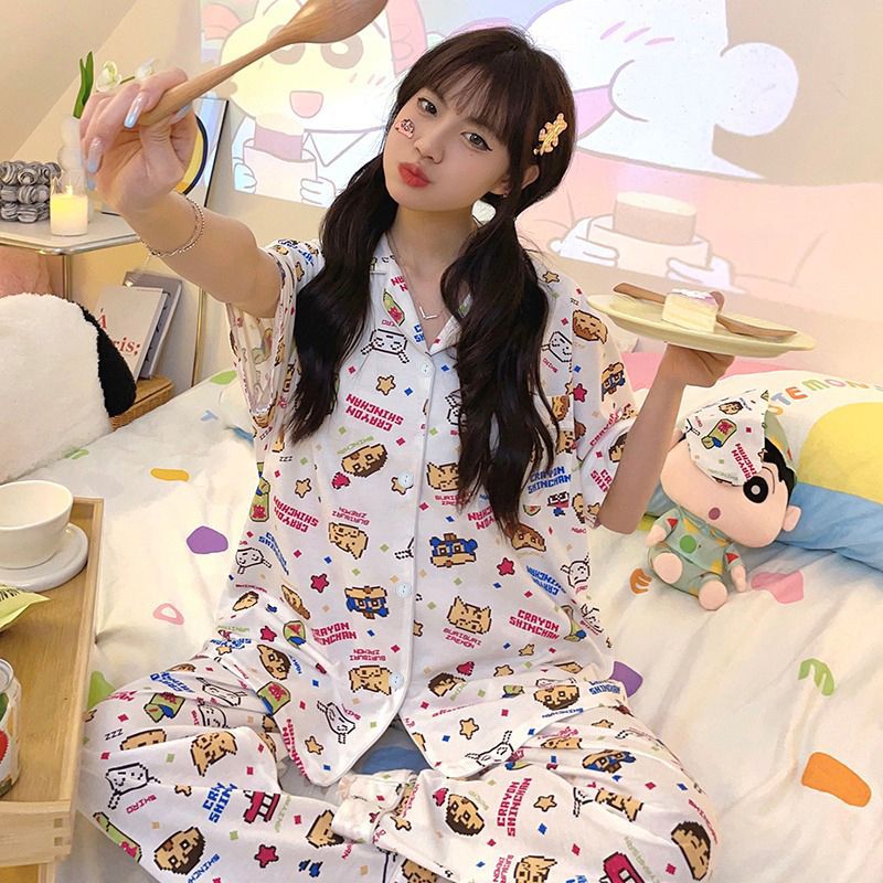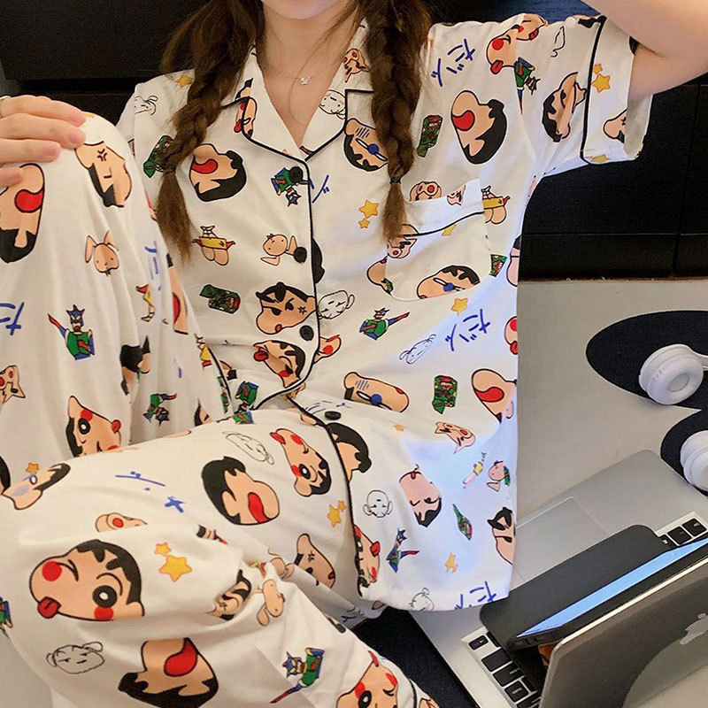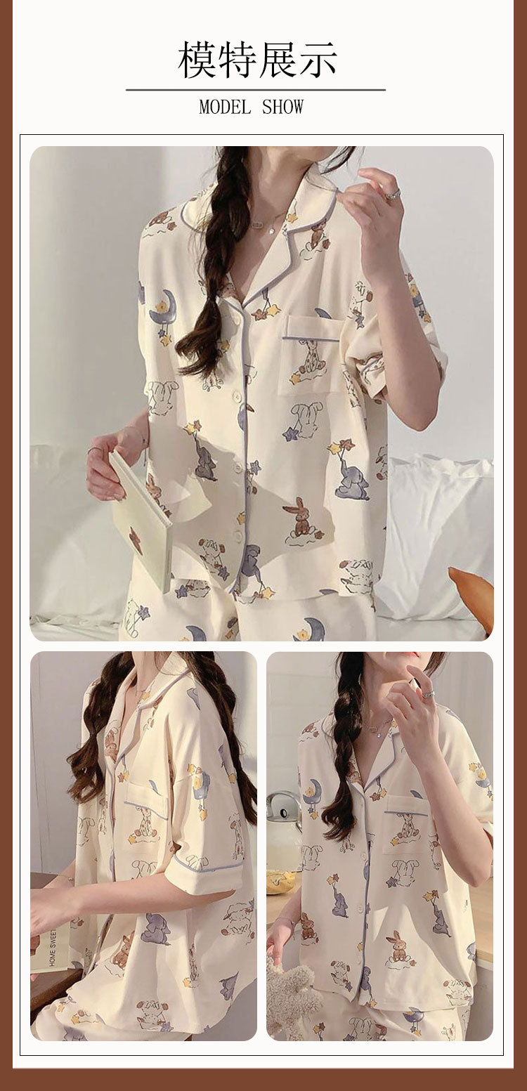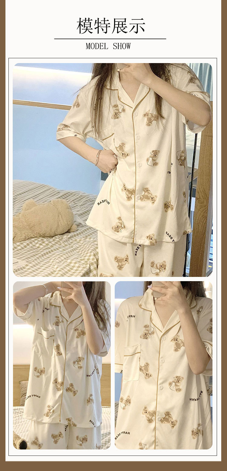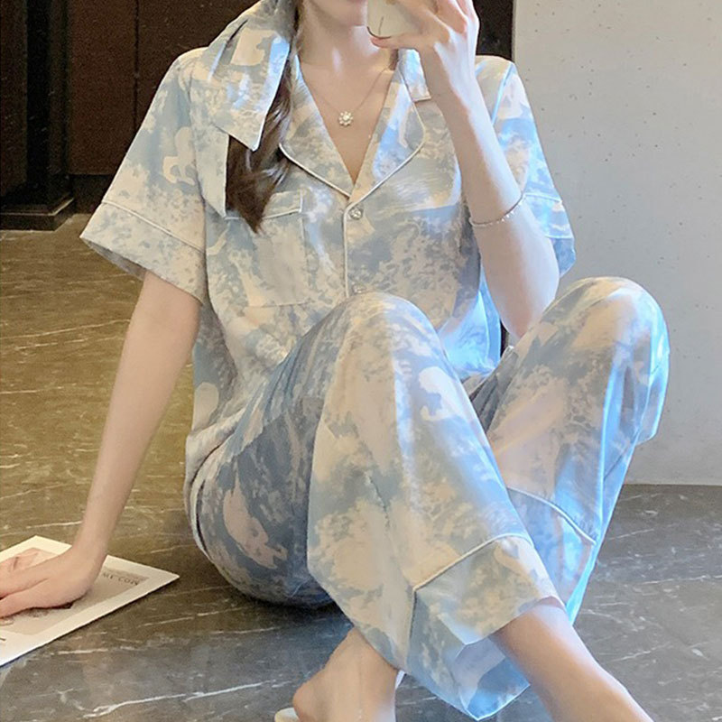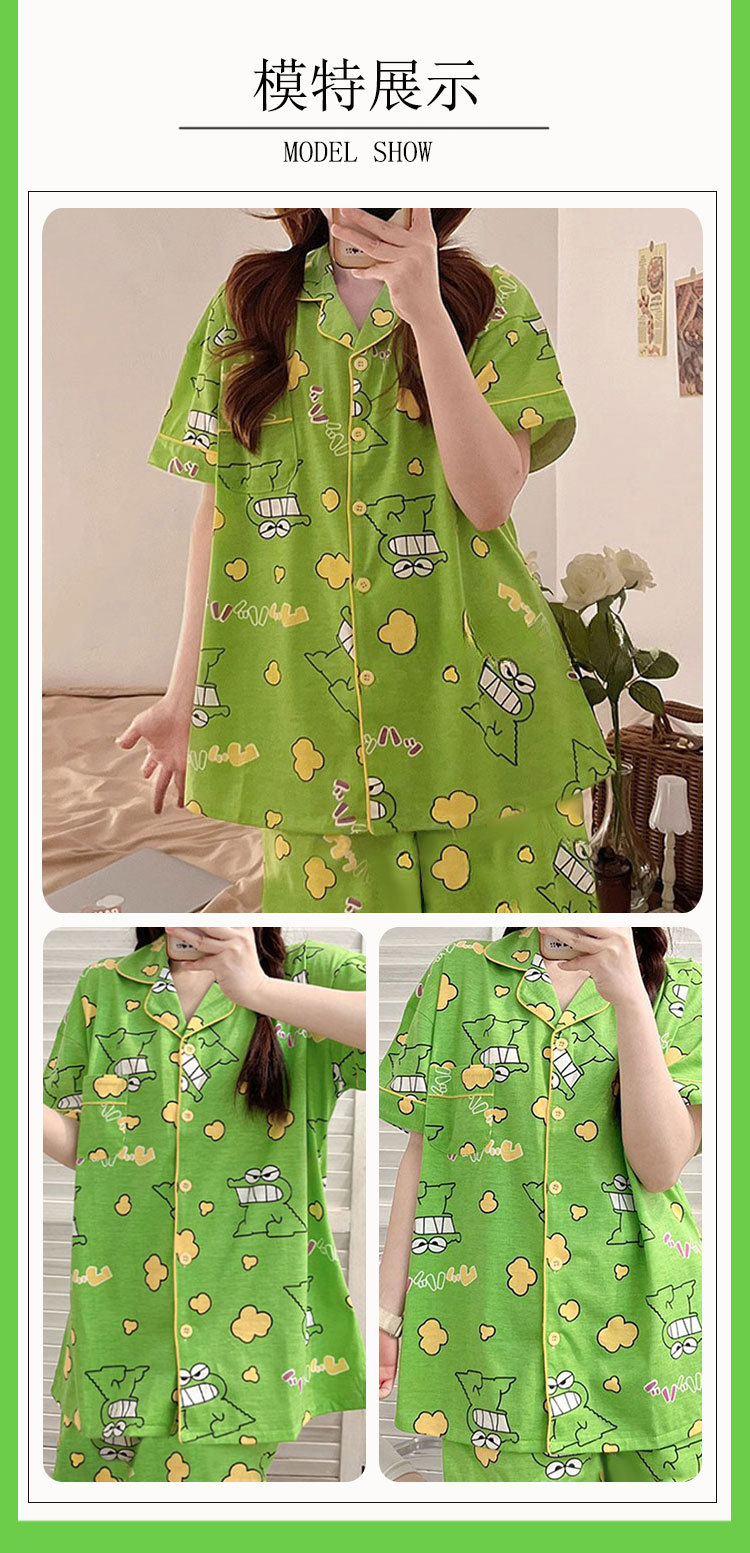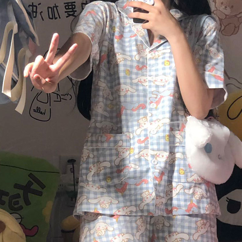 새로운 여성용 수출 잠옷, 달콤하고 귀여운 스타일의 핑크 물방울 무늬 가디건, 면 반팔 긴바지 홈웨어 세트스토어 가기