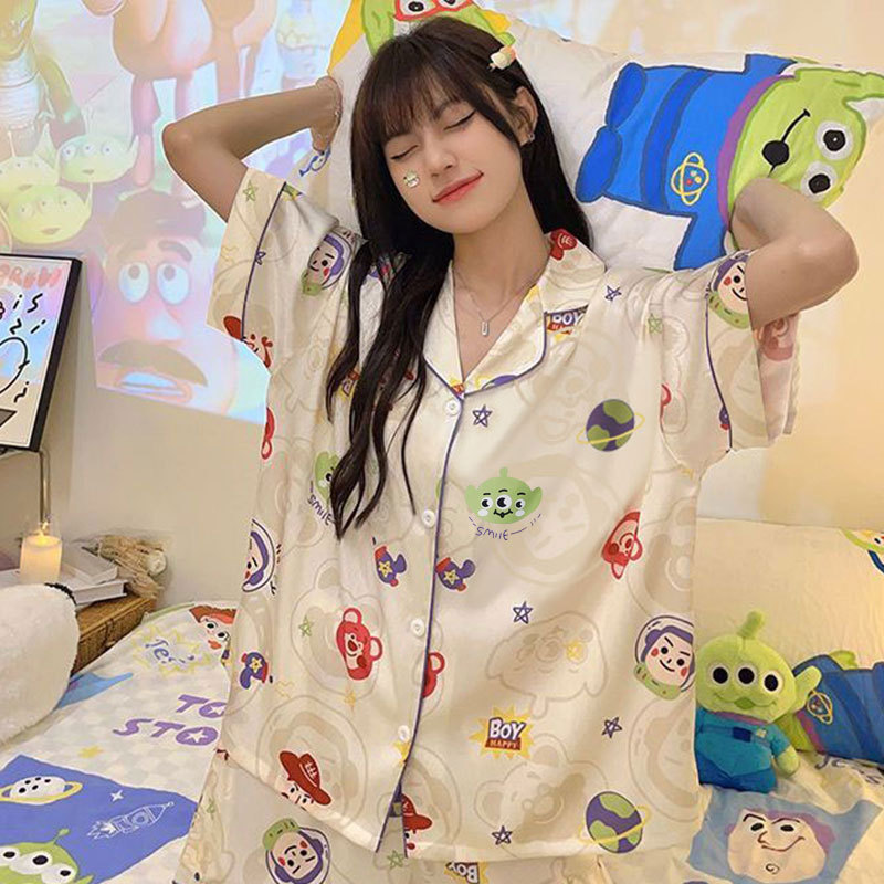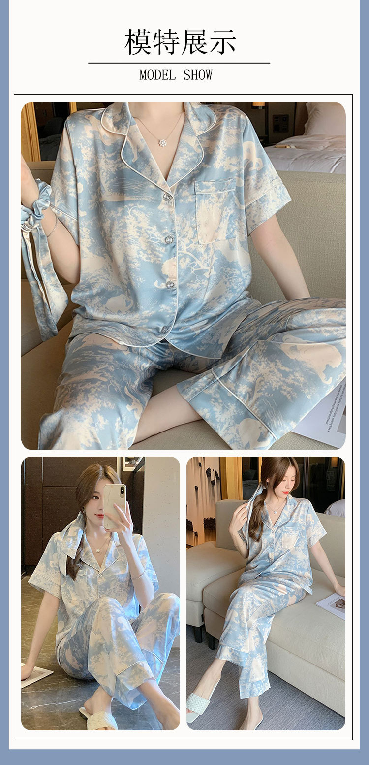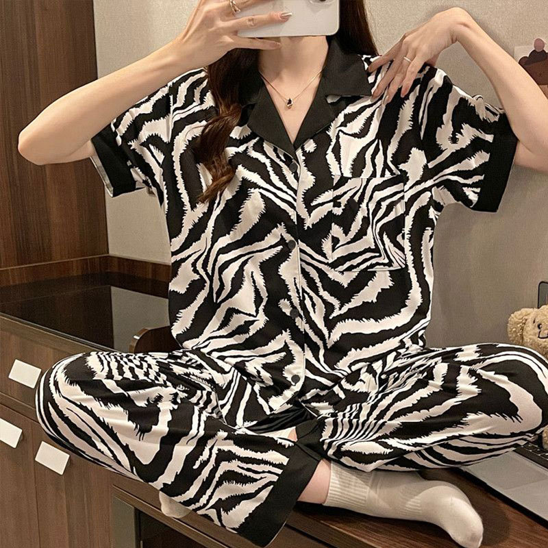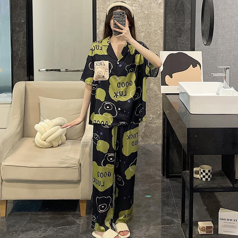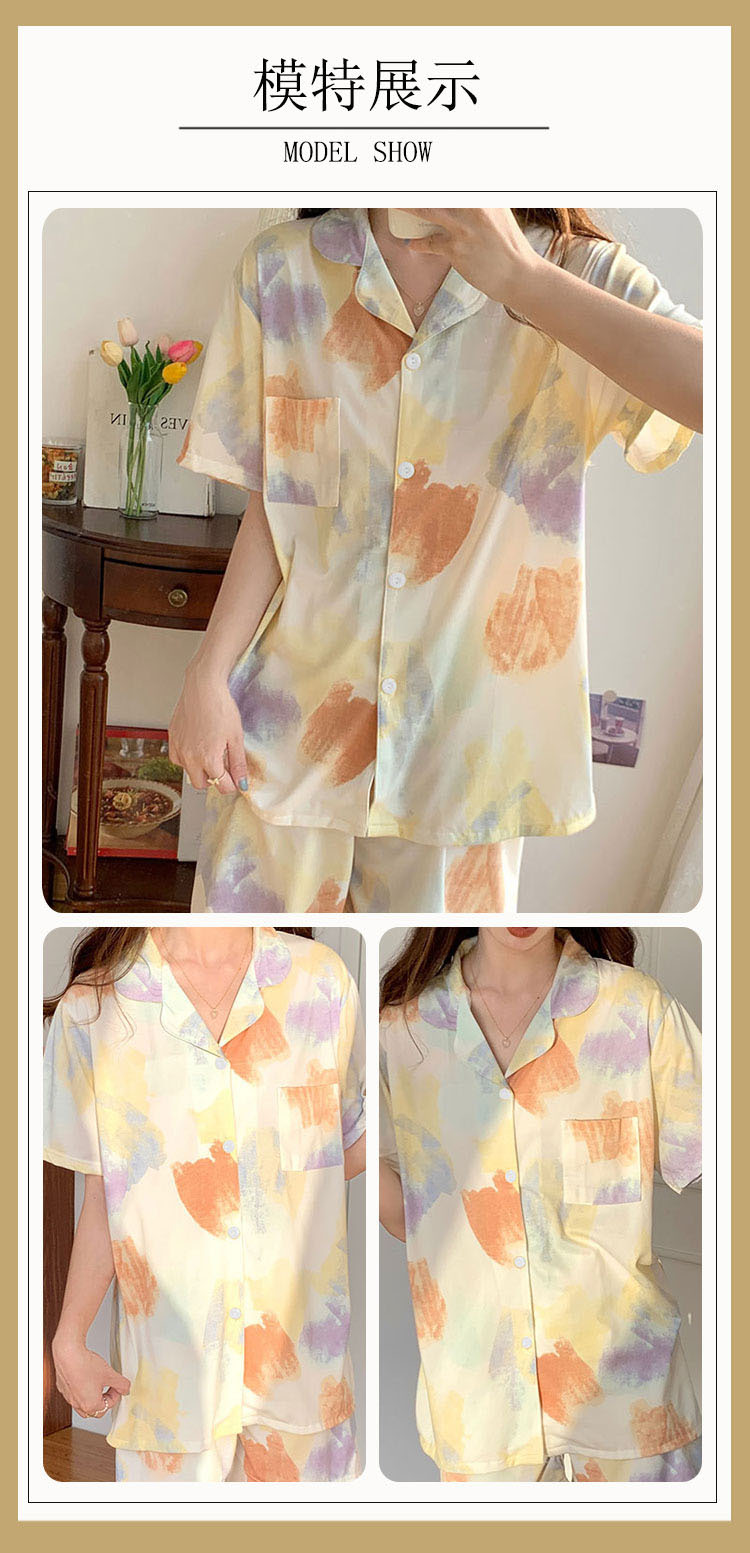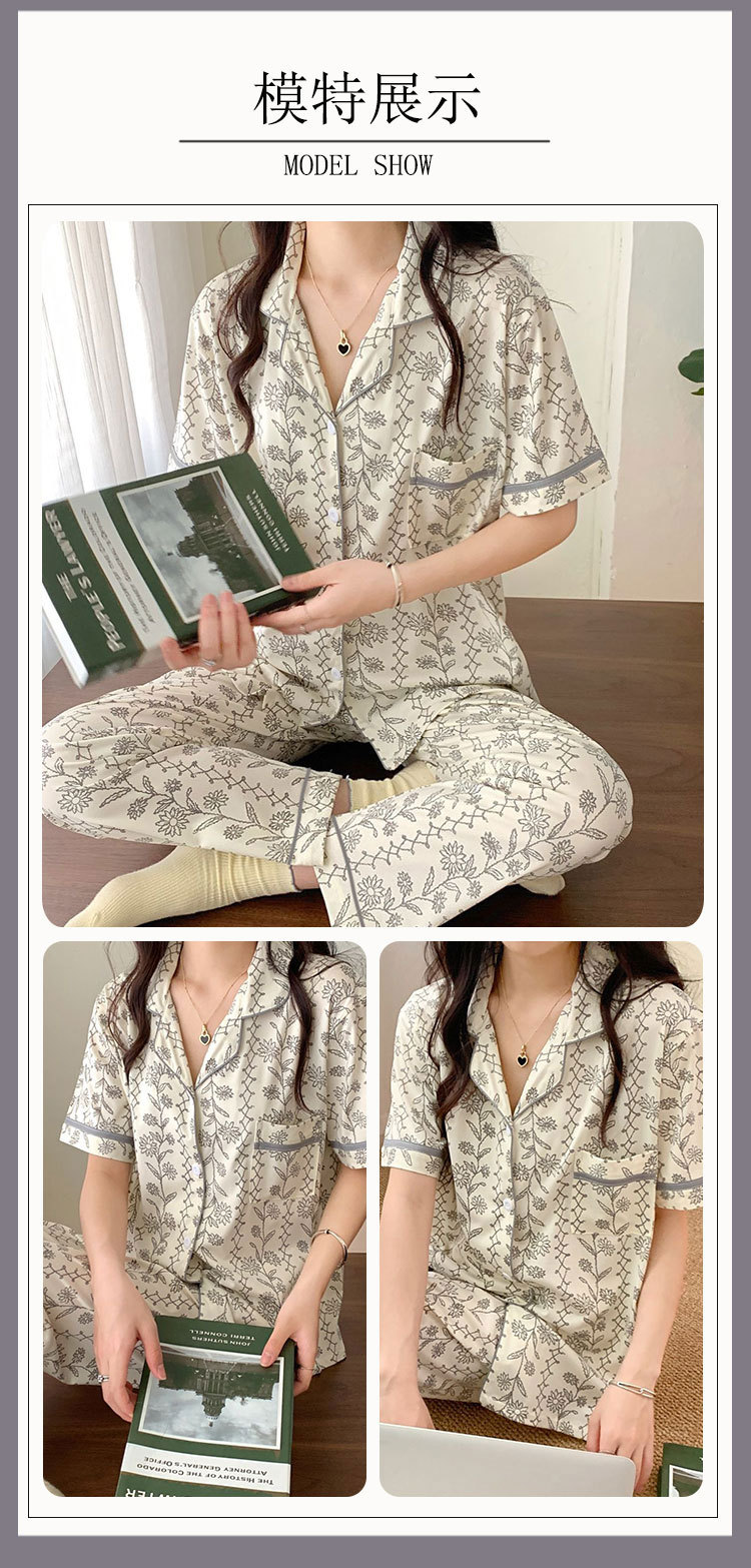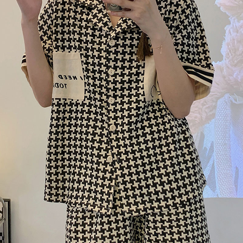 새로운 여성용 수출 잠옷, 달콤하고 귀여운 스타일의 핑크 물방울 무늬 가디건, 면 반팔 긴바지 홈웨어 세트스토어 가기