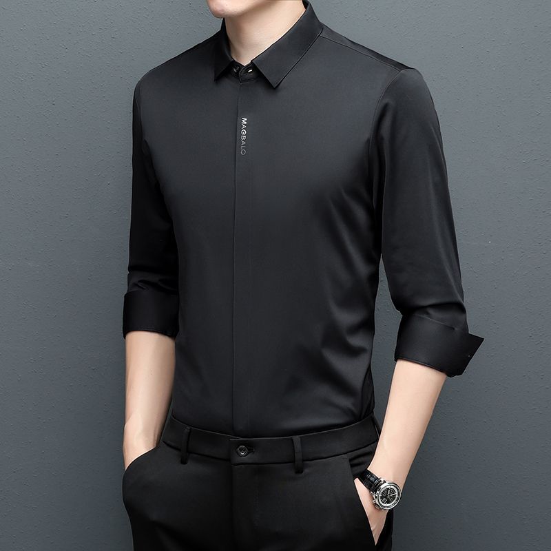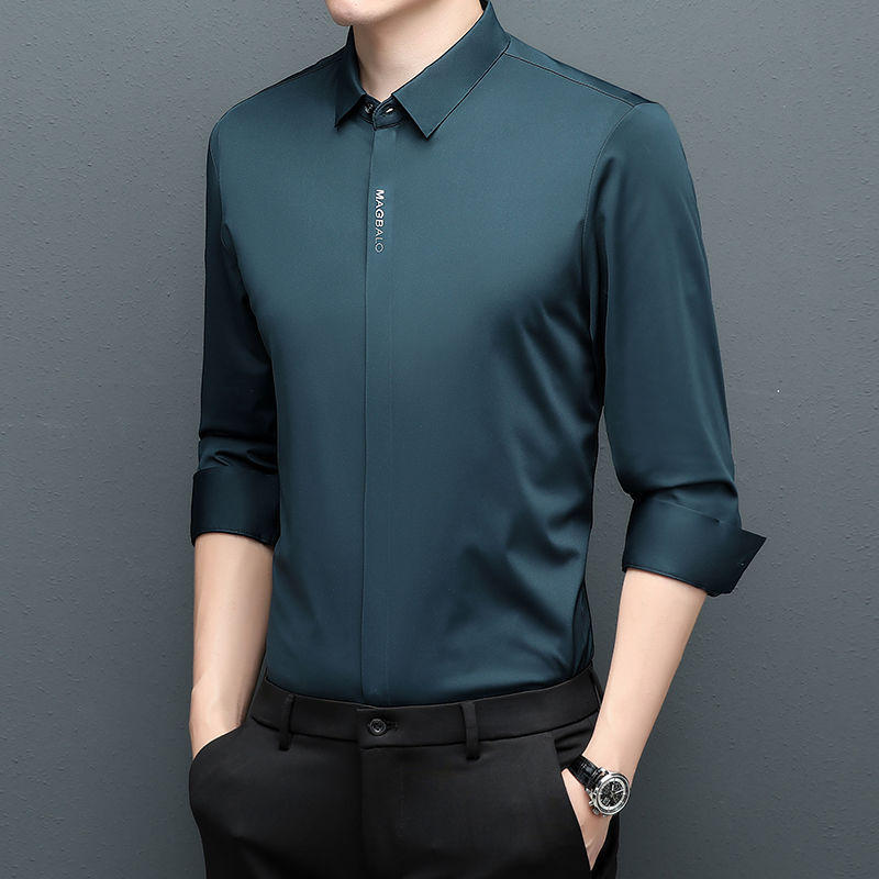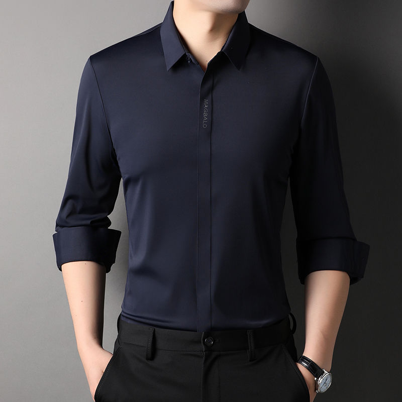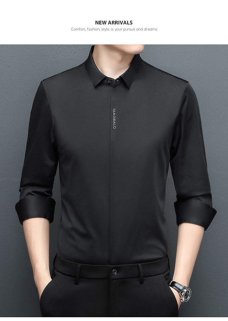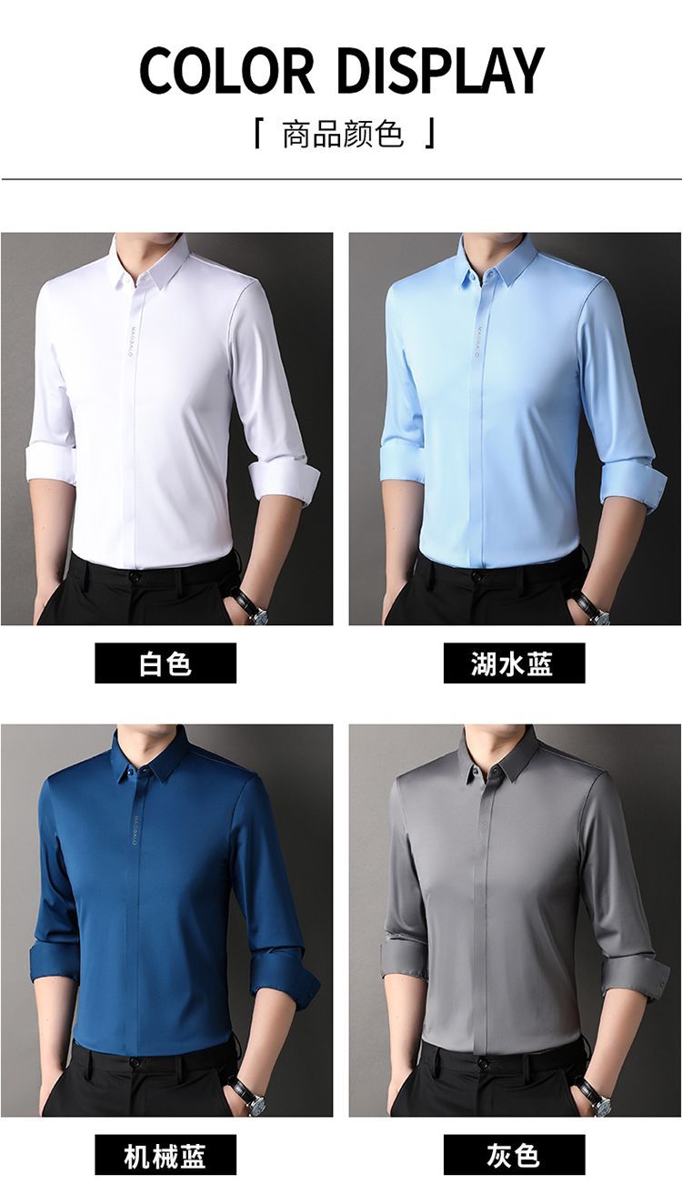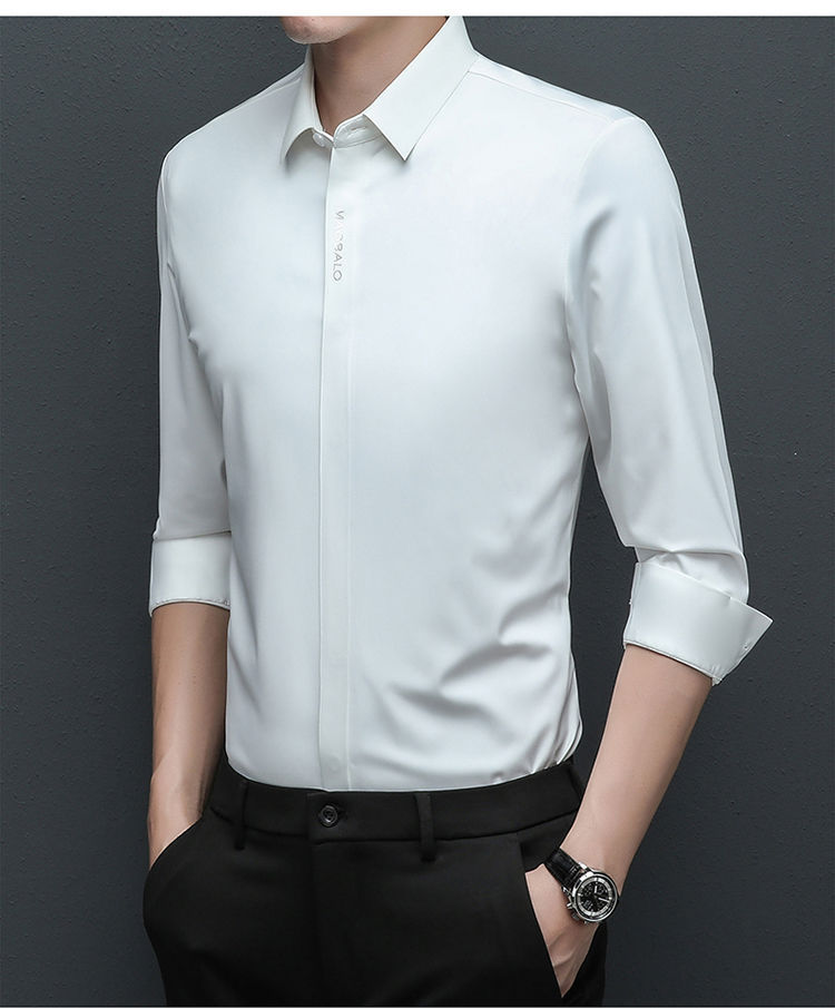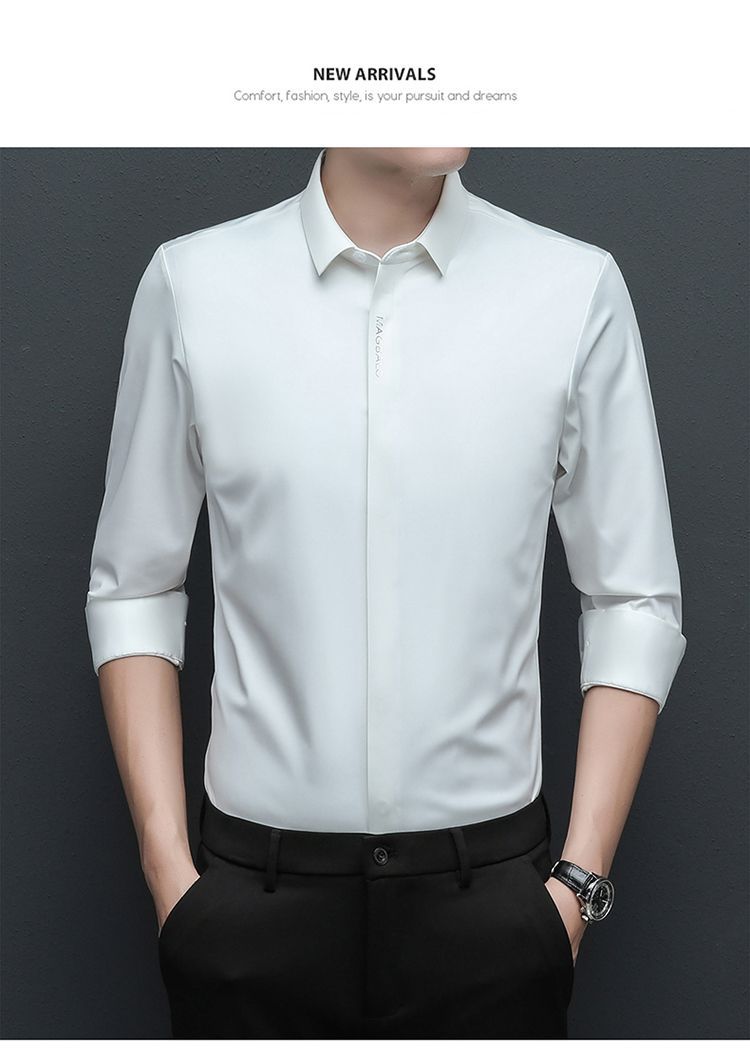 다크 버튼 셔츠 남자의 긴 소매 봄과 가을 새로운 사업 캐주얼 솔리드 컬러 비 다림질 안티 주름 탄성 원활한 화이트 셔츠