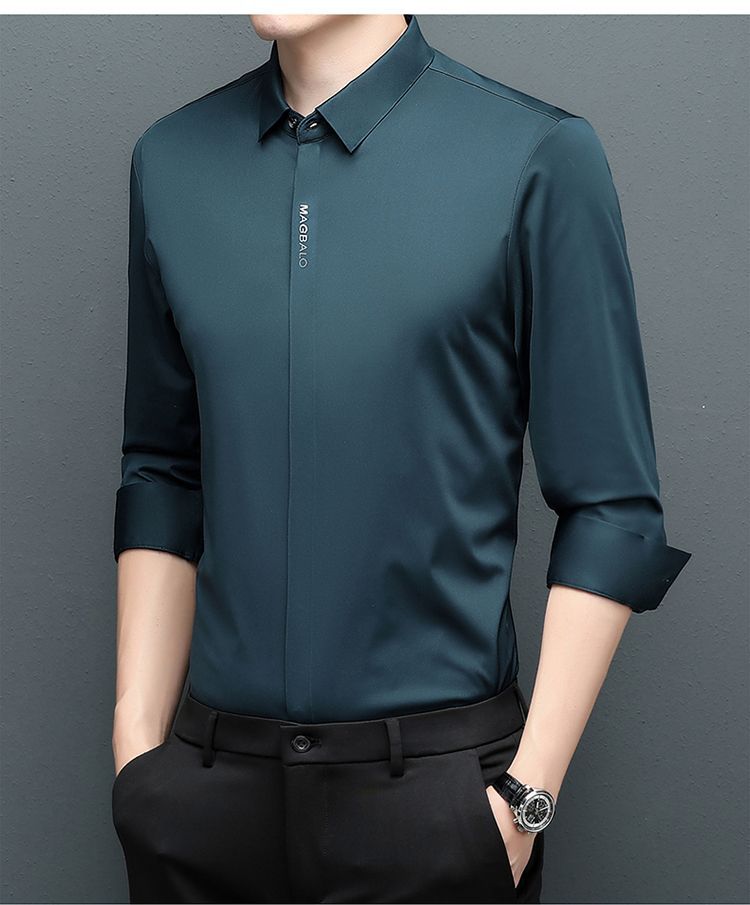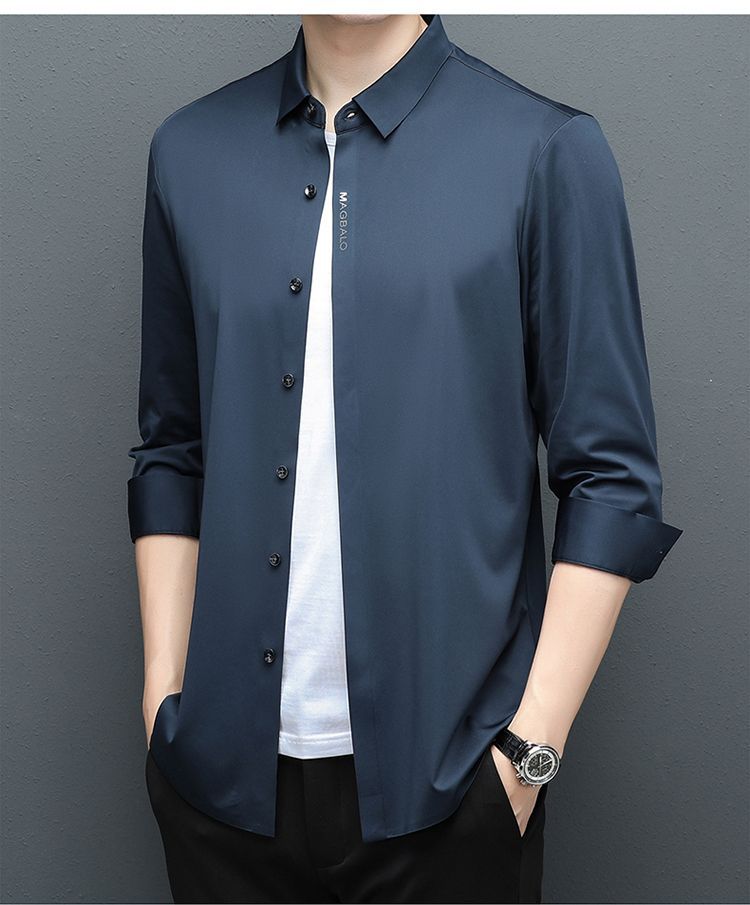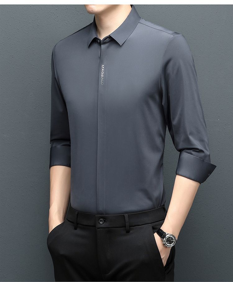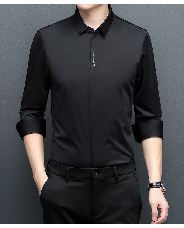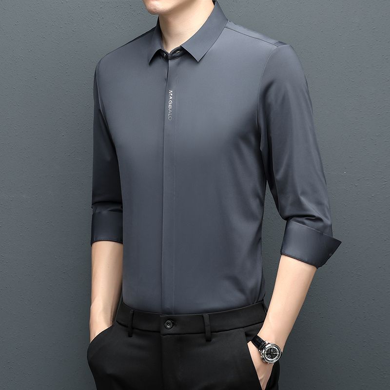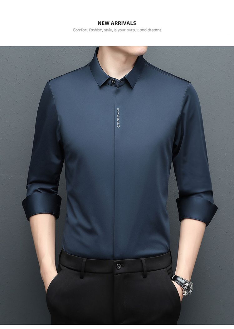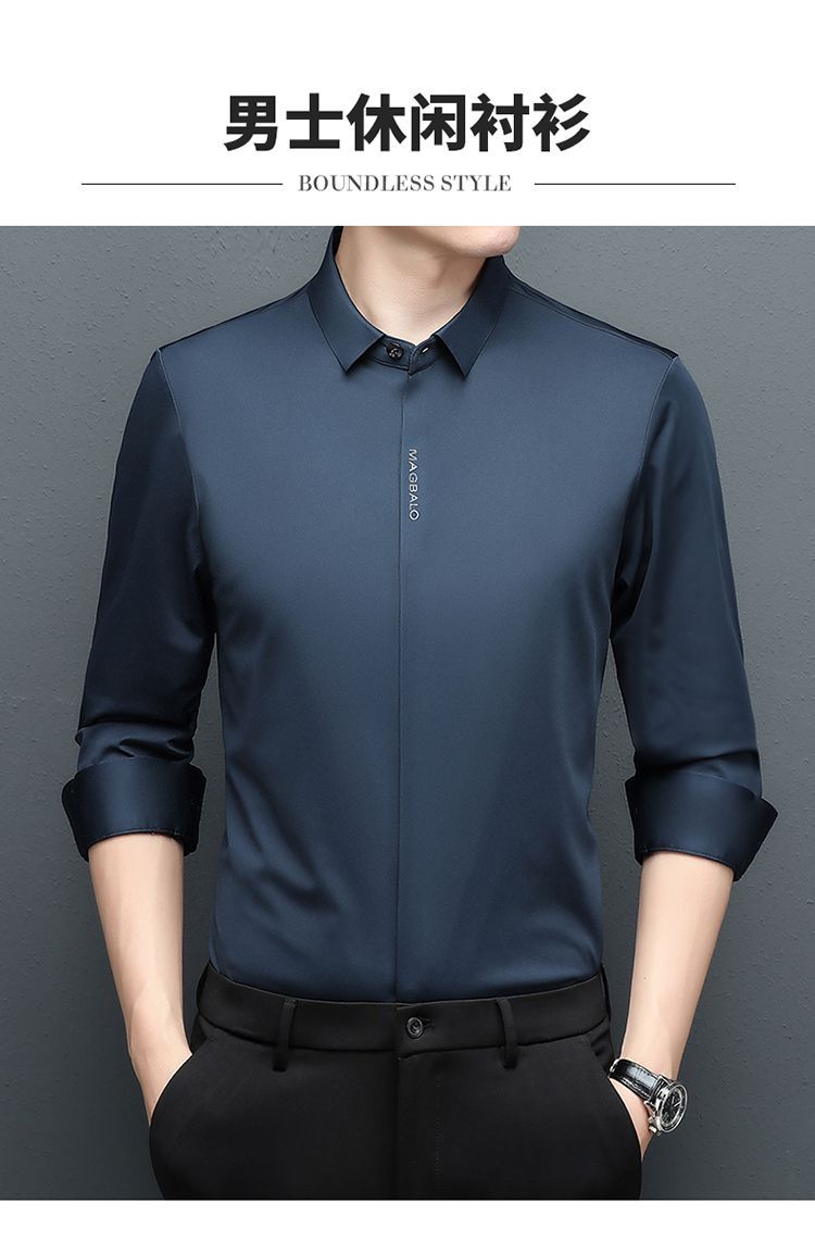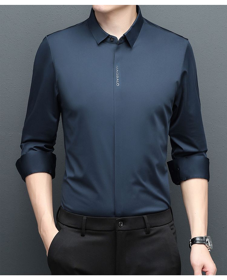 다크 버튼 셔츠 남자의 긴 소매 봄과 가을 새로운 사업 캐주얼 솔리드 컬러 비 다림질 안티 주름 탄성 원활한 화이트 셔츠