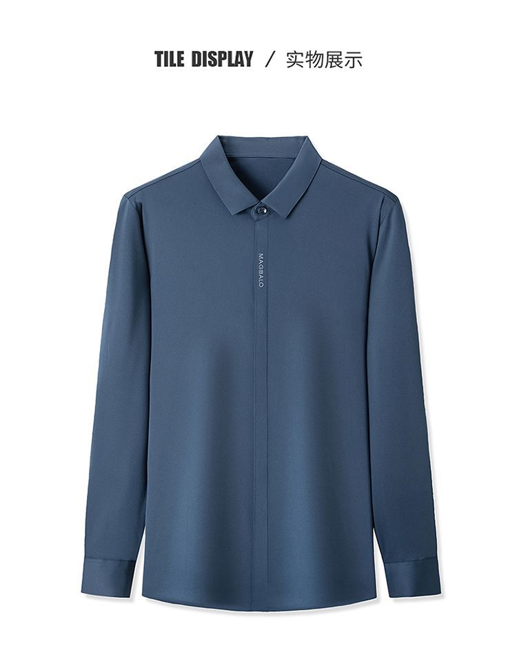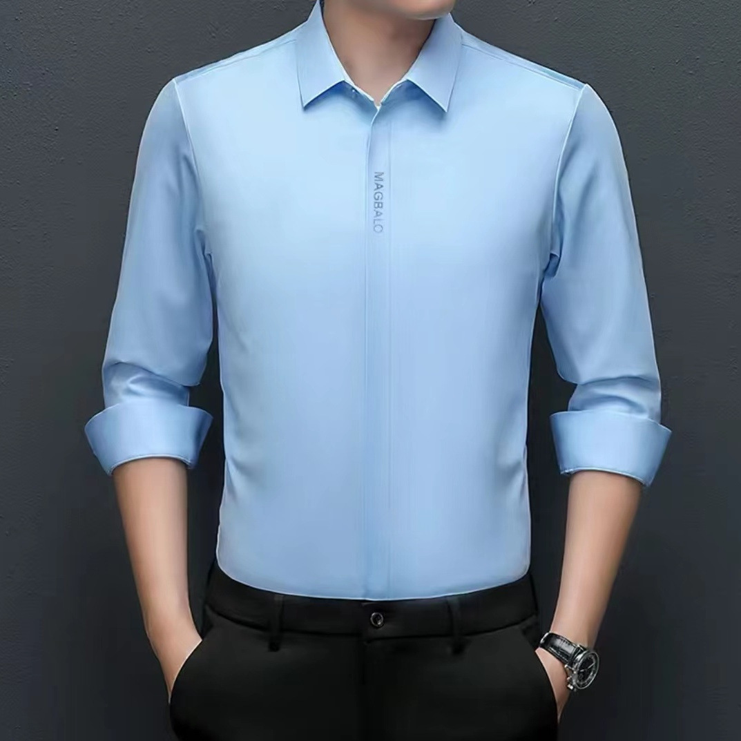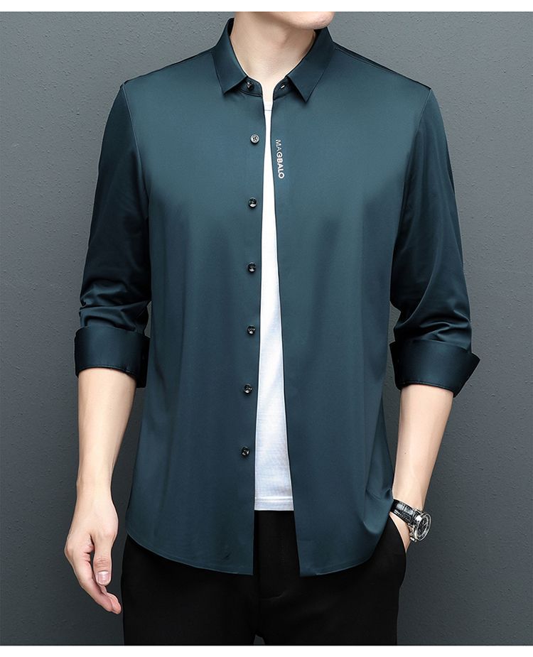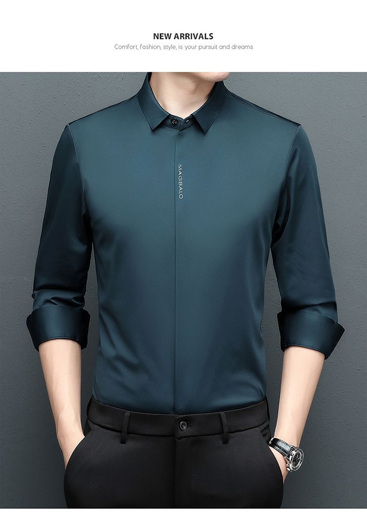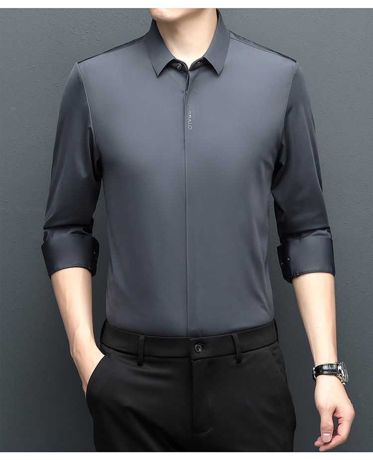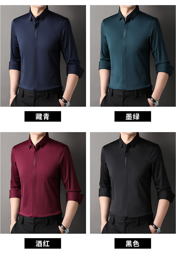 다크 버튼 셔츠 남자의 긴 소매 봄과 가을 새로운 사업 캐주얼 솔리드 컬러 비 다림질 안티 주름 탄성 원활한 화이트 셔츠