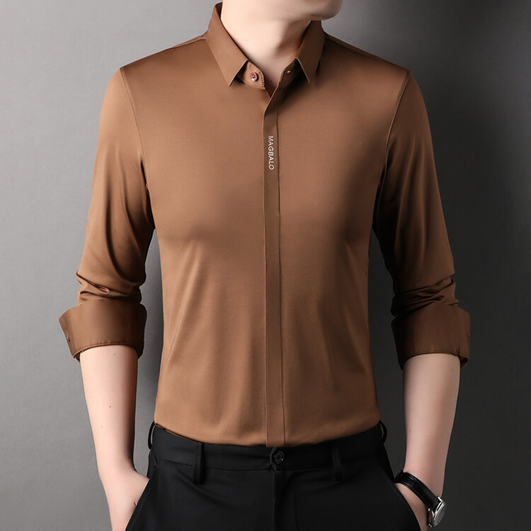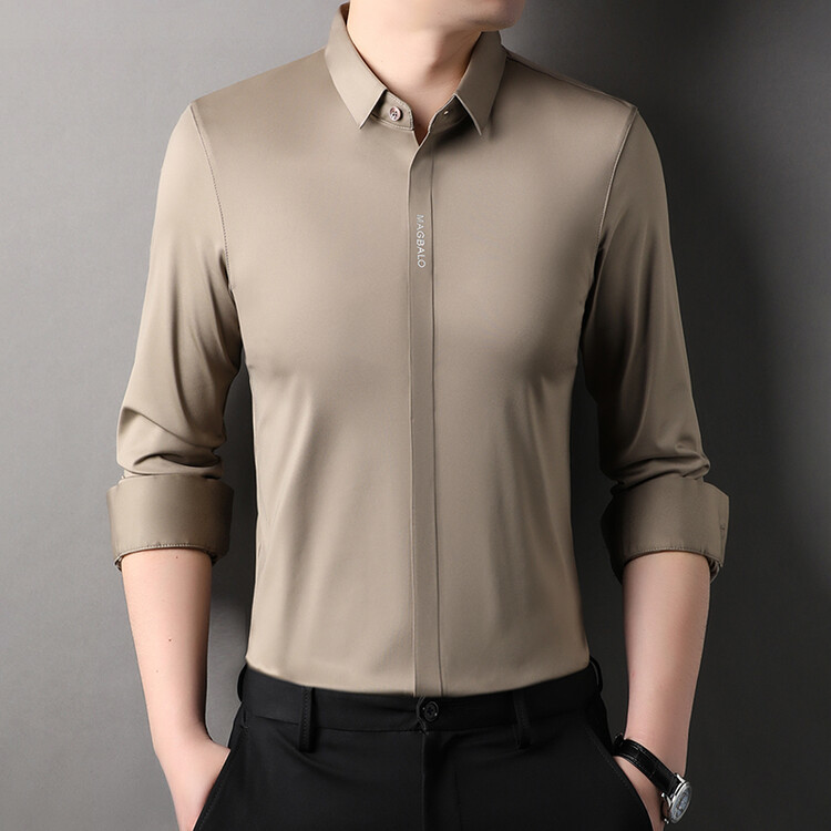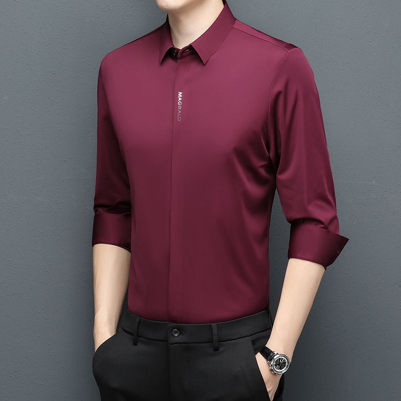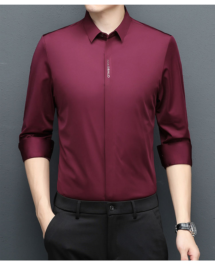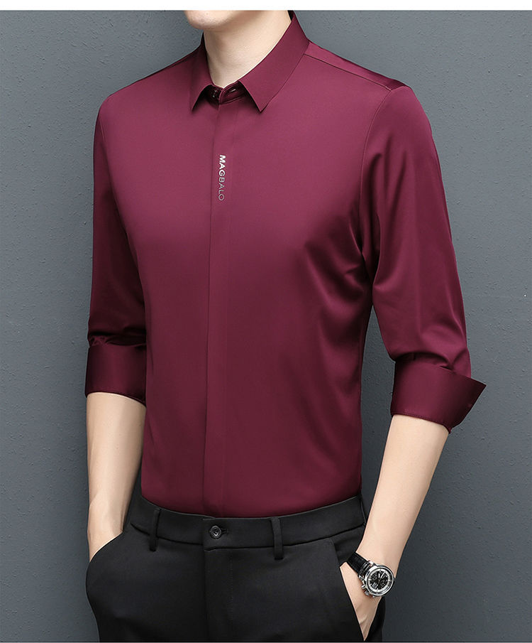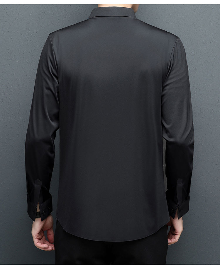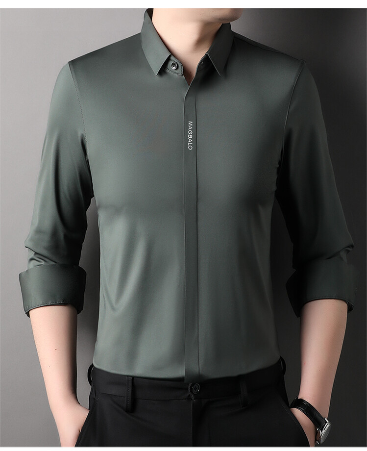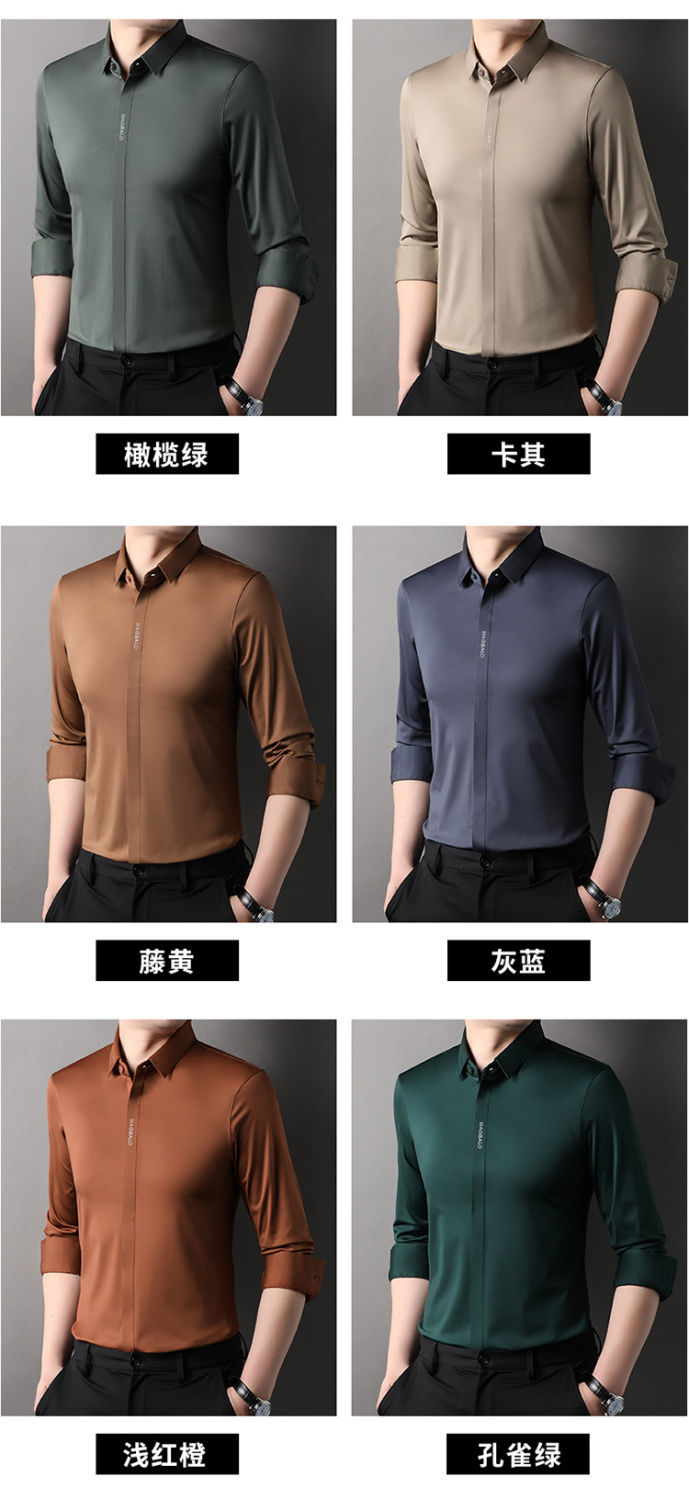 다크 버튼 셔츠 남자의 긴 소매 봄과 가을 새로운 사업 캐주얼 솔리드 컬러 비 다림질 안티 주름 탄성 원활한 화이트 셔츠