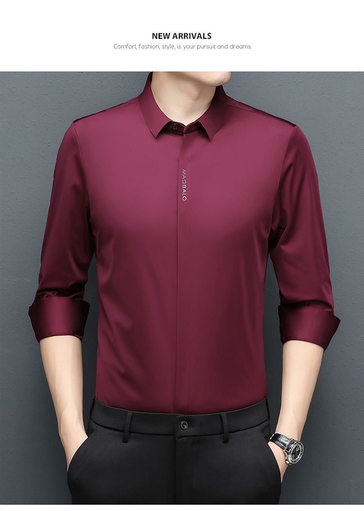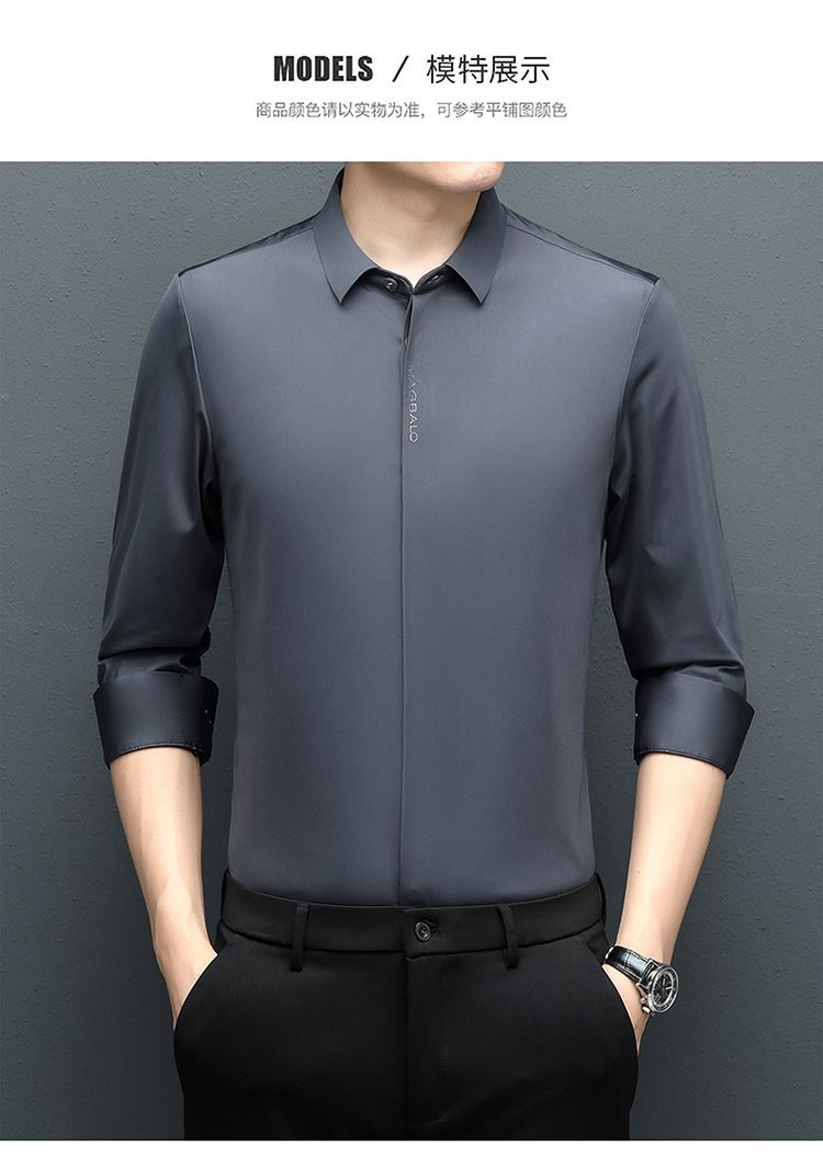 다크 버튼 셔츠 남자의 긴 소매 봄과 가을 새로운 사업 캐주얼 솔리드 컬러 비 다림질 안티 주름 탄성 원활한 화이트 셔츠스토어 가기
