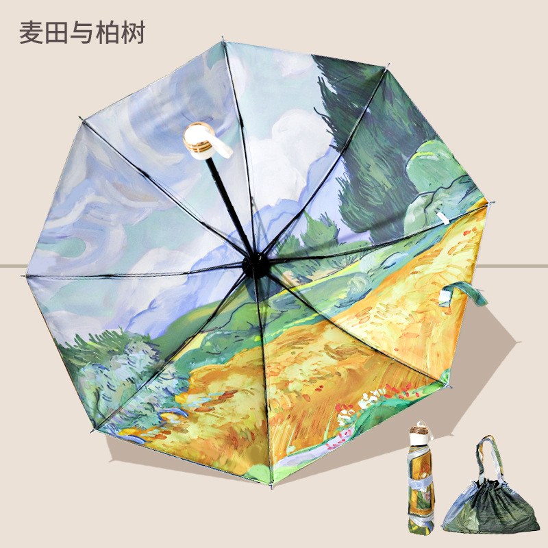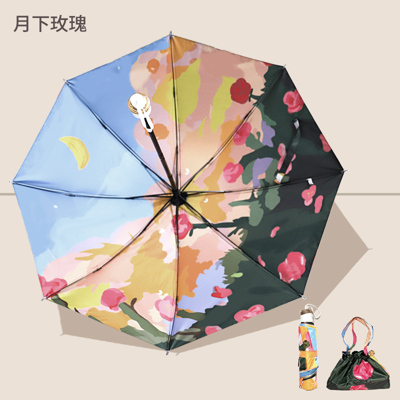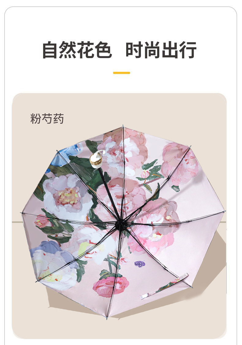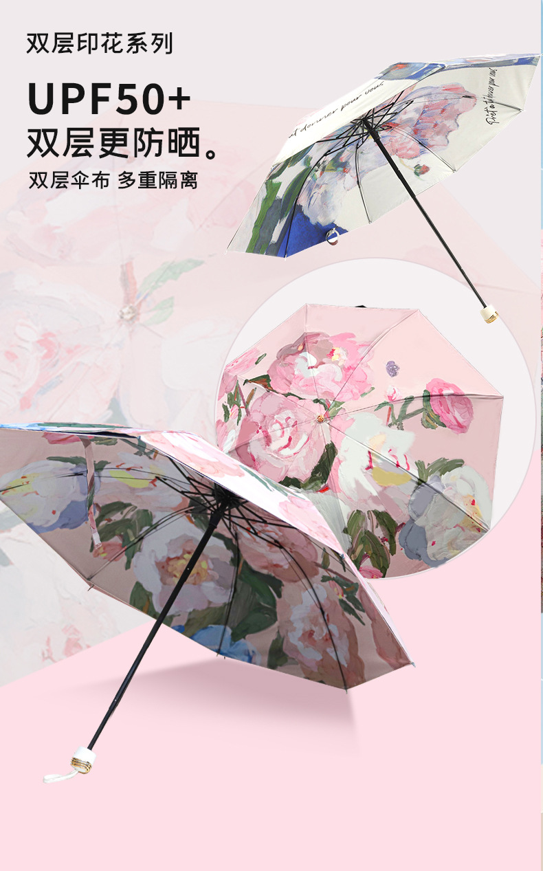 3 배 검은 고무 이중층 우산 양면 꽃 우산 태양 보호 자외선 보호 태양 우산 여성 유화 우산 써니 우산스토어 가기