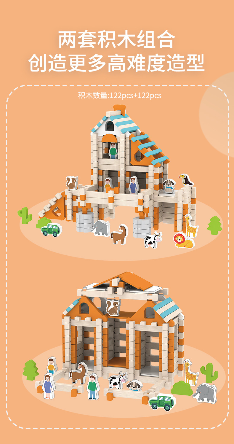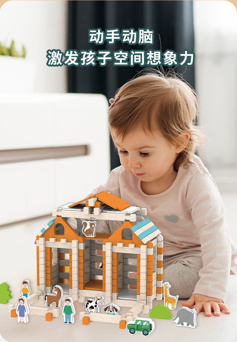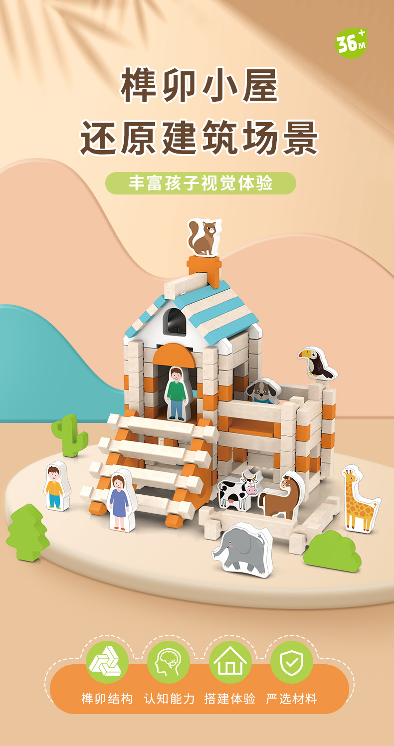어린이 나무 루반 Mortise 및 Tenon Hut 빌딩 블록 실습 맞춤법 우주 건축가 조립 교육 장난감스토어 가기