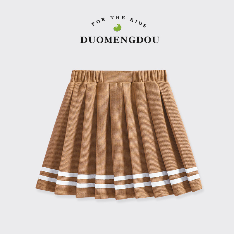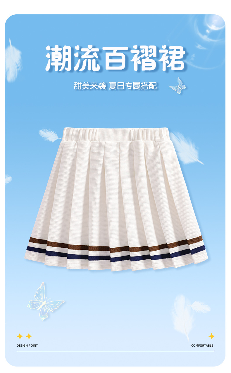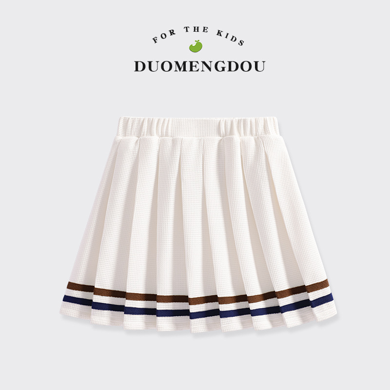 Duo Meng Bean Girls 2024 여름 새로운 와플 스타일 주름 치마 큰 아이들 여름 원피스 여자 치마 GHB스토어 가기