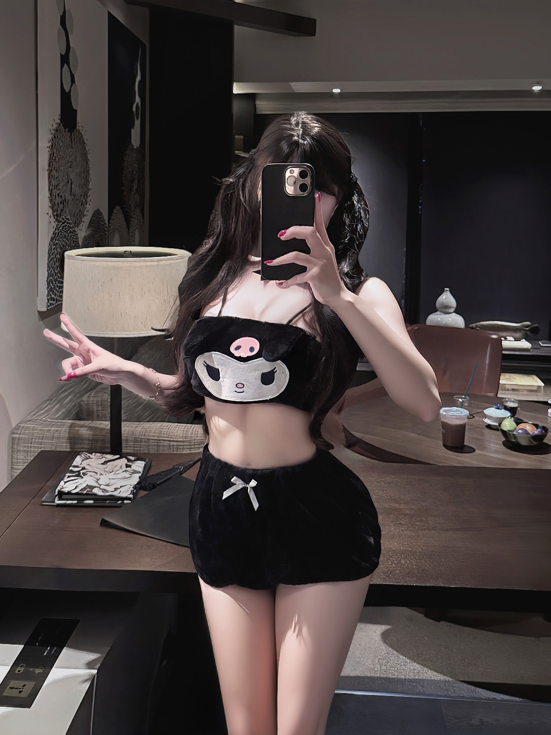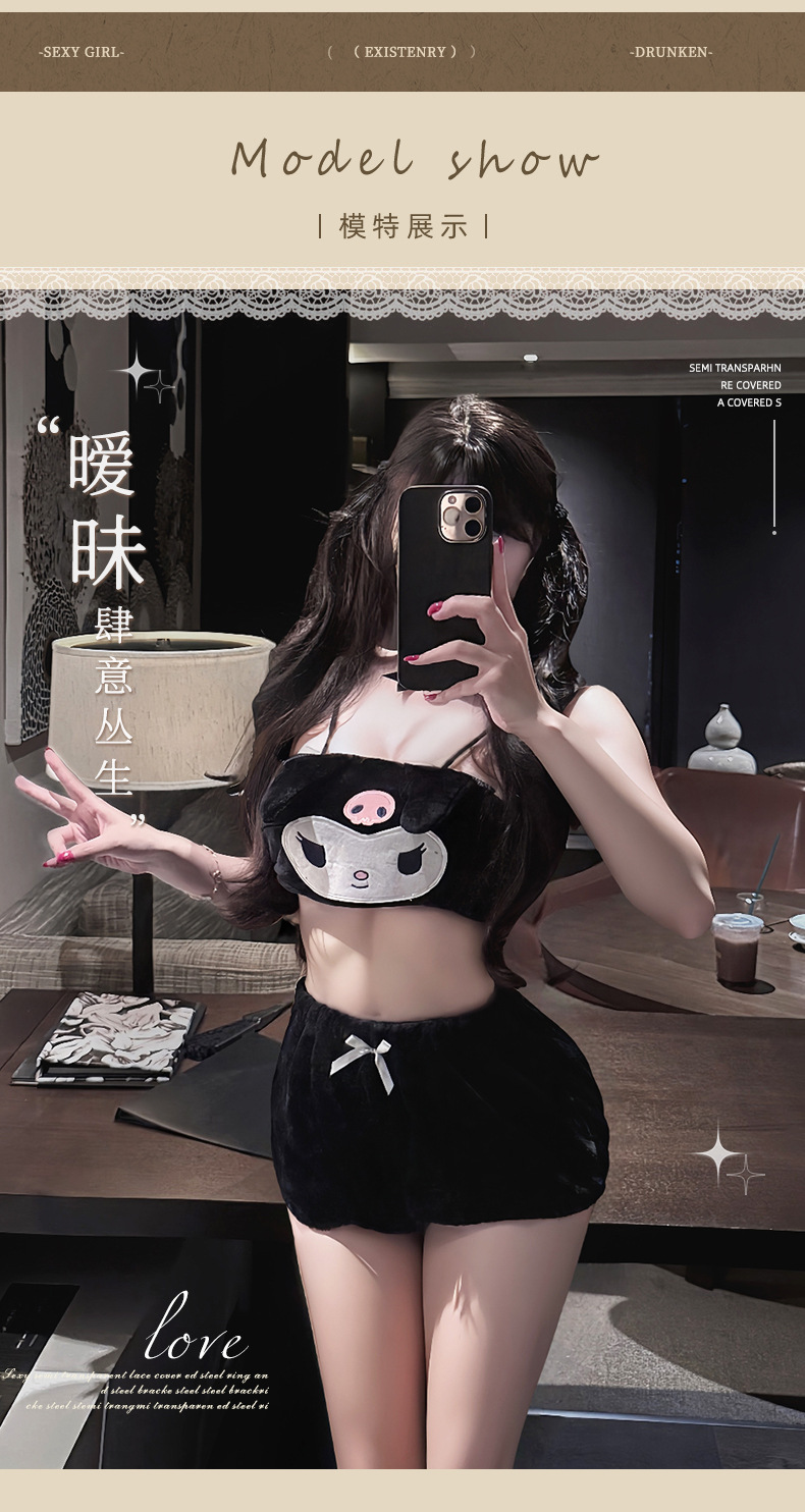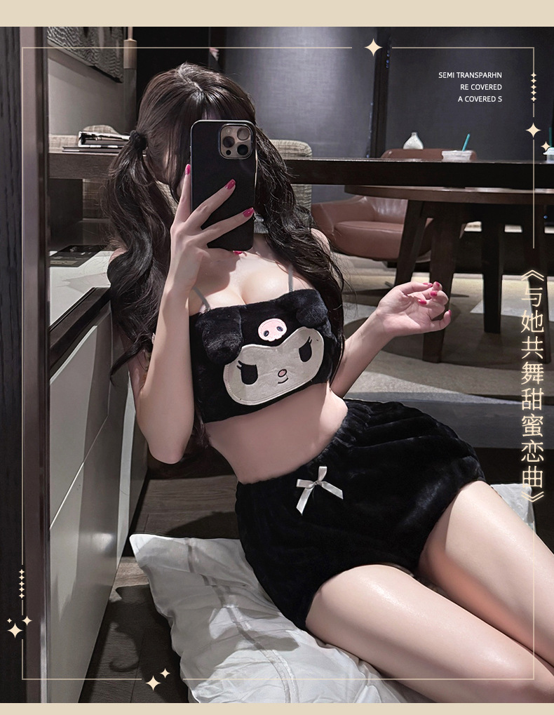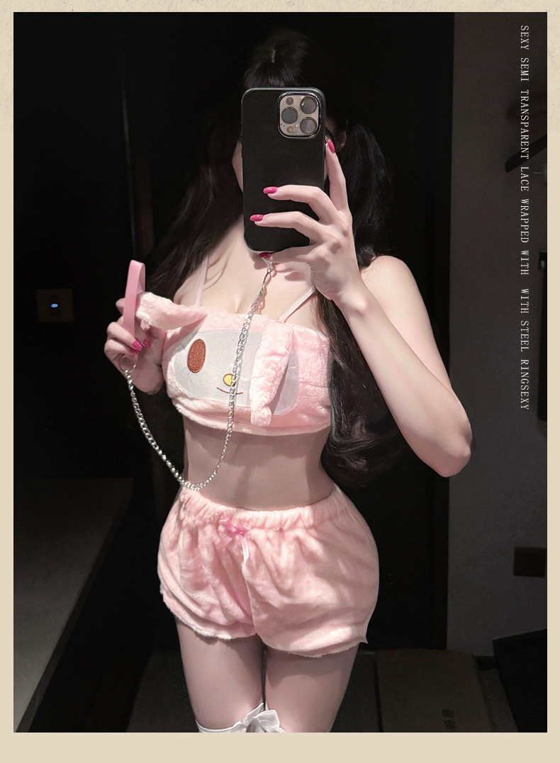 밤 Tingxiang 겨울 새로운 귀여운 소녀 스타일 잠옷 세트 부드러운 귀여운 만화 2 차원 속옷 부드러운 왁스 홈 옷