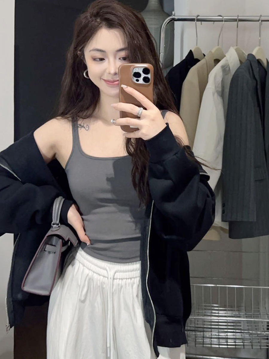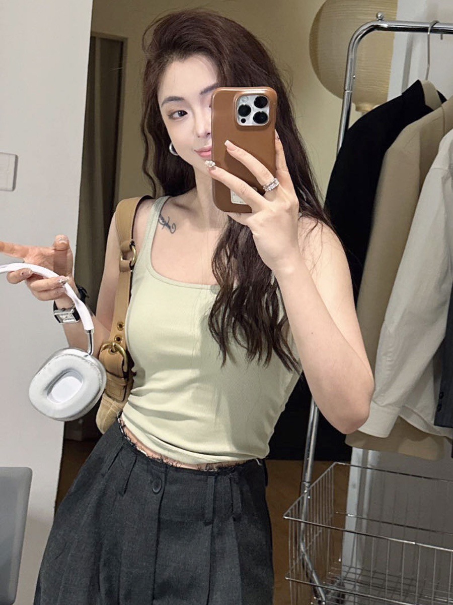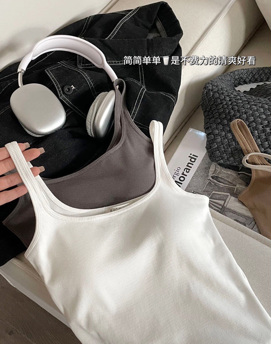 한국식 스퀘어 칼라 스몰 슬링 올매치 원피스 컵 조끼 슬림핏 통기성 내심 입기 아우터 입고 탑 커버링 파라멜리아