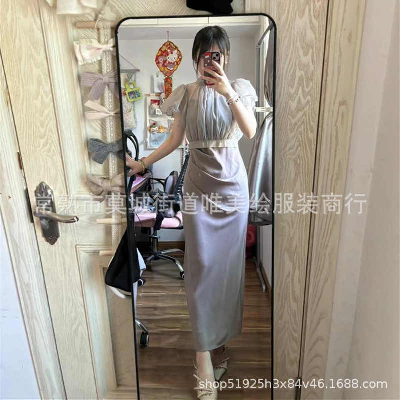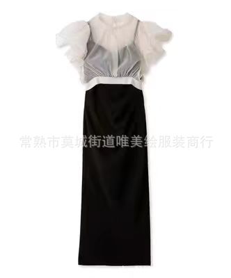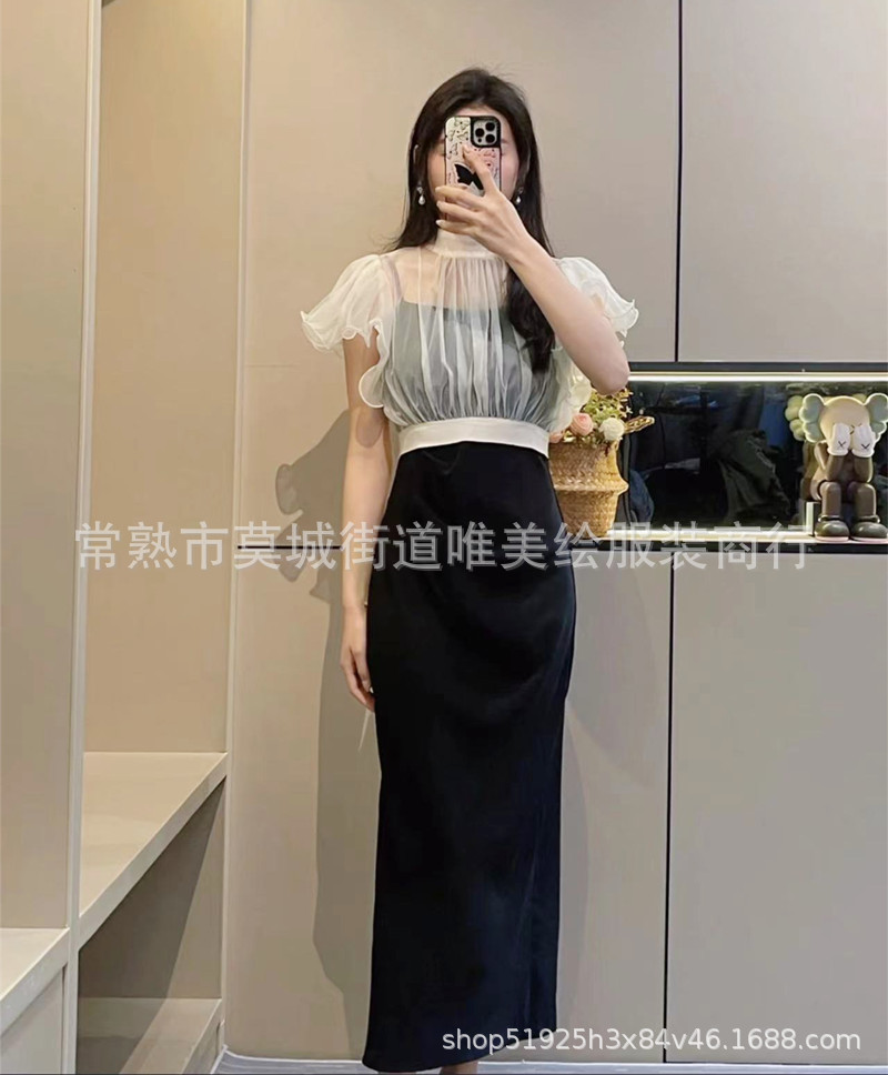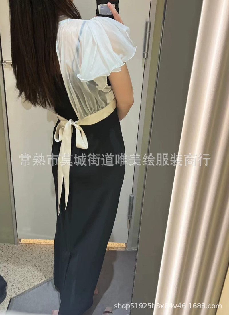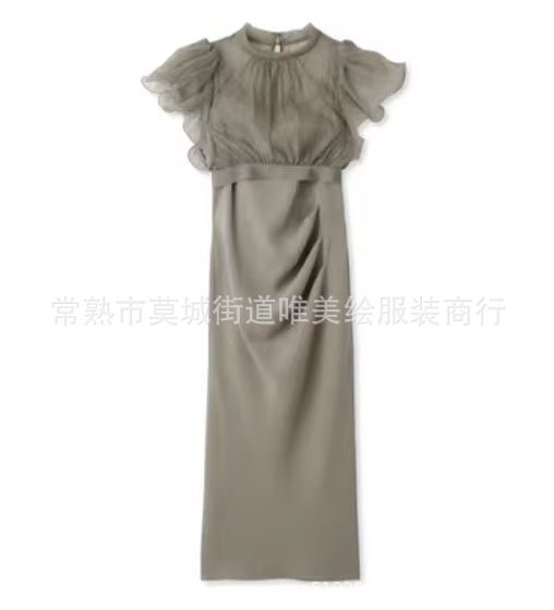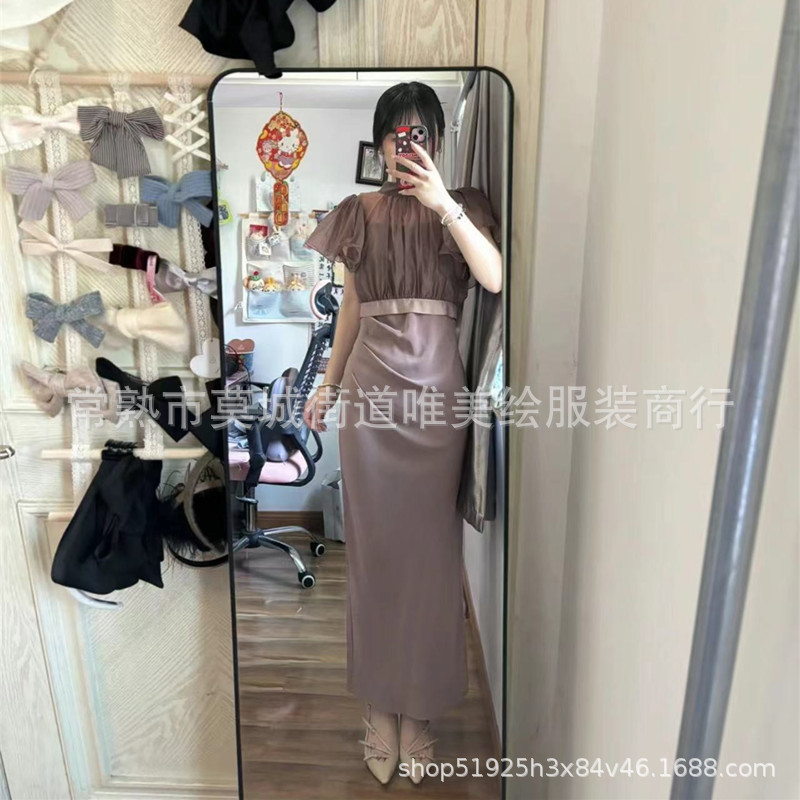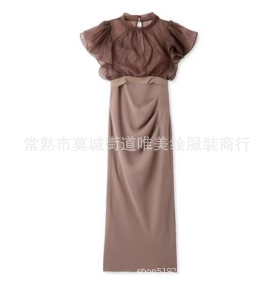 S 가족 일본 여름 파종 원사 Ruffled See-through Shirt Ruffled Waist Sling 원피스 투피스 SWFO232037