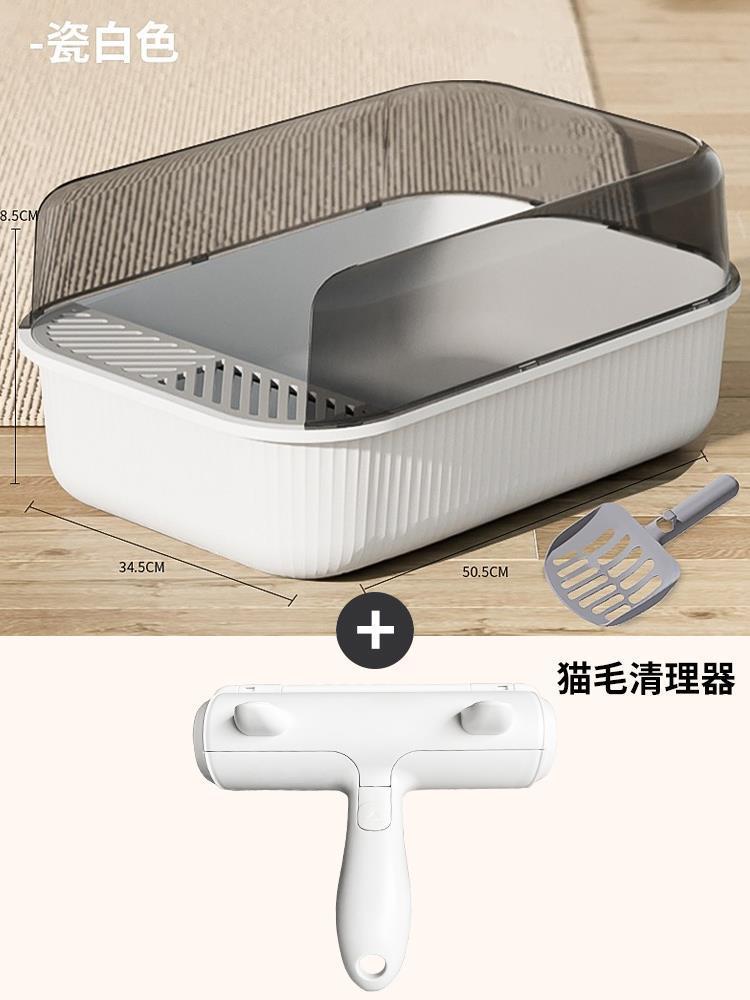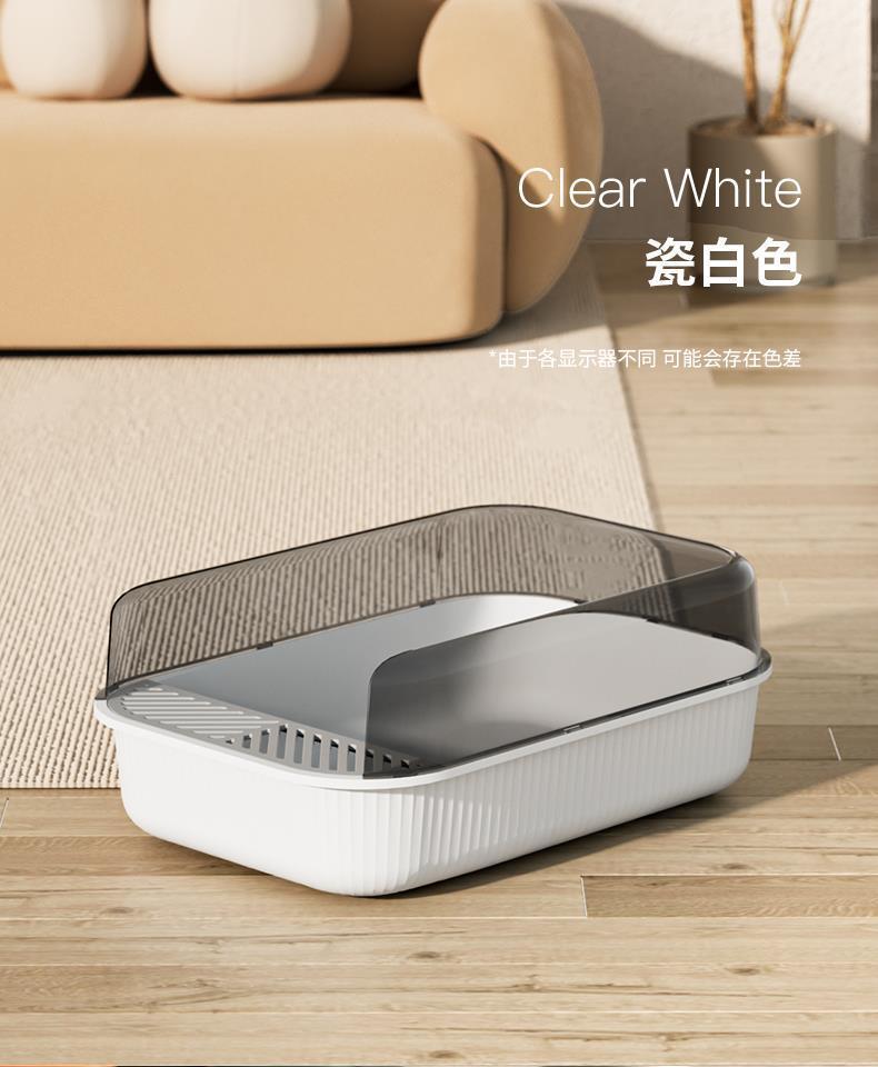 • 초대형 두꺼운 높은 울타리 - 세라믹 화이트 [고양이 쓰레기 국자 포함]