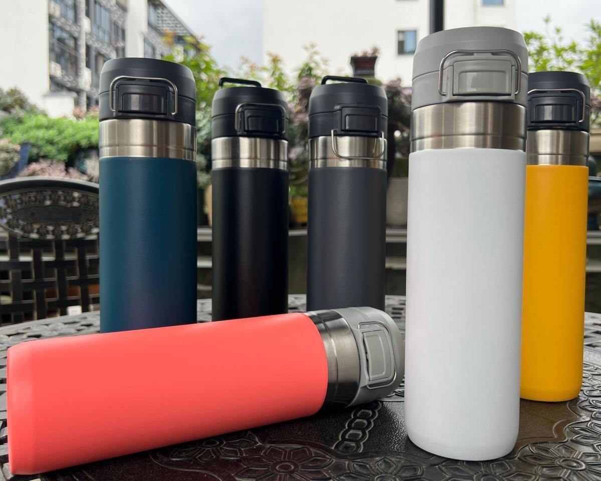 야외 스테인레스 스틸 바운스 커버 보온병 컵 휴대용 스포츠 승마 컵 등산 주전자 핸드 컵 선물 컵 도매스토어 가기
