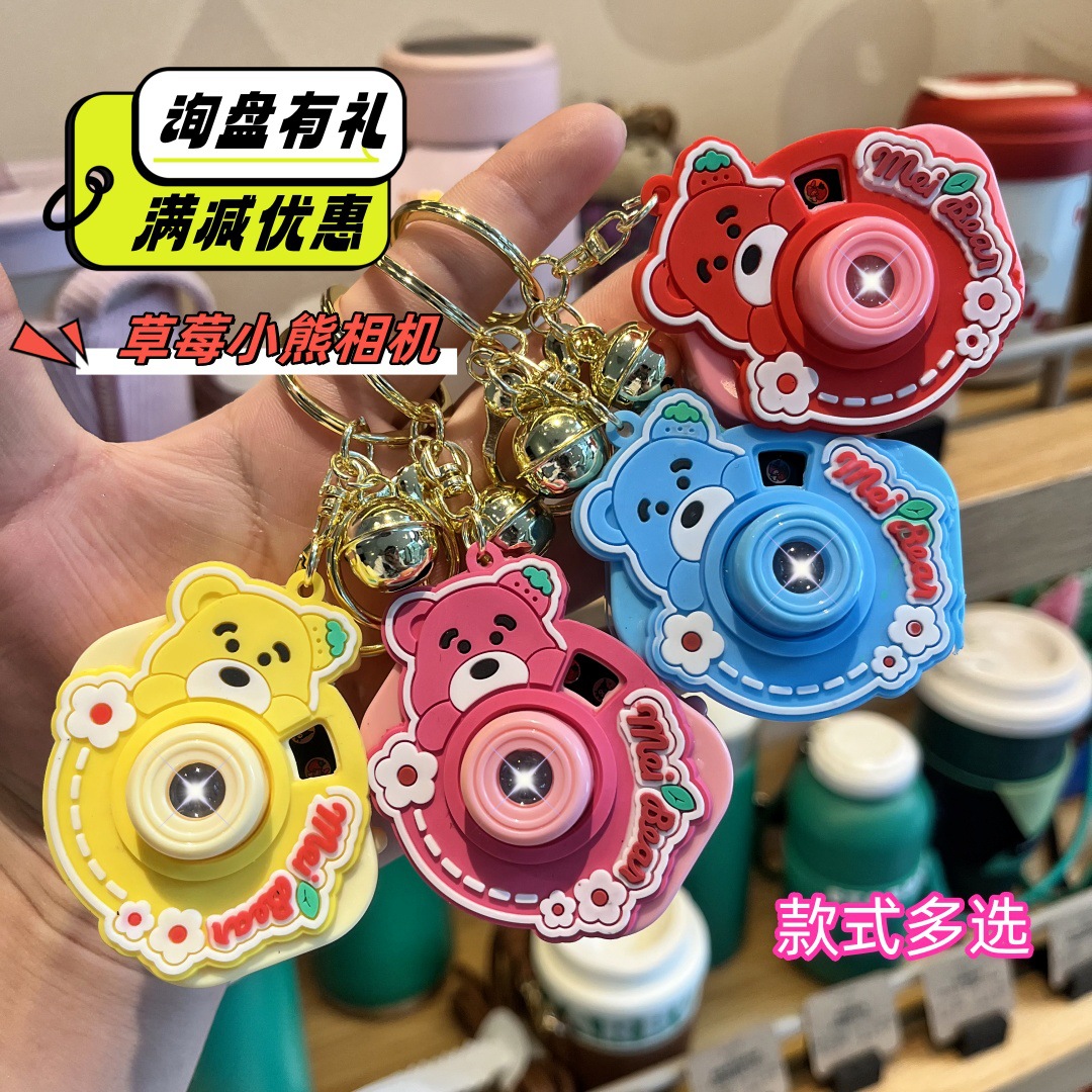 귀여운 딸기 곰 시리즈 프로젝션 카메라 펜던트 어린이 선물 장난감 가방 매달려 장식 인형 기계 푸시 선물스토어 가기