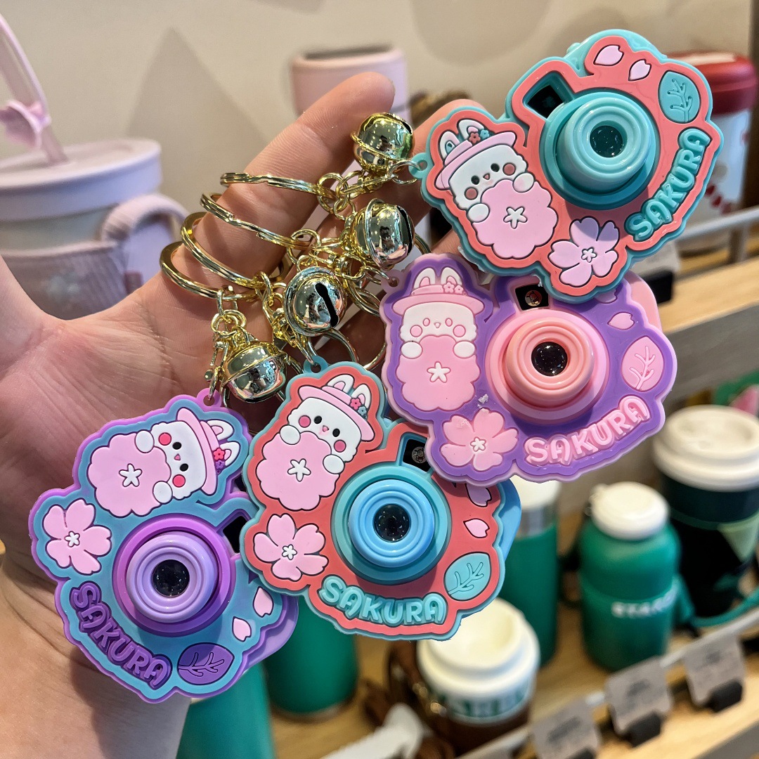 귀여운 딸기 곰 시리즈 프로젝션 카메라 펜던트 어린이 선물 장난감 가방 매달려 장식 인형 기계 푸시 선물