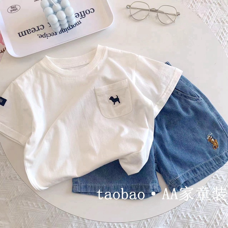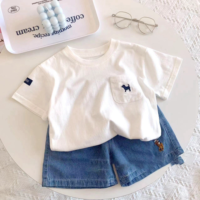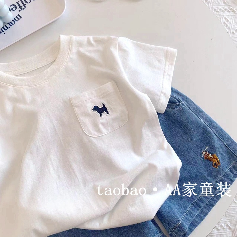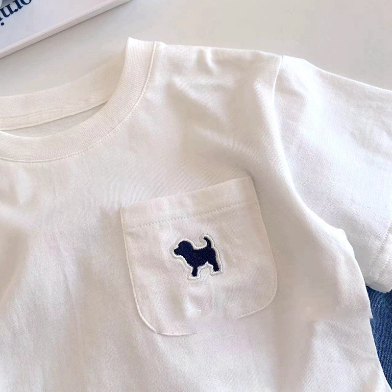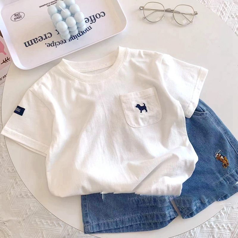 아동용 반팔 티셔츠 여름용 면 소재 다용도 흰색 반팔 상의 유아 캐주얼 티셔츠 트렌디한 흡습 발한 아동복스토어 가기
