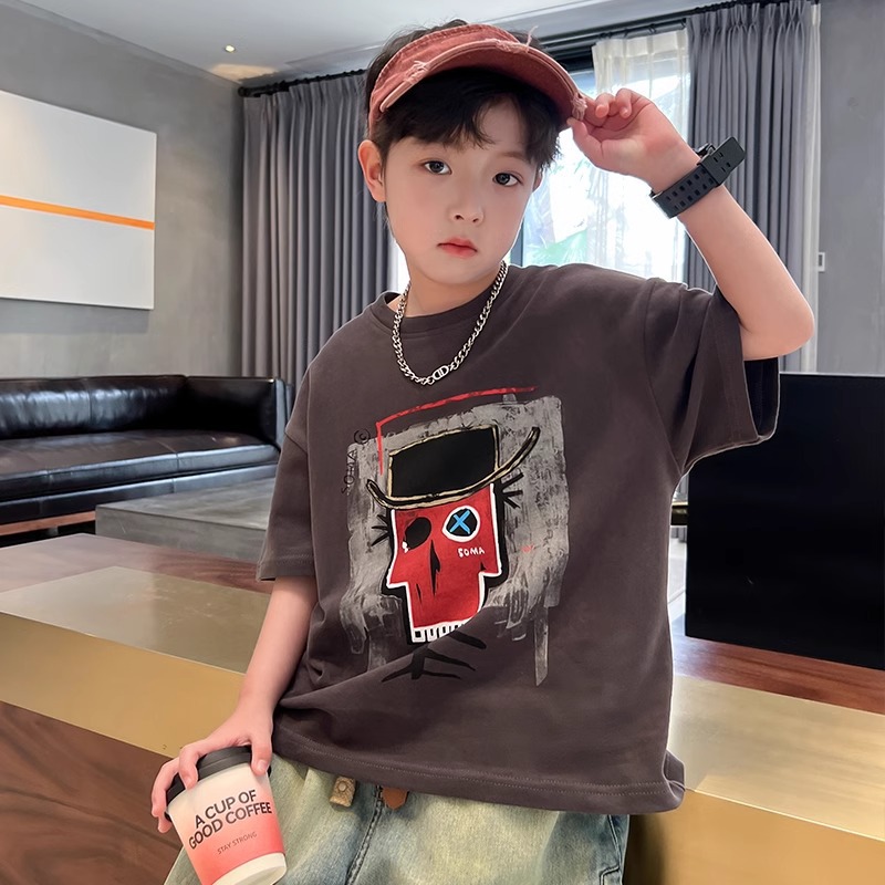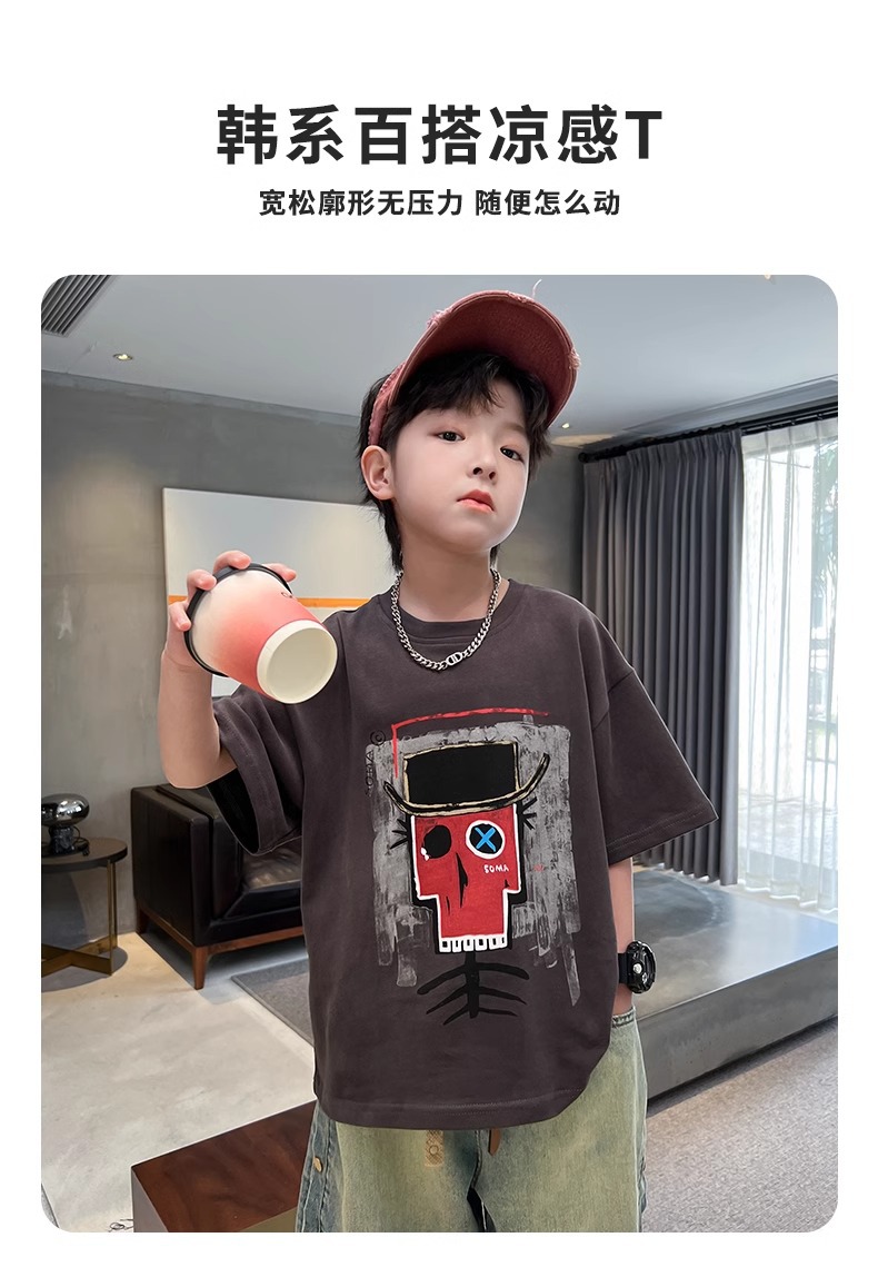아동복 반팔 남아 여름 티셔츠 2026 신상 중대형 아동 여름 순면 티셔츠 아동 반팔 상의 트렌디스토어 가기