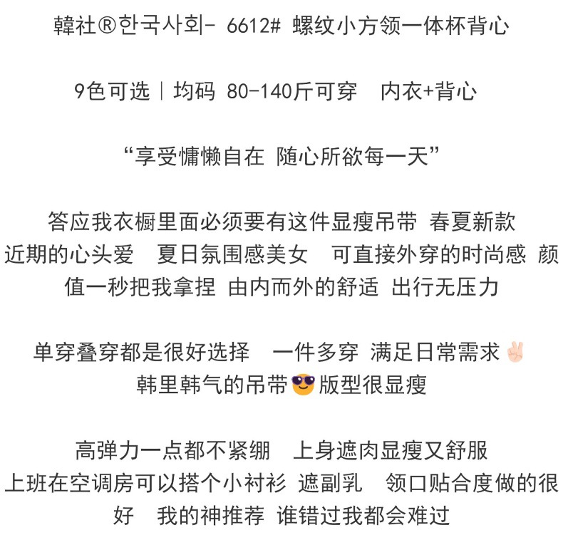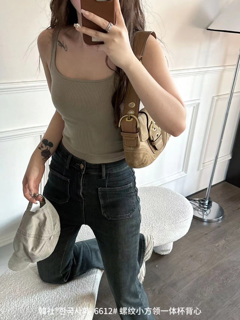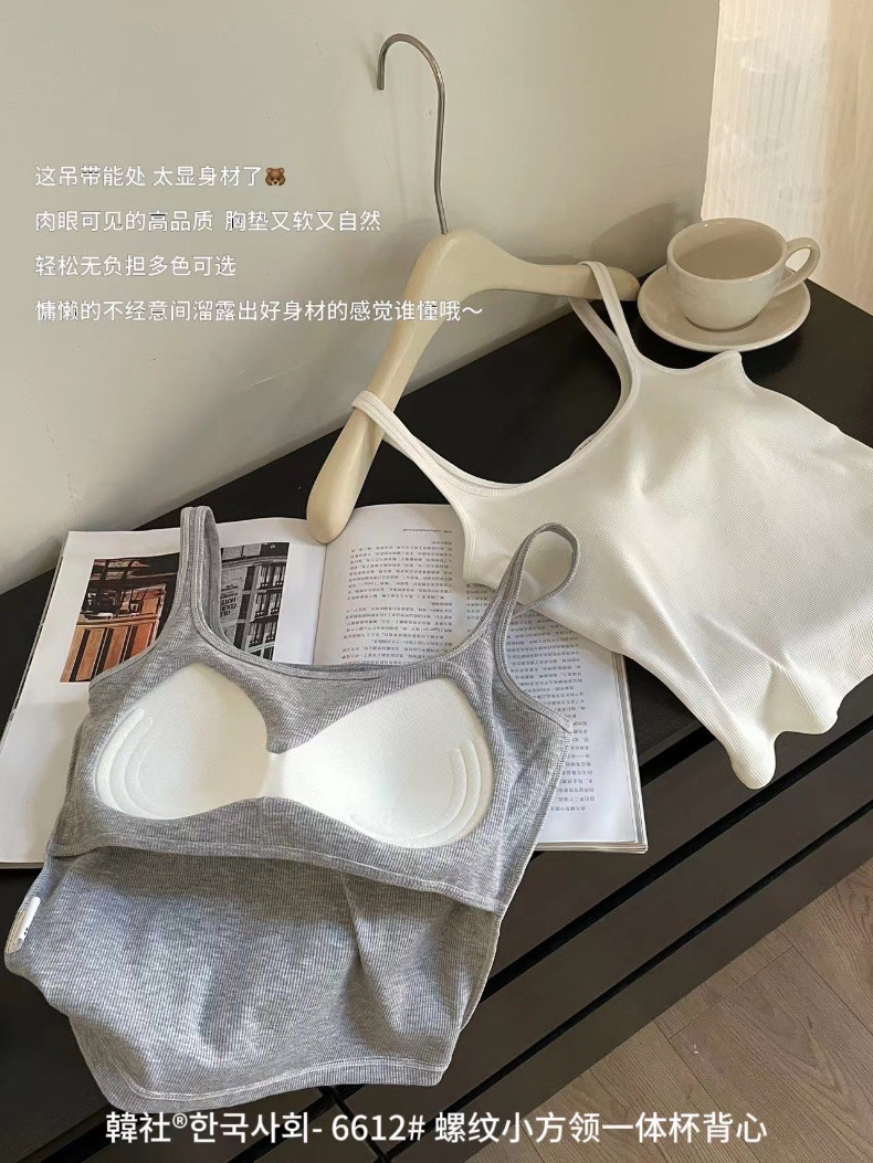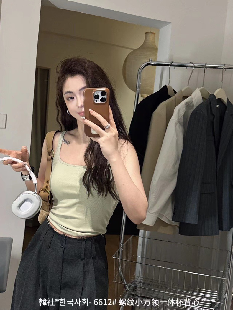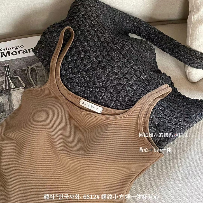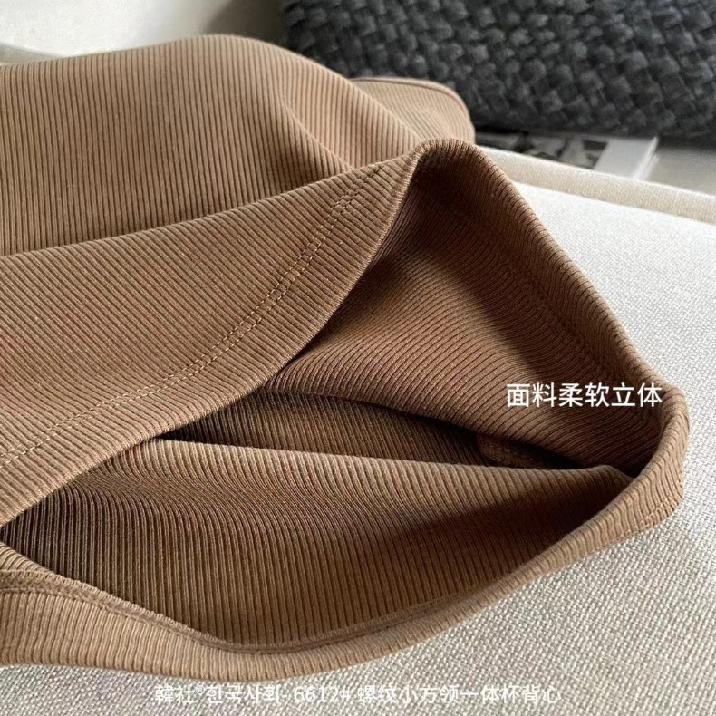 스레드 디자인의 작은 스퀘어 넥 원피스 탑 여성용 봄 여름 편안한 슬림핏 솔리드 컬러 이너웨어 아름다운 등라인 탑스토어 가기