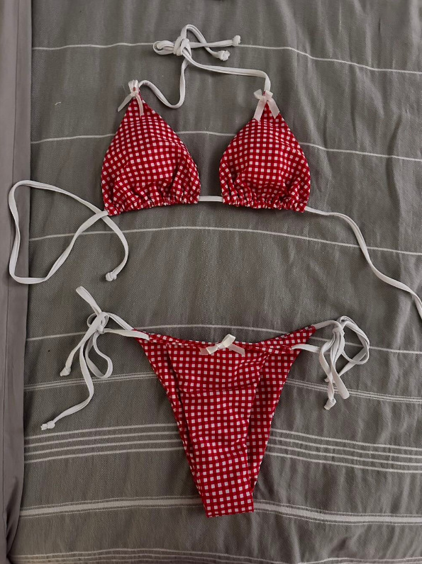 유럽과 미국의 분할 격자 무늬 인쇄 비키니 작은 신선한 섹시한 여성 수영복 대외 무역 도매 비키니 수영복 새로운스토어 가기