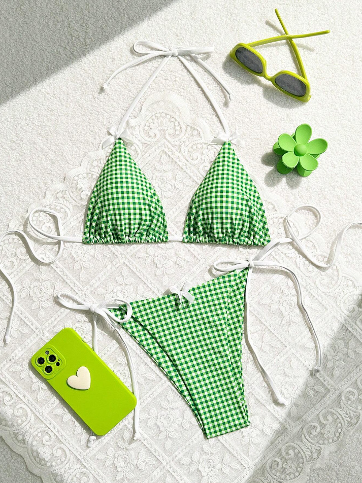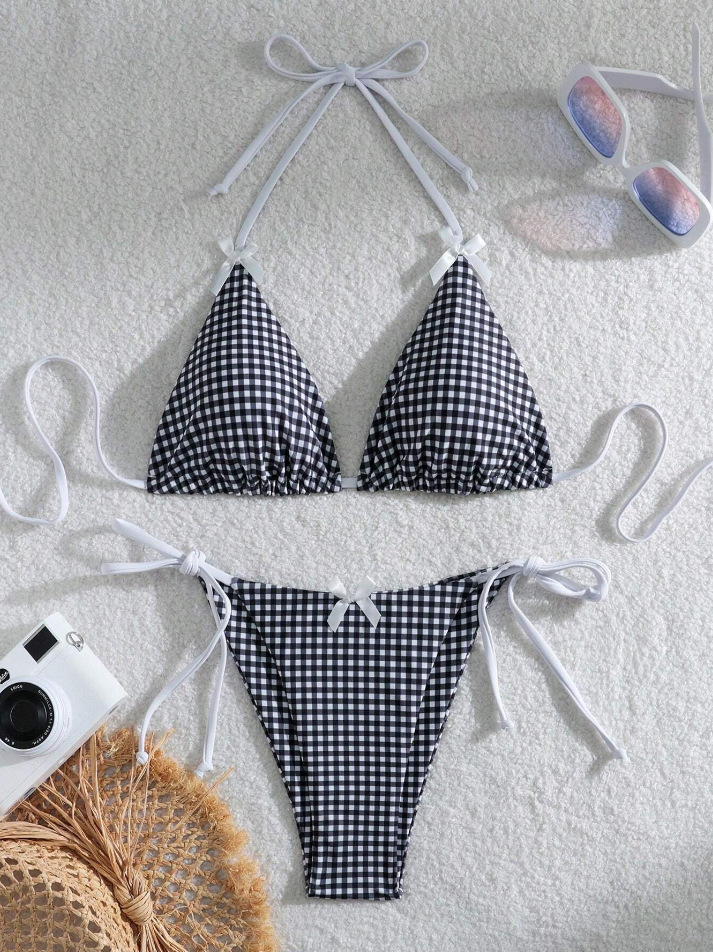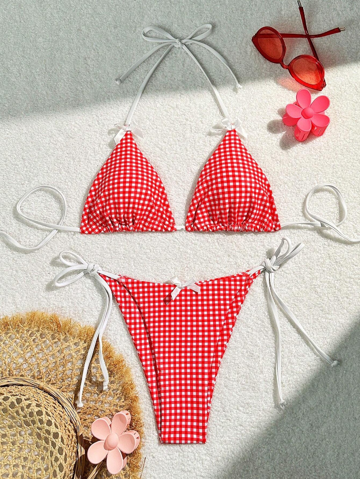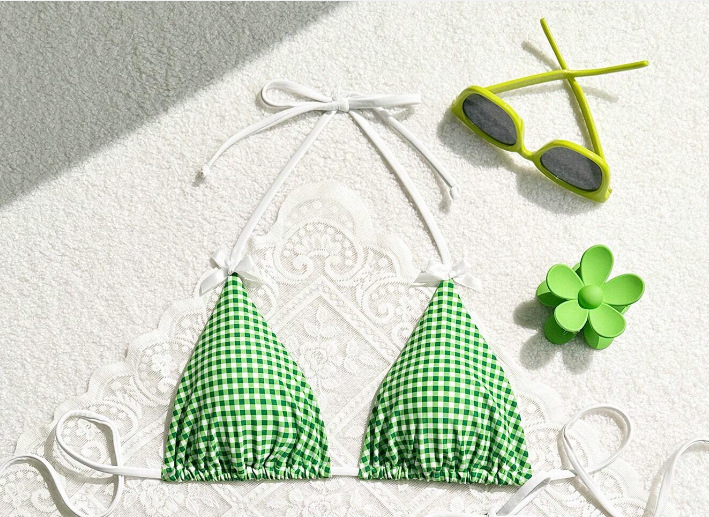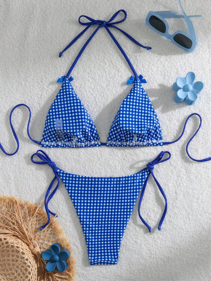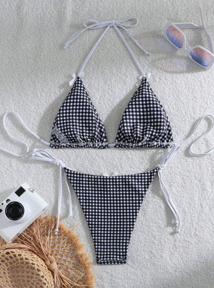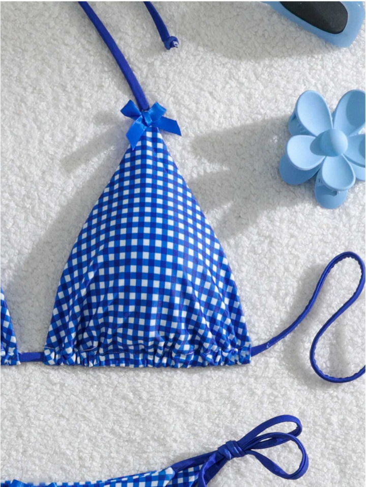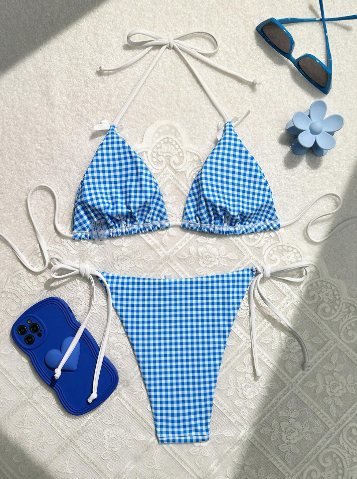 유럽과 미국의 분할 격자 무늬 인쇄 비키니 작은 신선한 섹시한 여성 수영복 대외 무역 도매 비키니 수영복 새로운