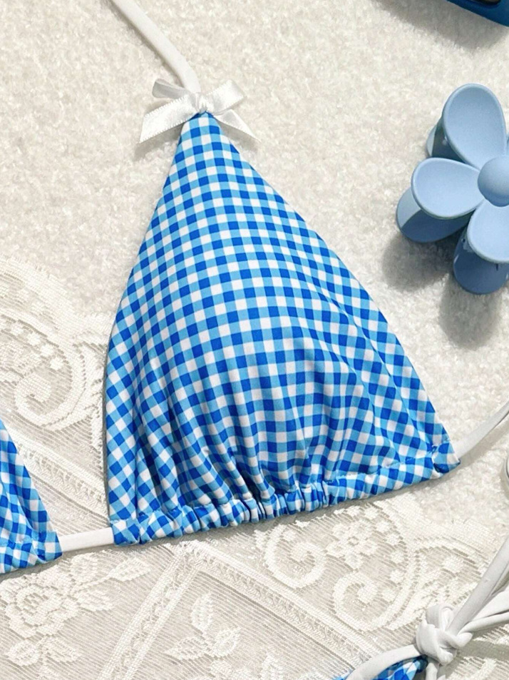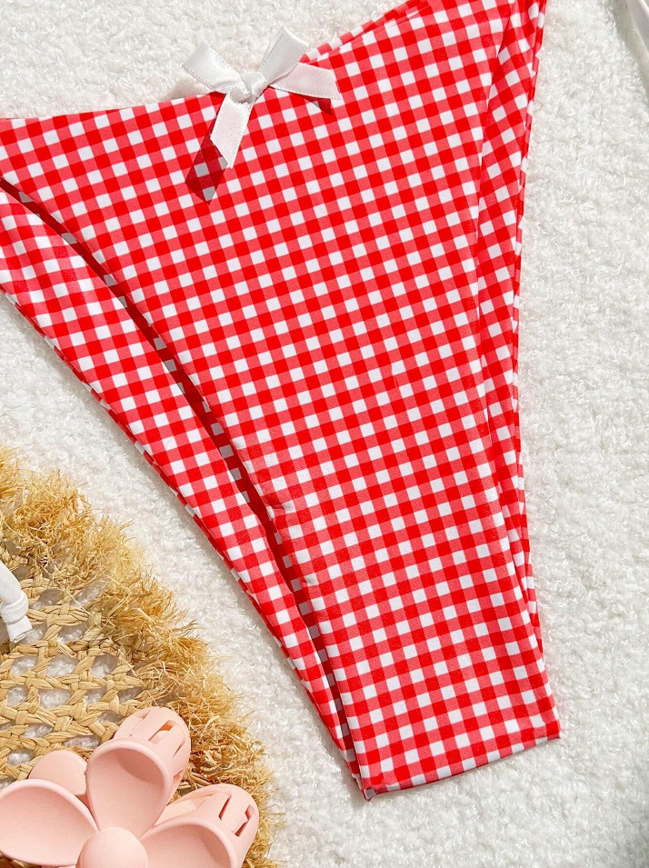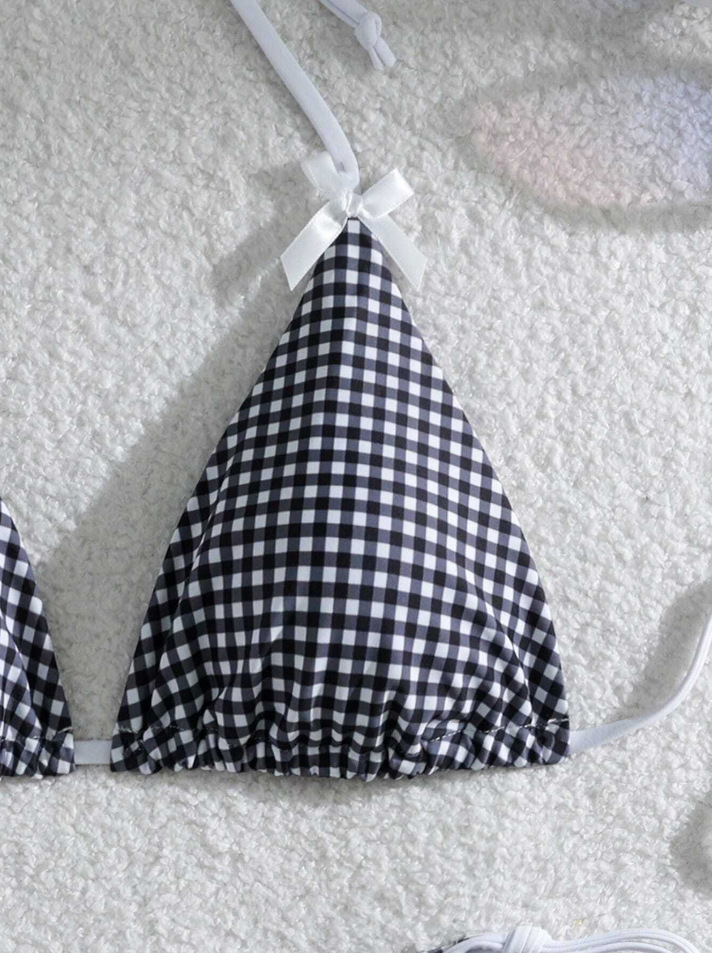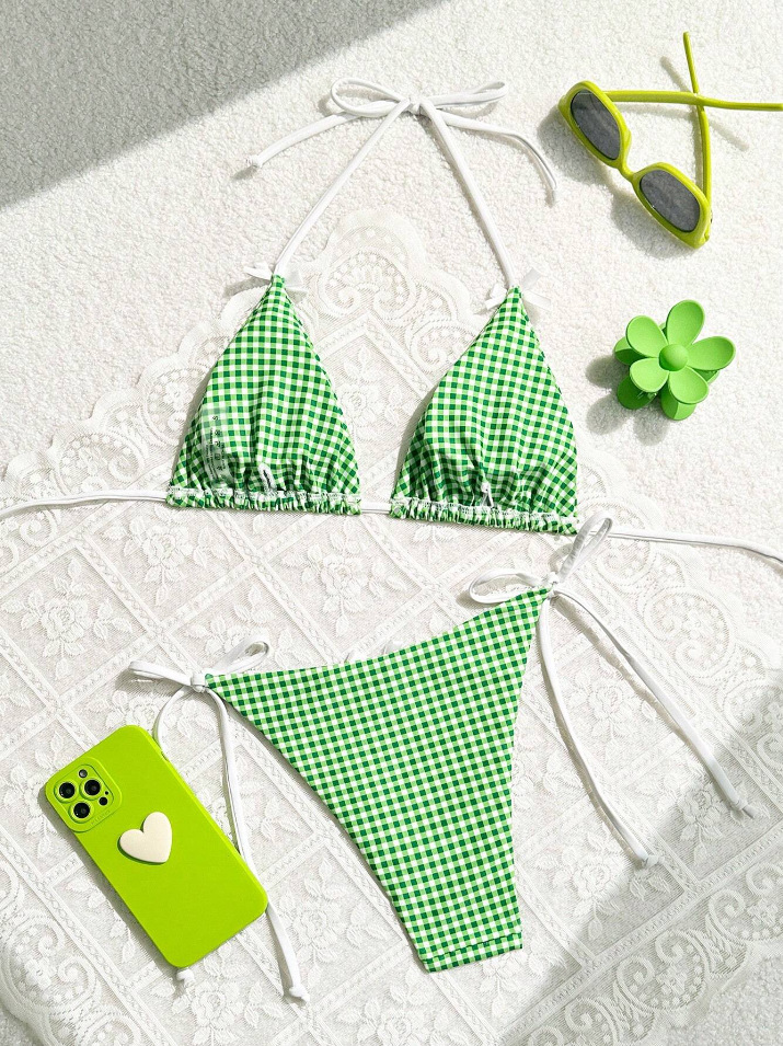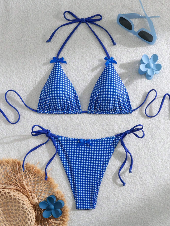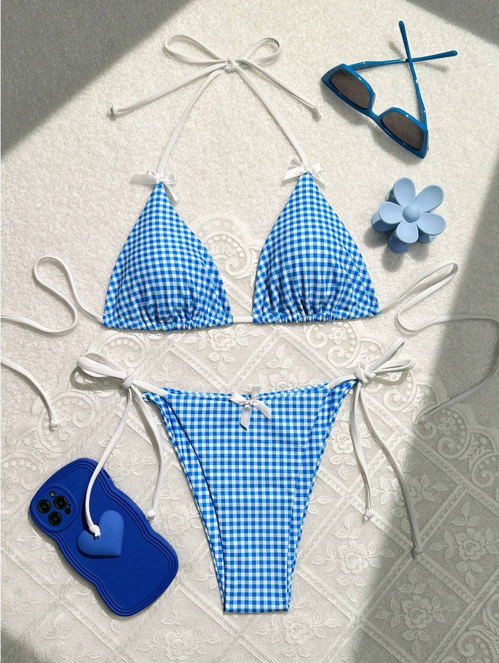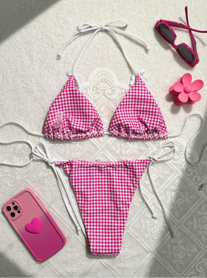 유럽과 미국의 분할 격자 무늬 인쇄 비키니 작은 신선한 섹시한 여성 수영복 대외 무역 도매 비키니 수영복 새로운