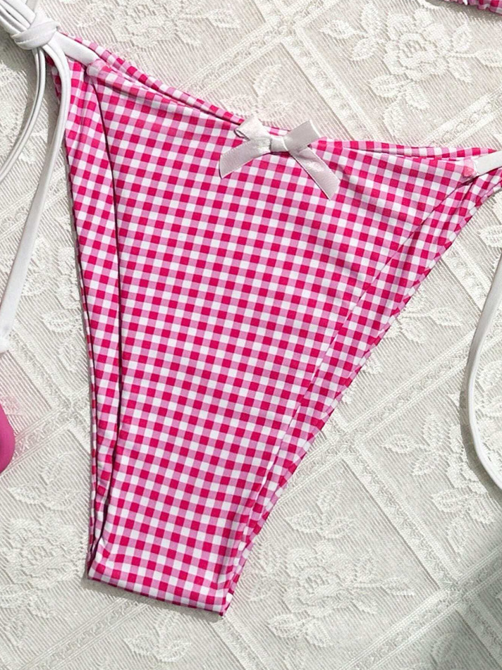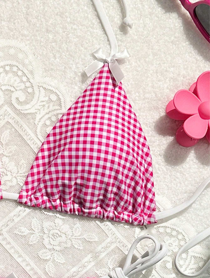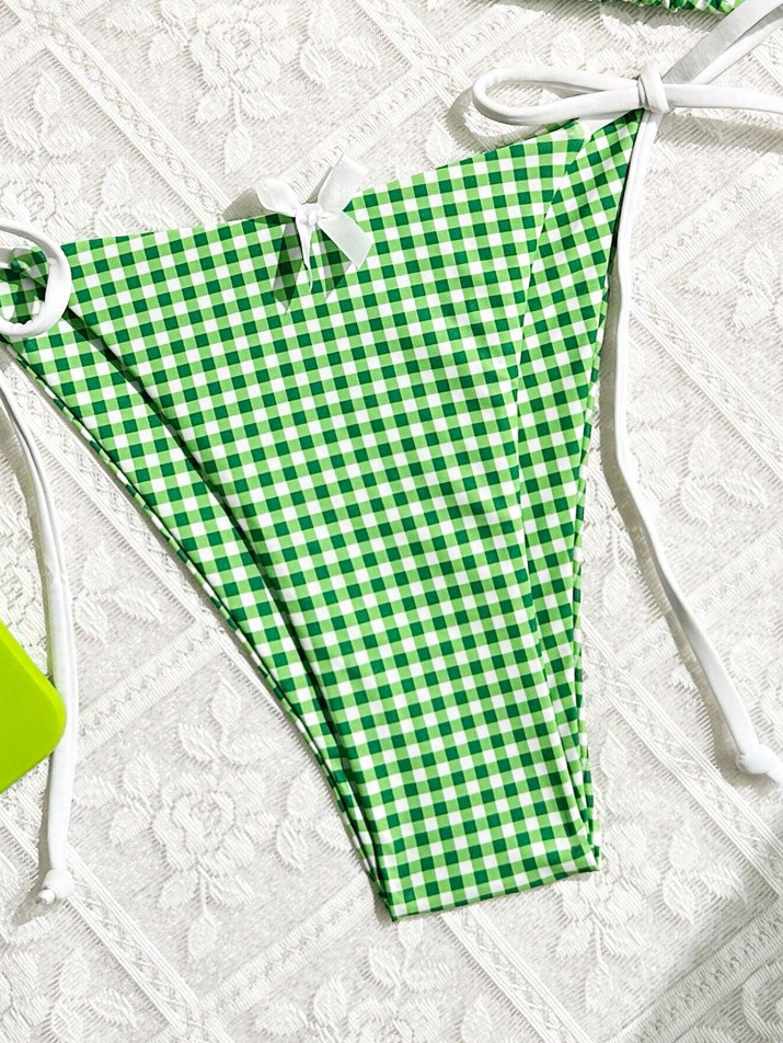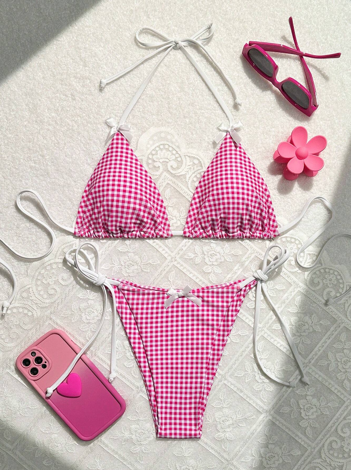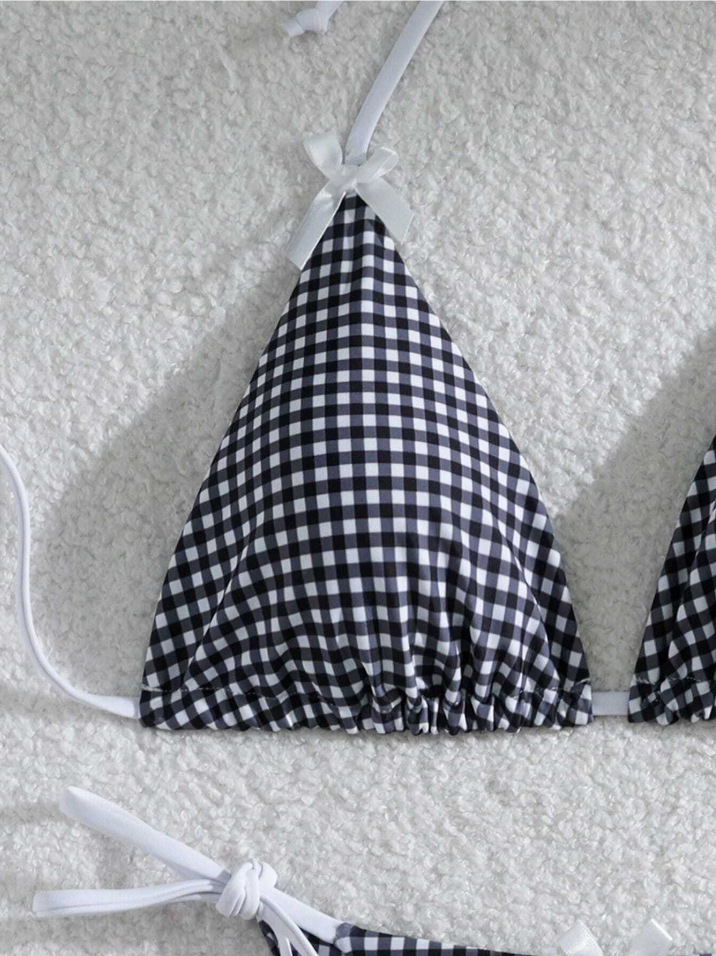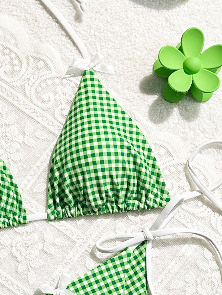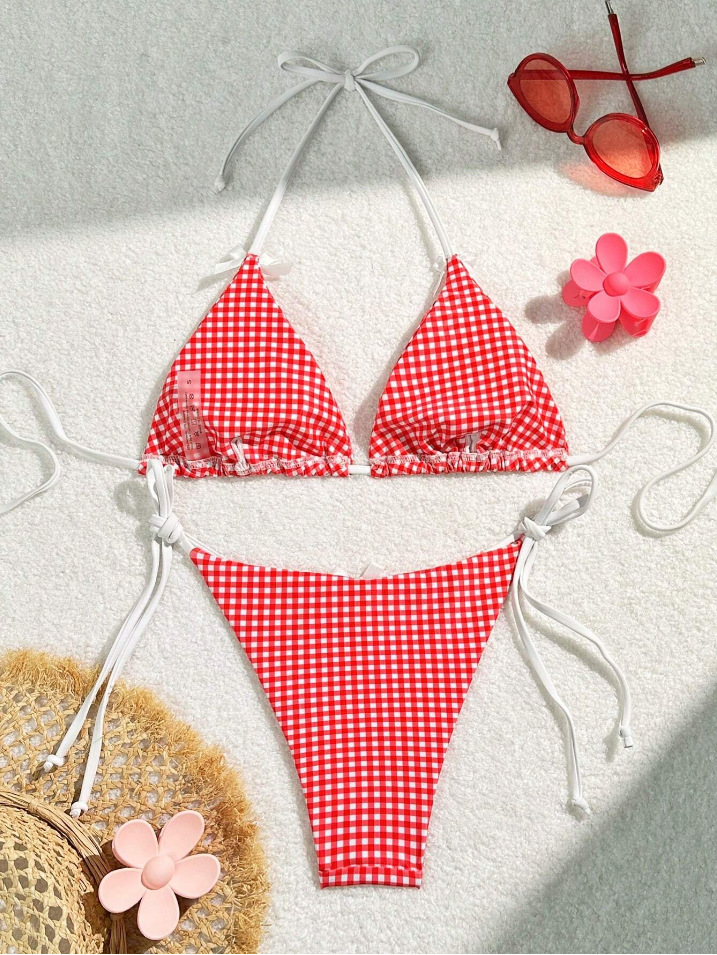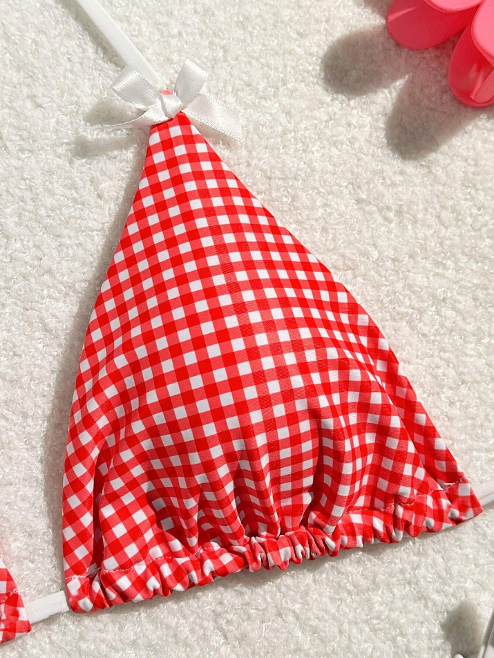 유럽과 미국의 분할 격자 무늬 인쇄 비키니 작은 신선한 섹시한 여성 수영복 대외 무역 도매 비키니 수영복 새로운