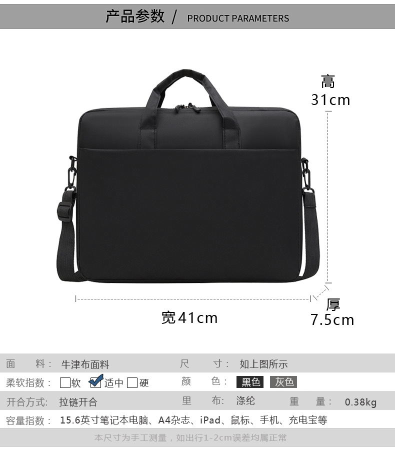 새로운 휴대용 노트북 가방 대용량 비즈니스 사무실 회의 어깨 가방 플랫 패널 저장 크로스 바디 캐주얼