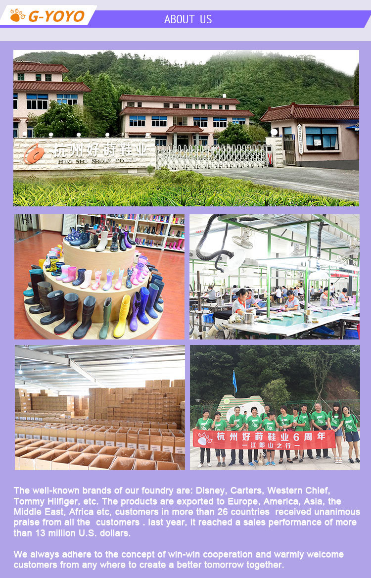새로운 어린이 장화 두꺼운 물 신발 높은 방수 미끄럼 방지 만화 고무 장화 유럽과 미국으로 수출 공장 도매