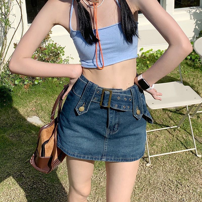 흰색 뜨거운 소녀 높은 허리 데님 스커트 여성 여름 Ins 유행 바지 스커트 디자인 센스 작은 A 라인 힙합 미니 스커트스토어 가기