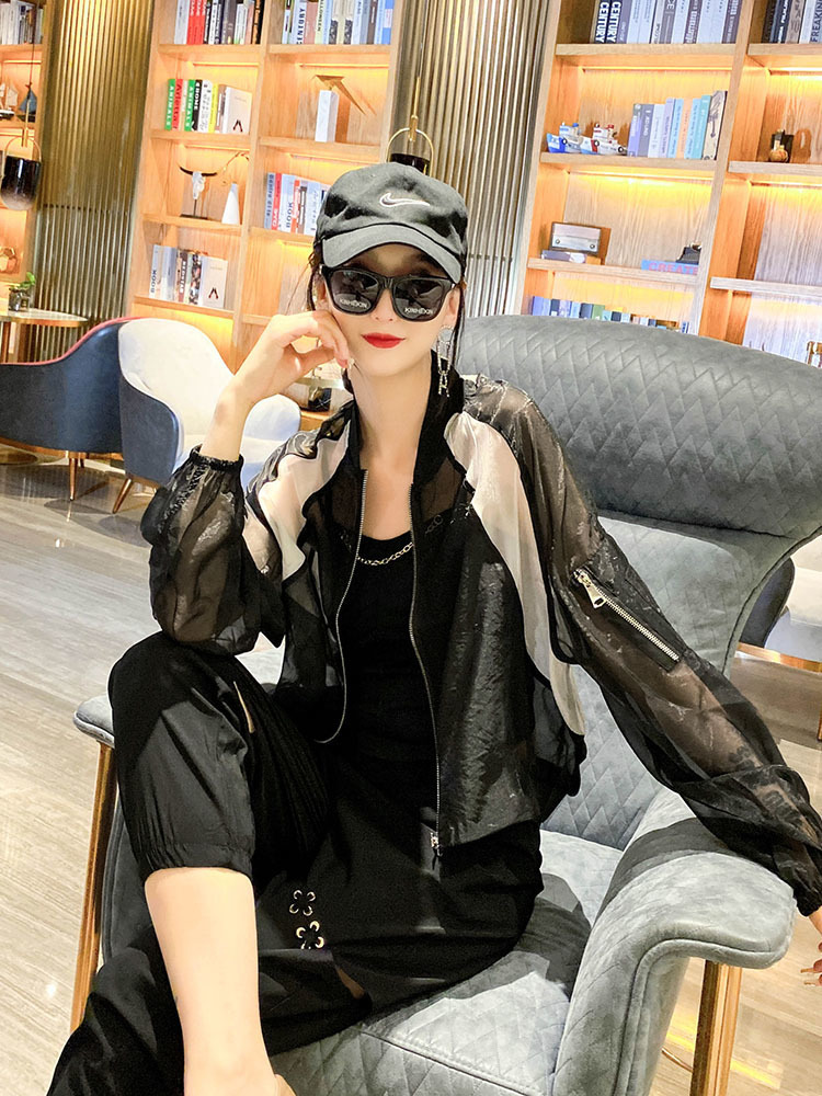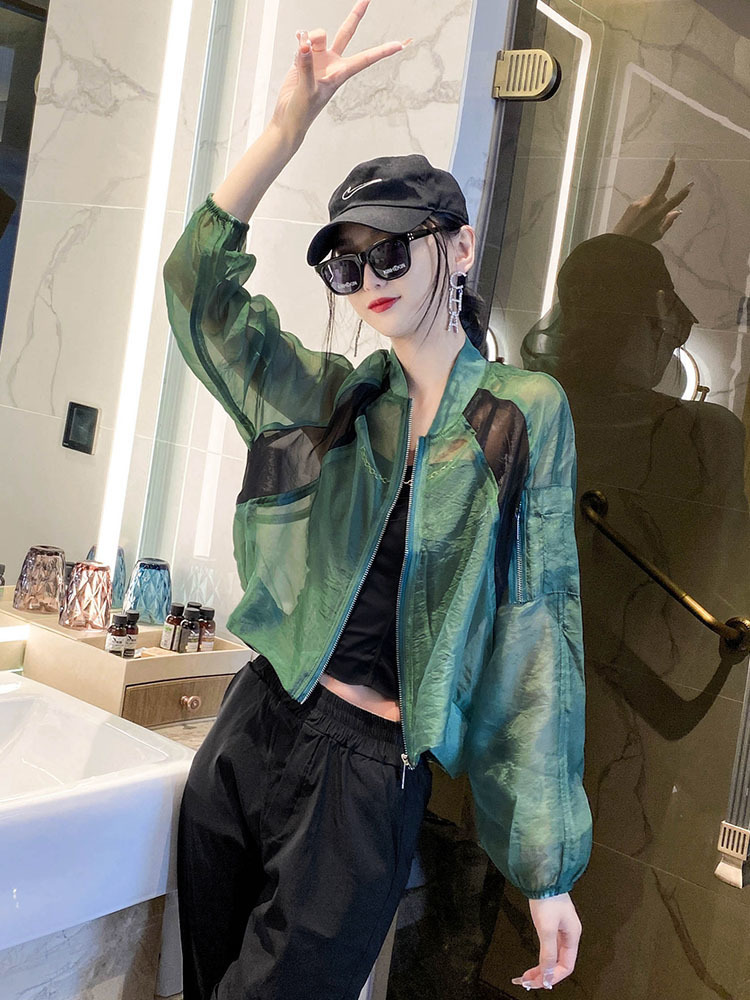선스크린 재킷 여성의 새로운 한국 스타일 느슨한 통기성 유행 짧은 야구 세트 재킷 얇은 탑