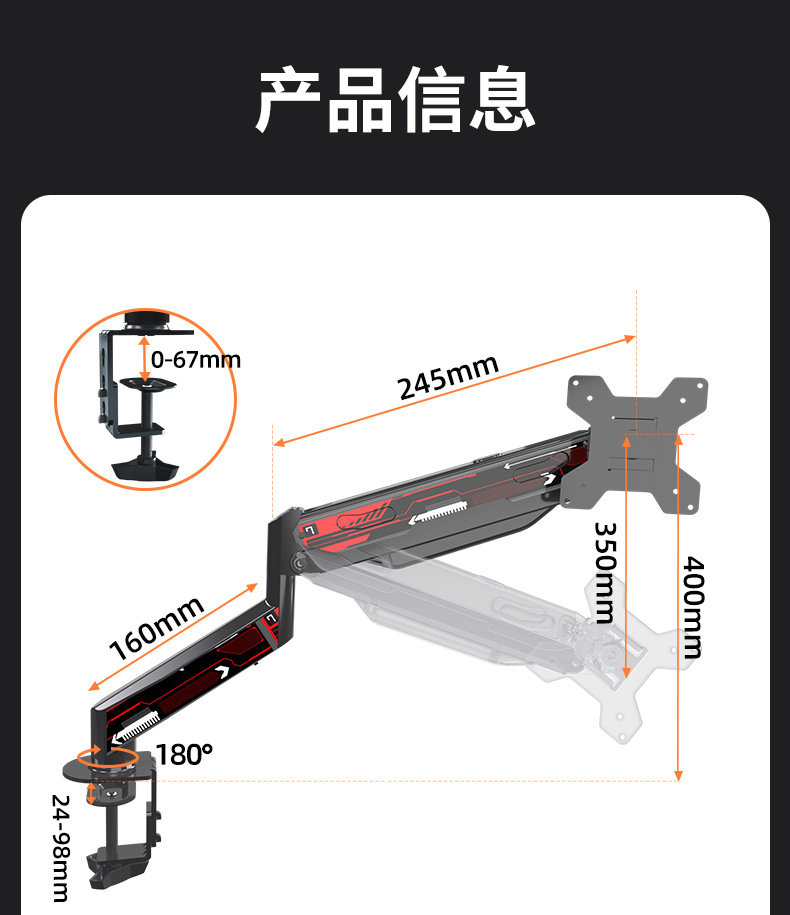 디스플레이 브래킷 컴퓨터 기계 팔 편리한 컴퓨터 디스플레이 화면 캔틸레버 베사 홀 데스크톱베이스