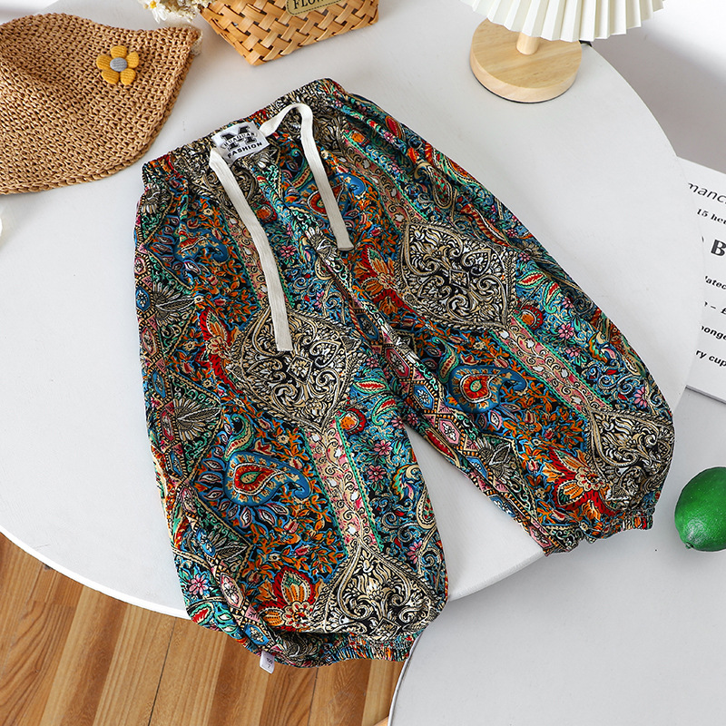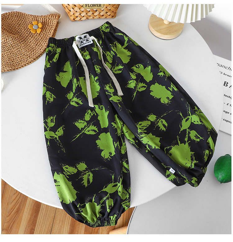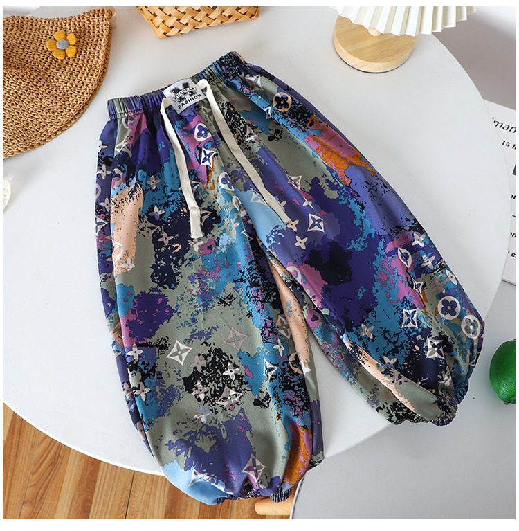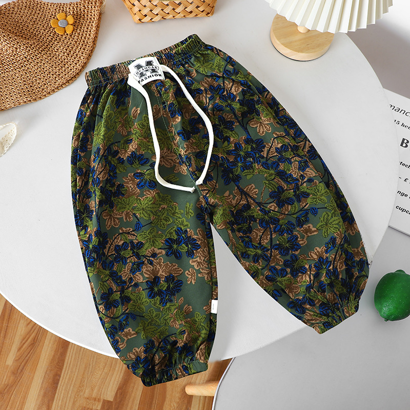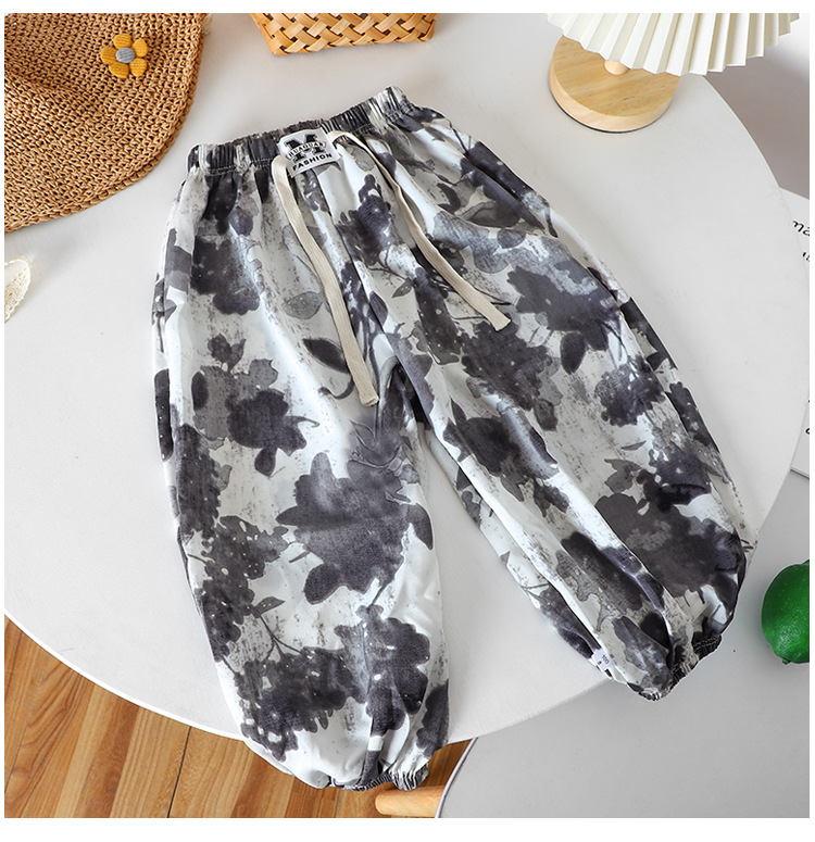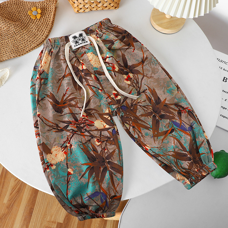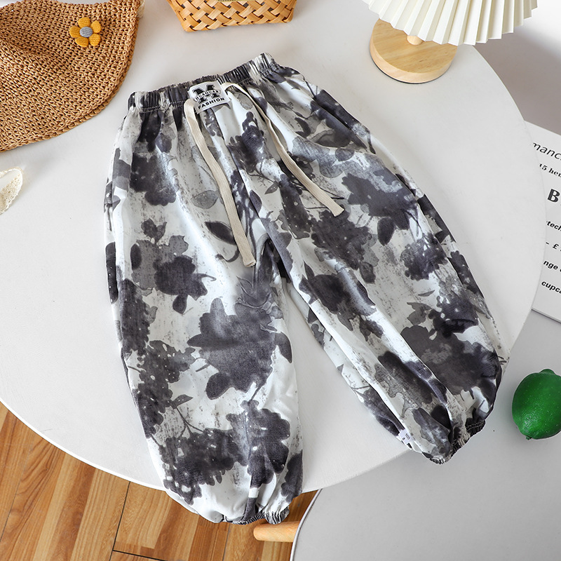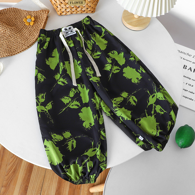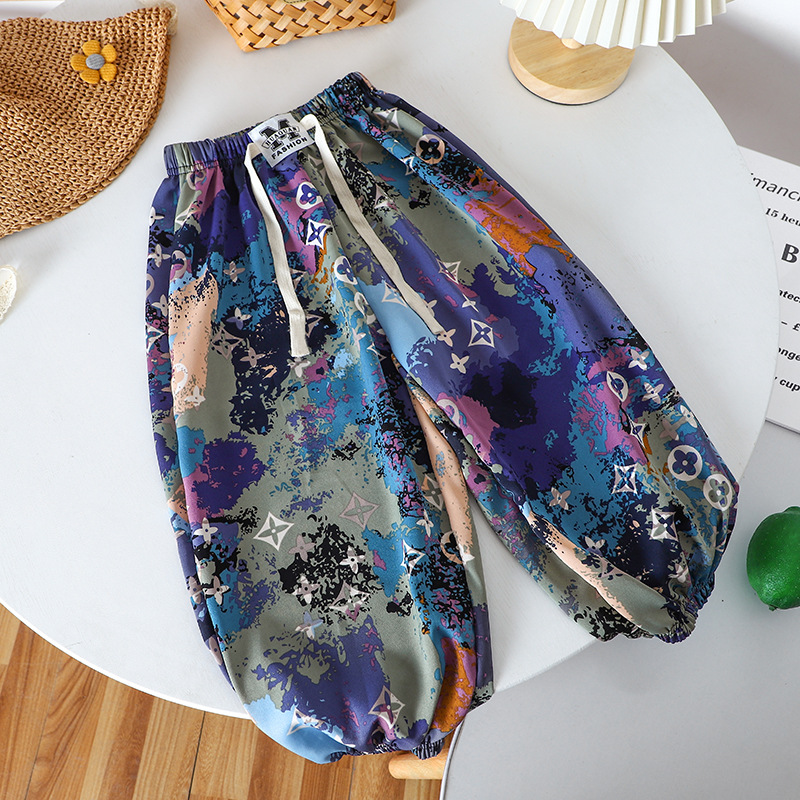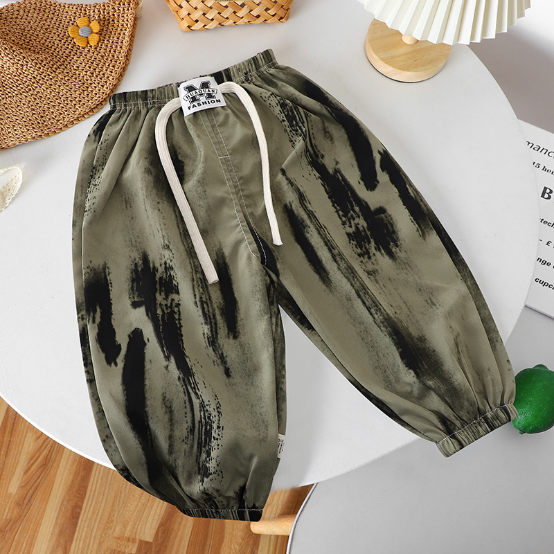 여름 어린이 캐주얼 안티 모기 바지 남성과 여성의 얇은 쿨 미드 빅 어린이 서양식 유행 캐주얼 느슨한 발목 길이 바지