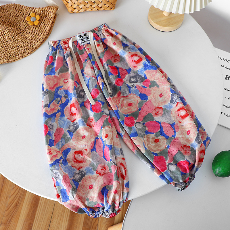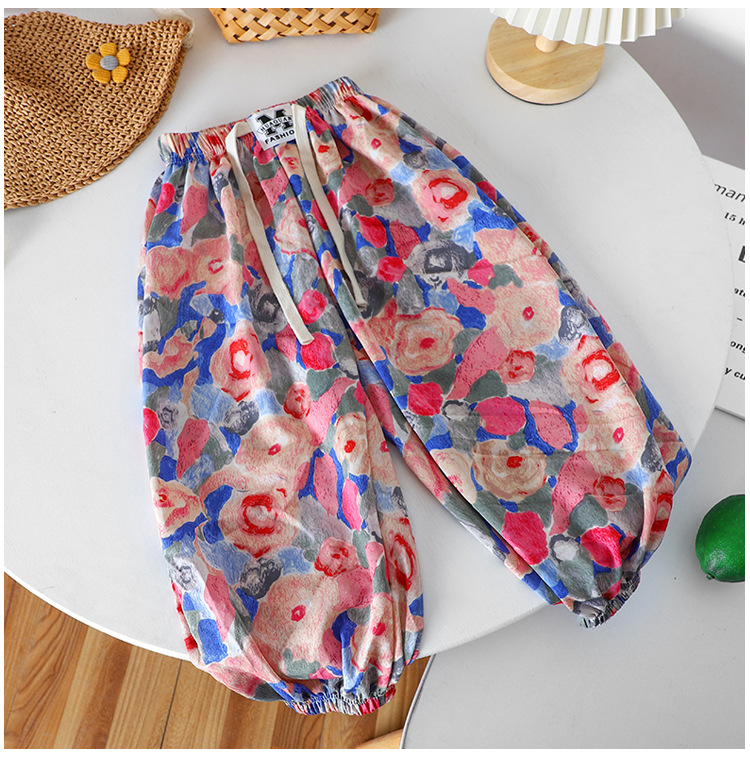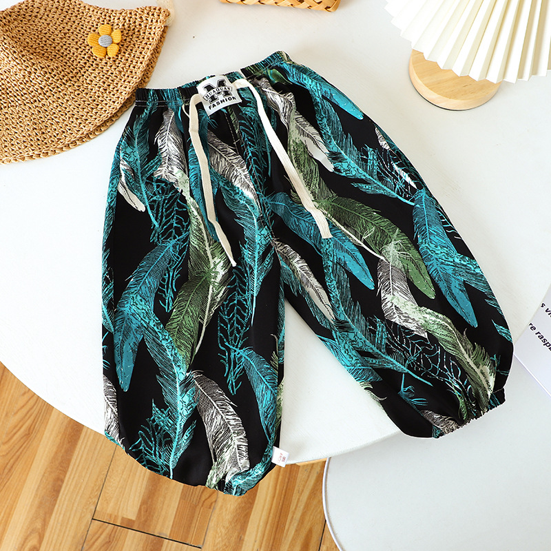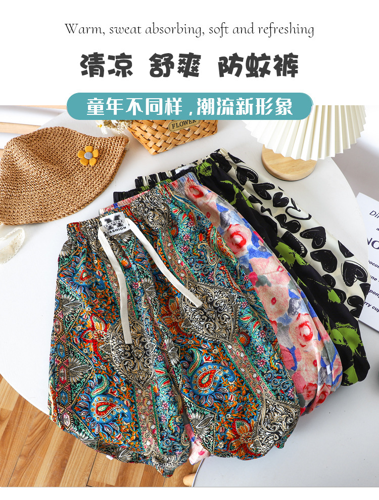 여름 어린이 캐주얼 안티 모기 바지 남성과 여성의 얇은 쿨 미드 빅 어린이 서양식 유행 캐주얼 느슨한 발목 길이 바지스토어 가기
