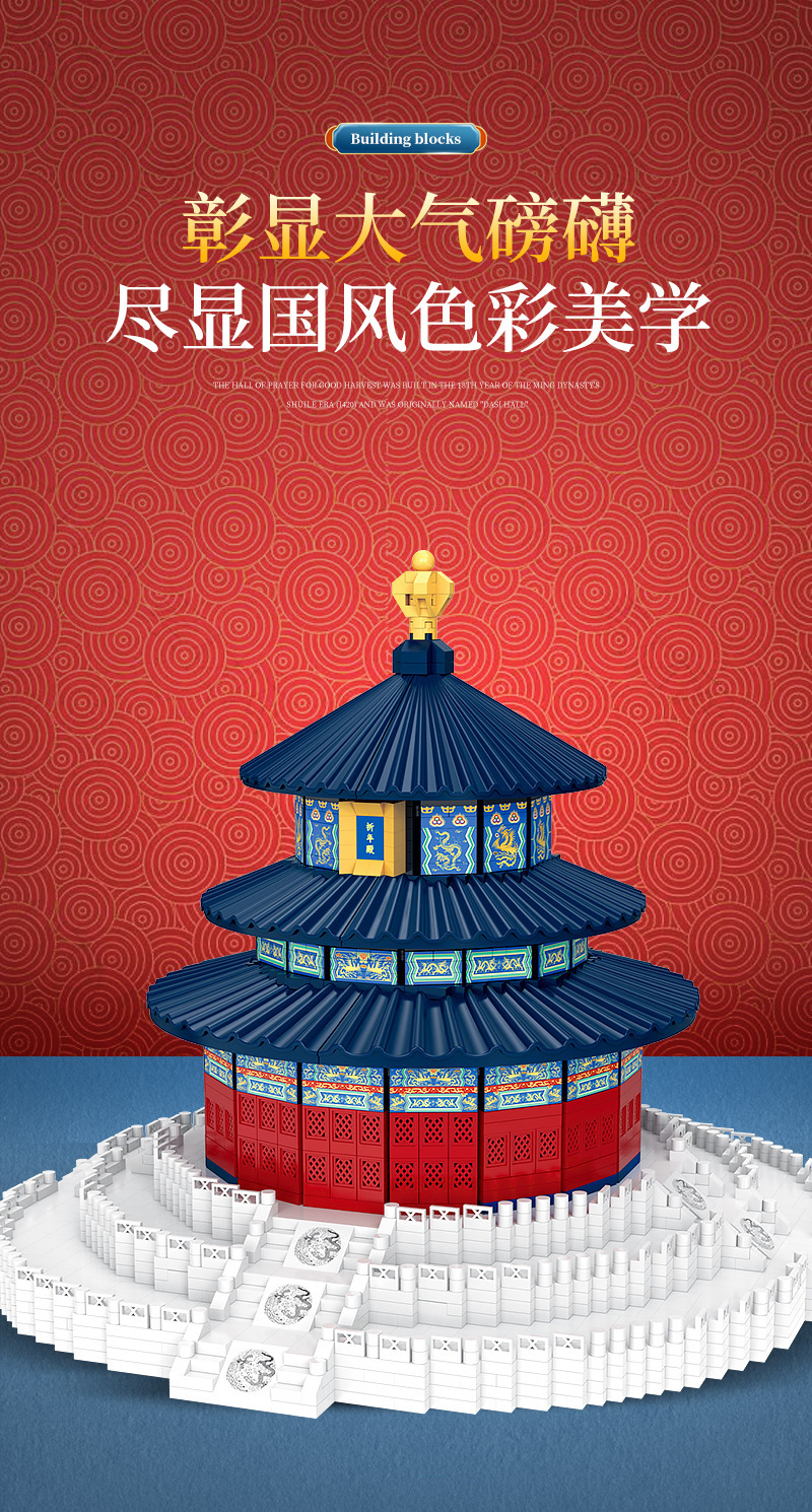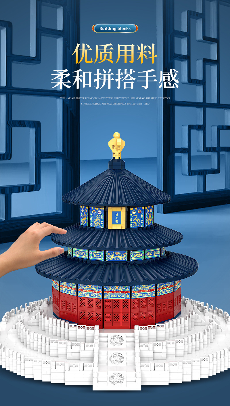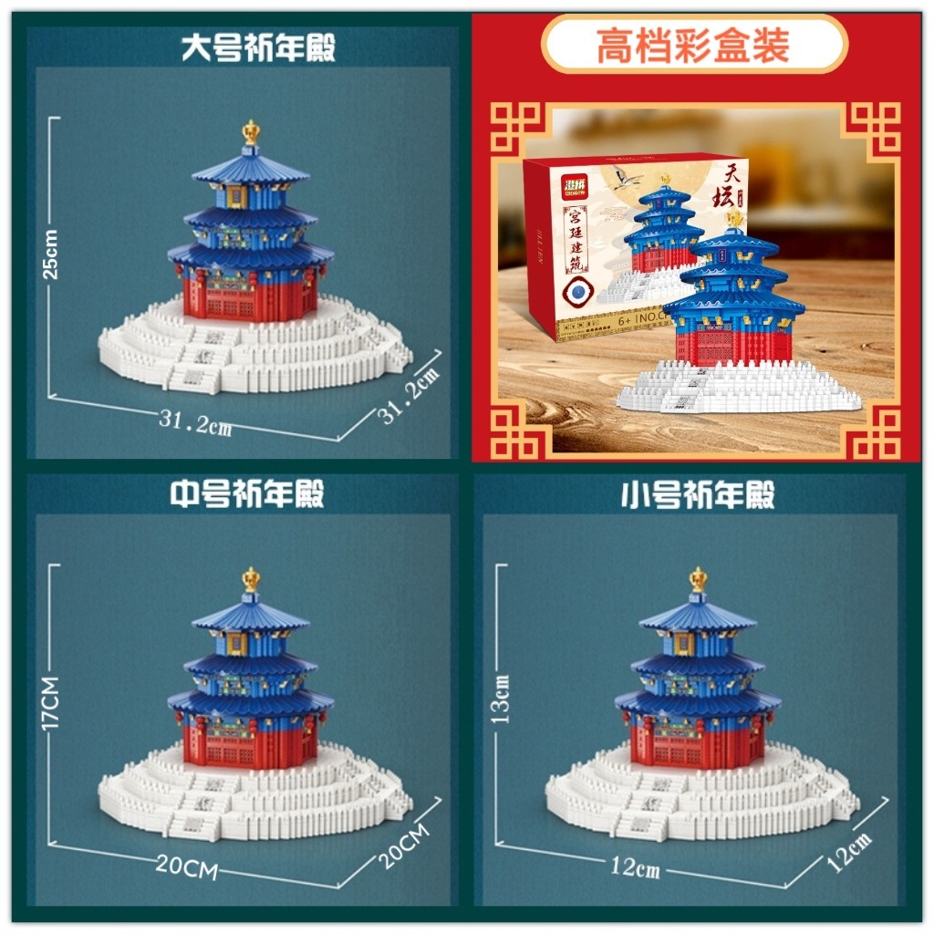 국가 조수 창조적 인 자금성 기념품 장식품 천국의 사원 기도 홀 작은 건물 블록 성인 억압 장난감 도매스토어 가기