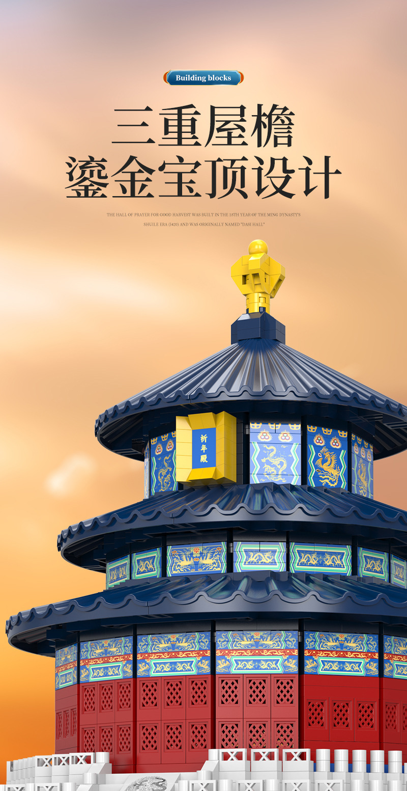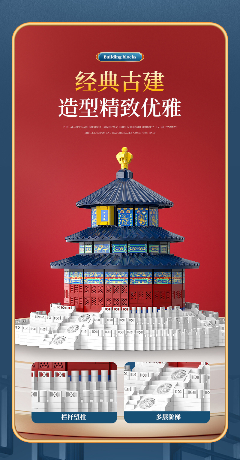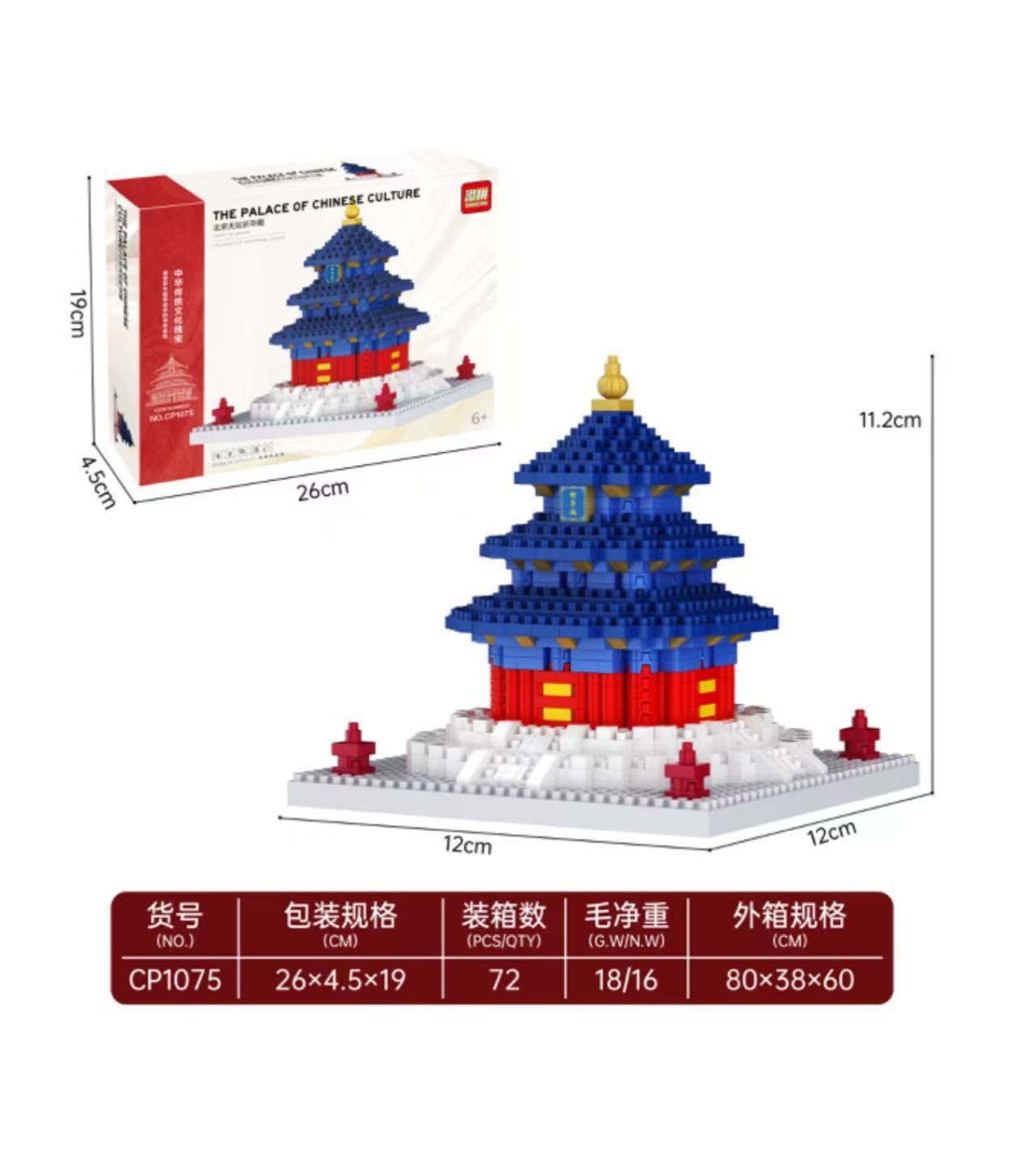 국가 조수 창조적 인 자금성 기념품 장식품 천국의 사원 기도 홀 작은 건물 블록 성인 억압 장난감 도매스토어 가기