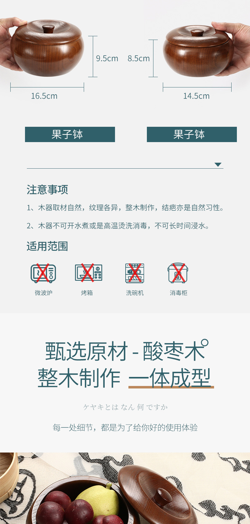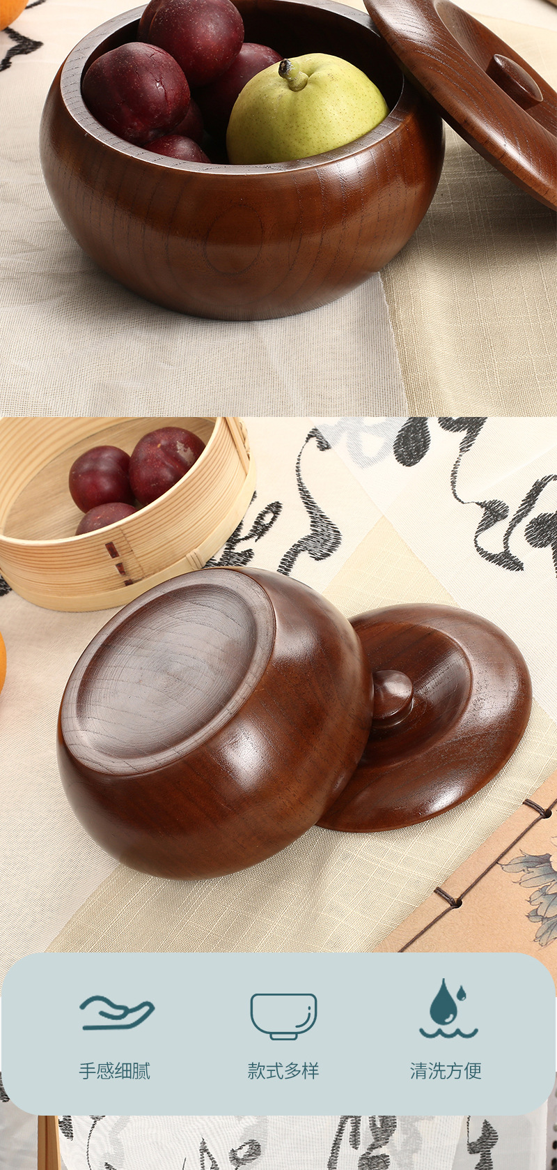 단단한 나무 원피스 성형 Ziziphus Spinosae 말린 과일 멜론 씨앗 두꺼운 레트로 고가치 식기 저장을위한 뚜껑이 달린 단단한 나무 과일 플레이트스토어 가기