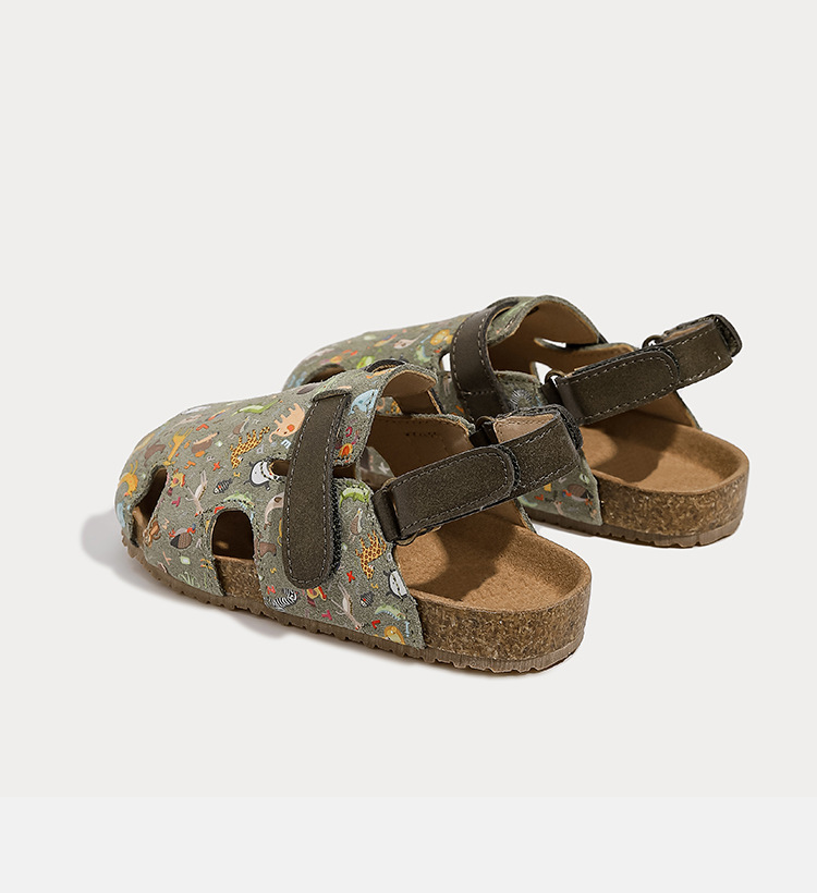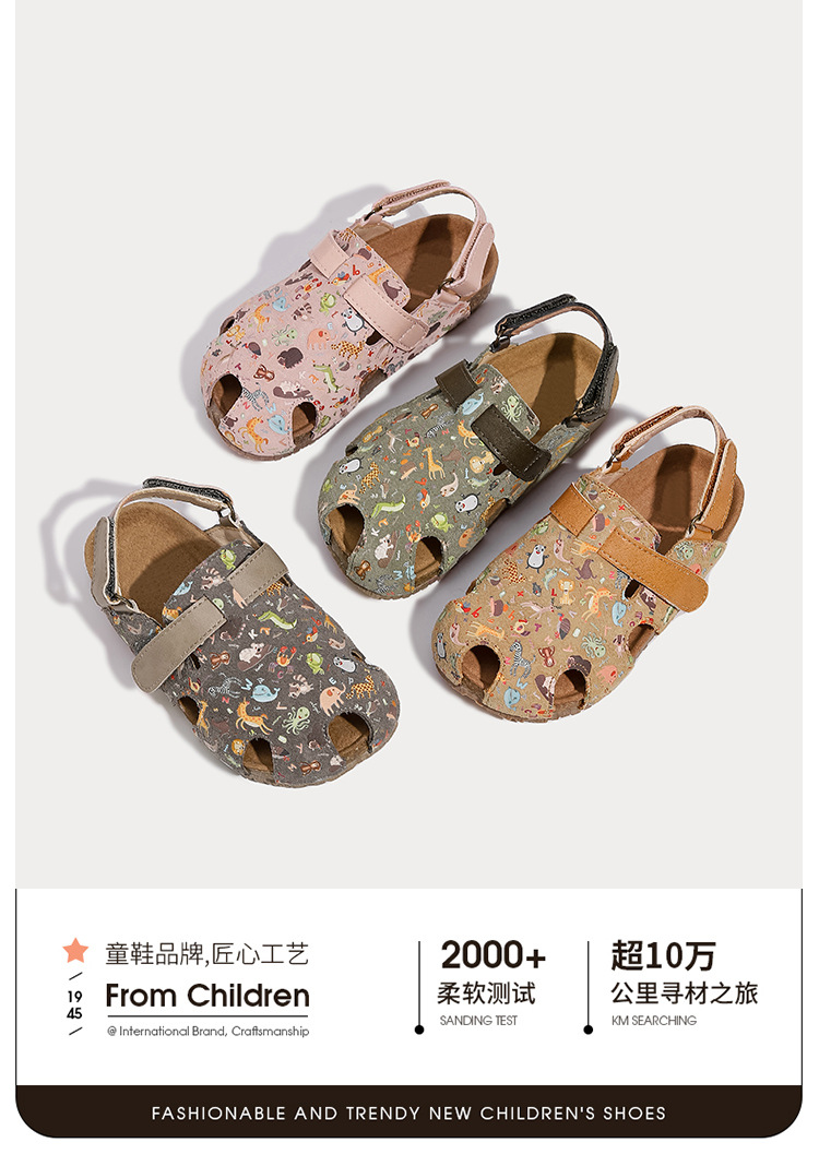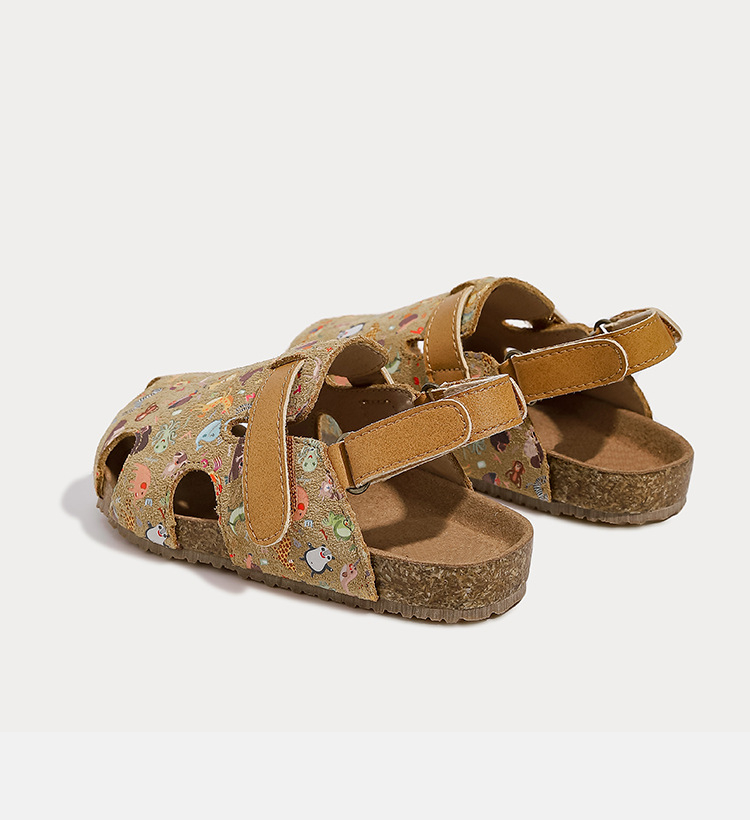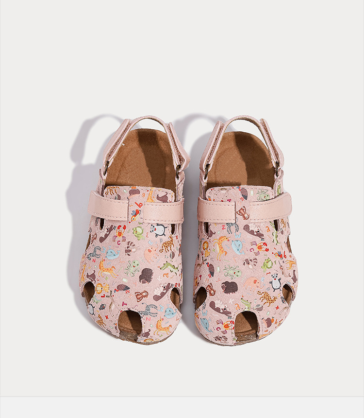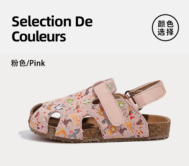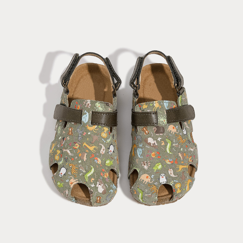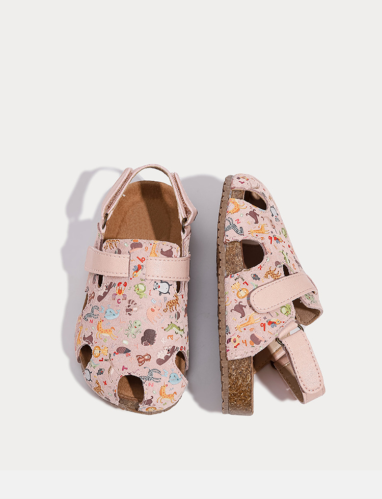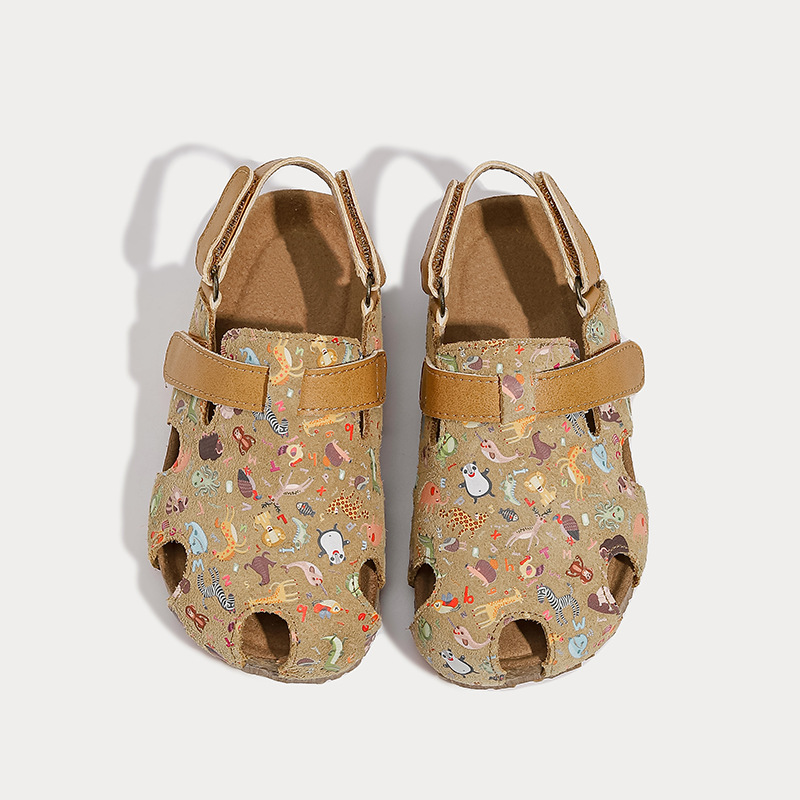 한국 정품 가죽 아기 샌들 소년 레트로 부드러운 바닥 버켄 네스 신발 만화 인쇄 소녀 비치 신발 여름 어린이 신발