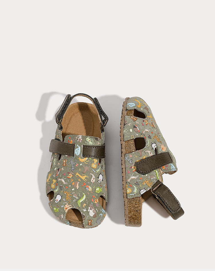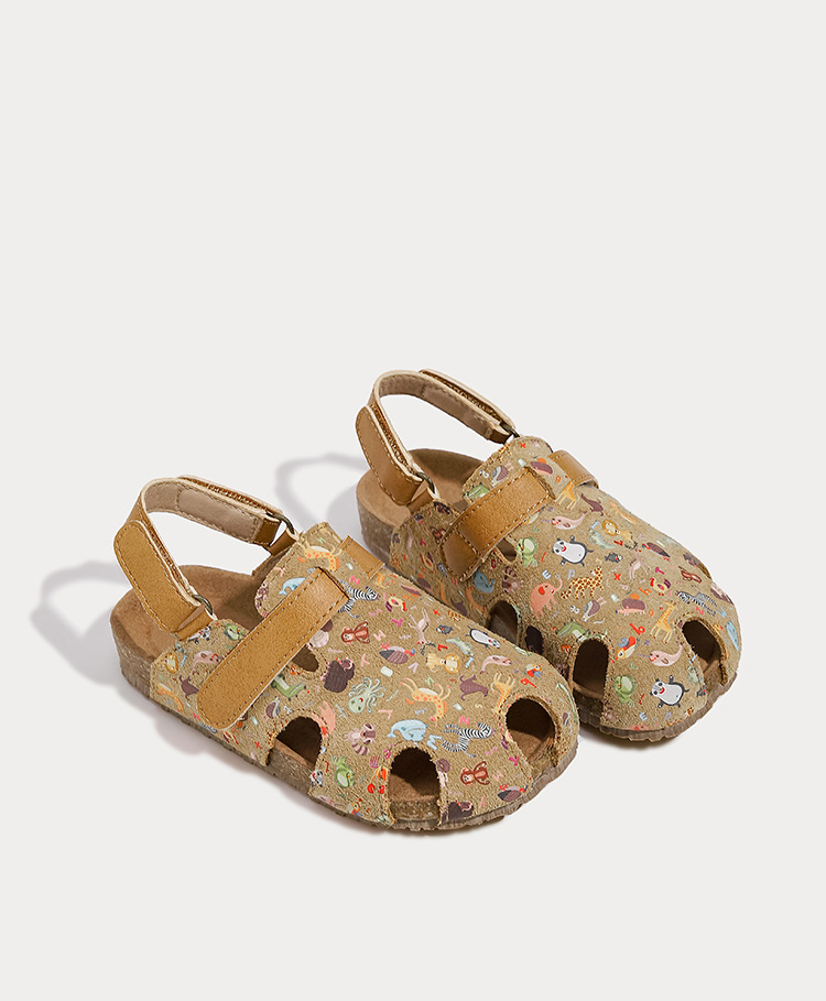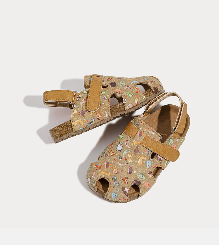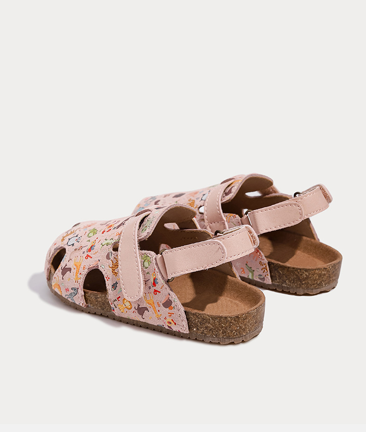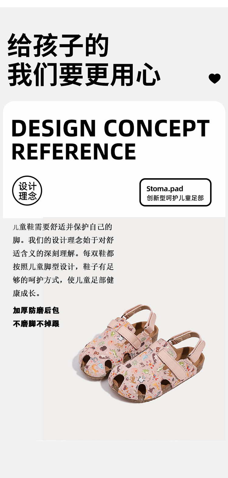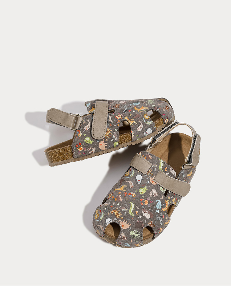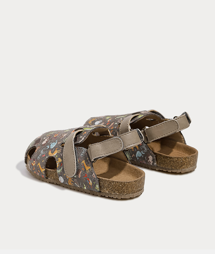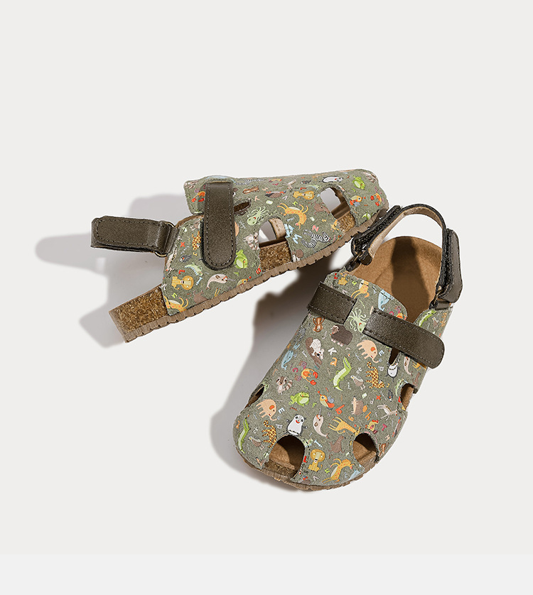 한국 정품 가죽 아기 샌들 소년 레트로 부드러운 바닥 버켄 네스 신발 만화 인쇄 소녀 비치 신발 여름 어린이 신발