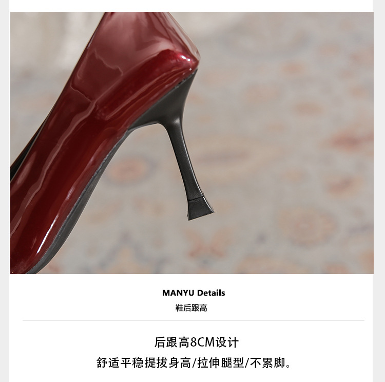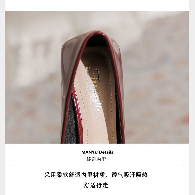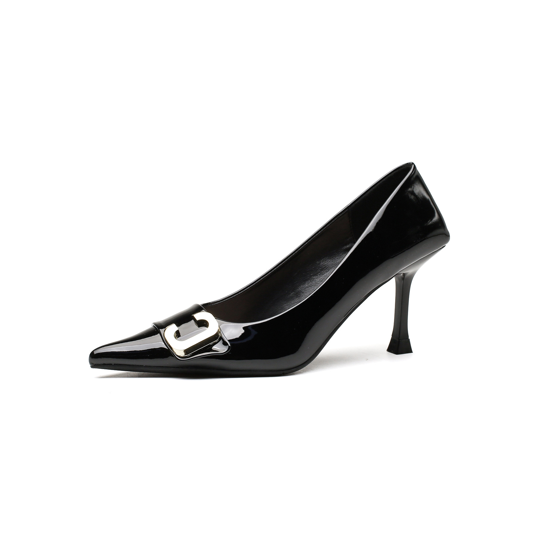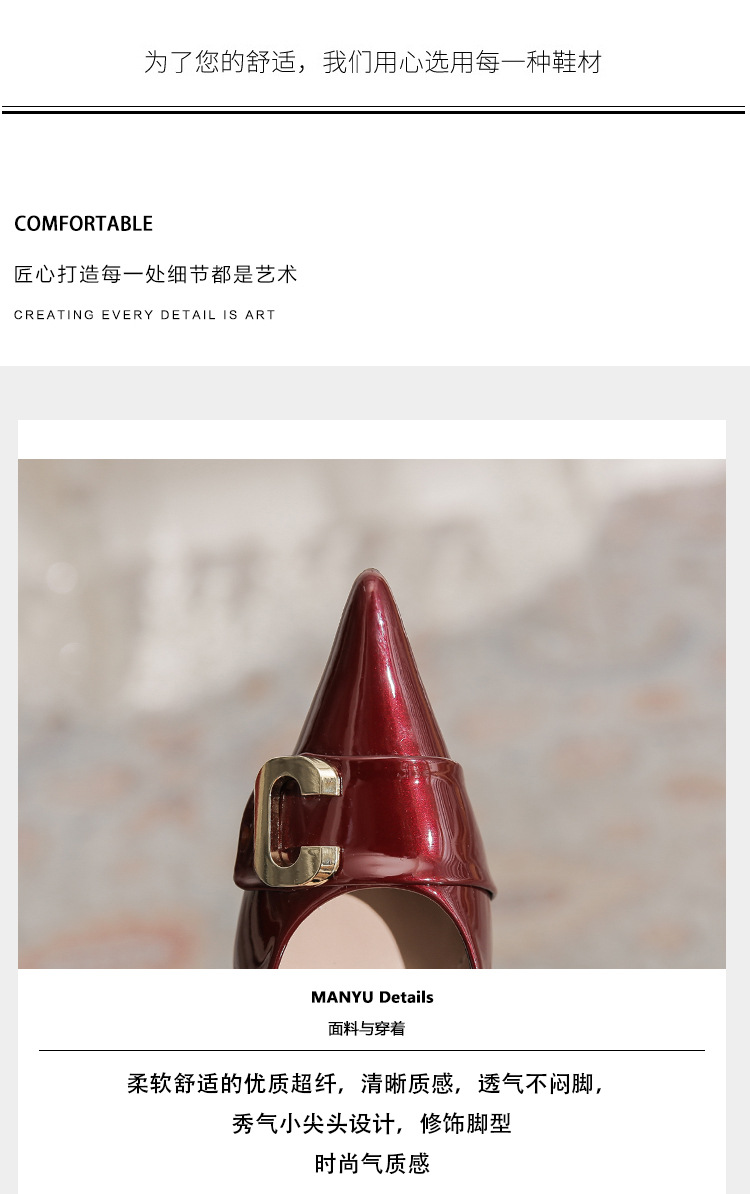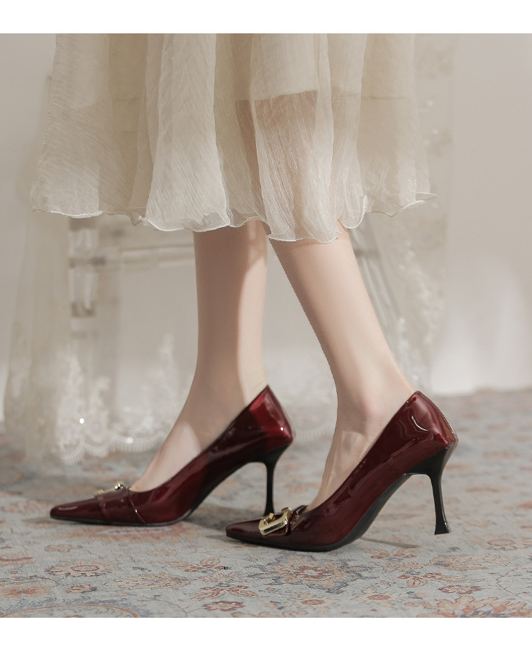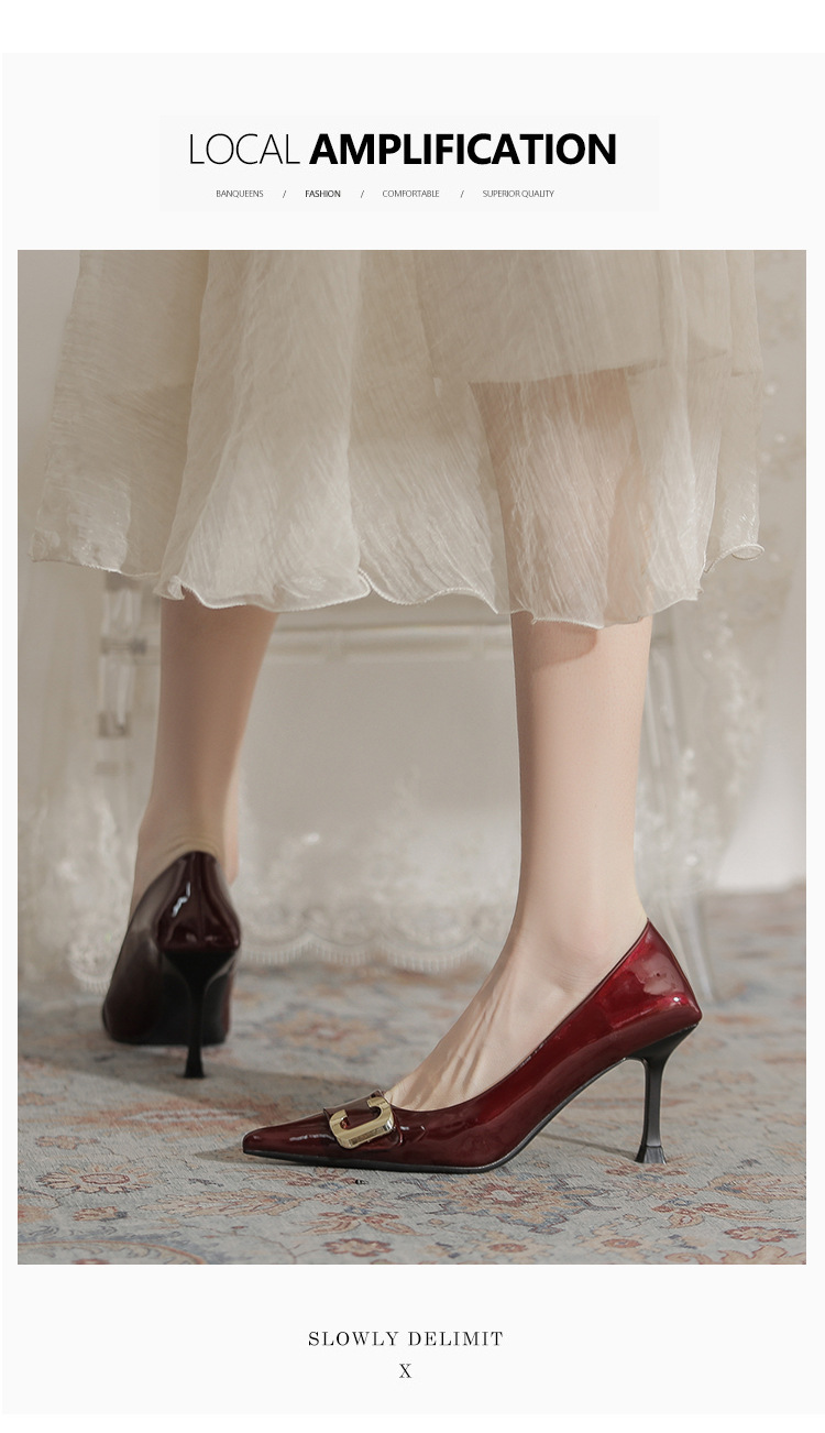 유럽풍 버클 장식 페이턴트 가죽 뾰족코 얇은 굽 하이힐 여성용 2024 여름 신상 메탈 버클 우아한 분위기의 얕은 굽 슈즈스토어 가기