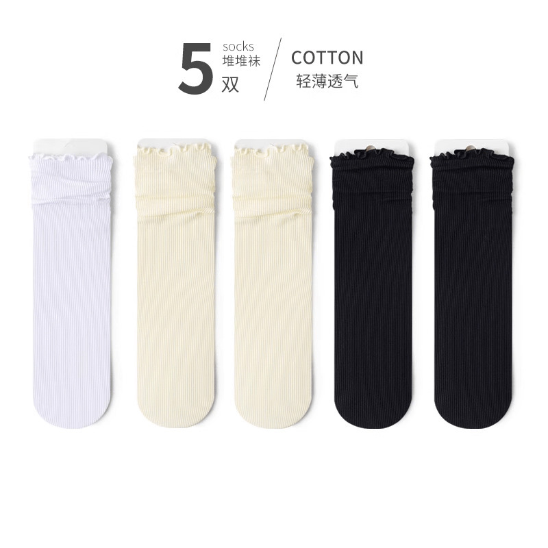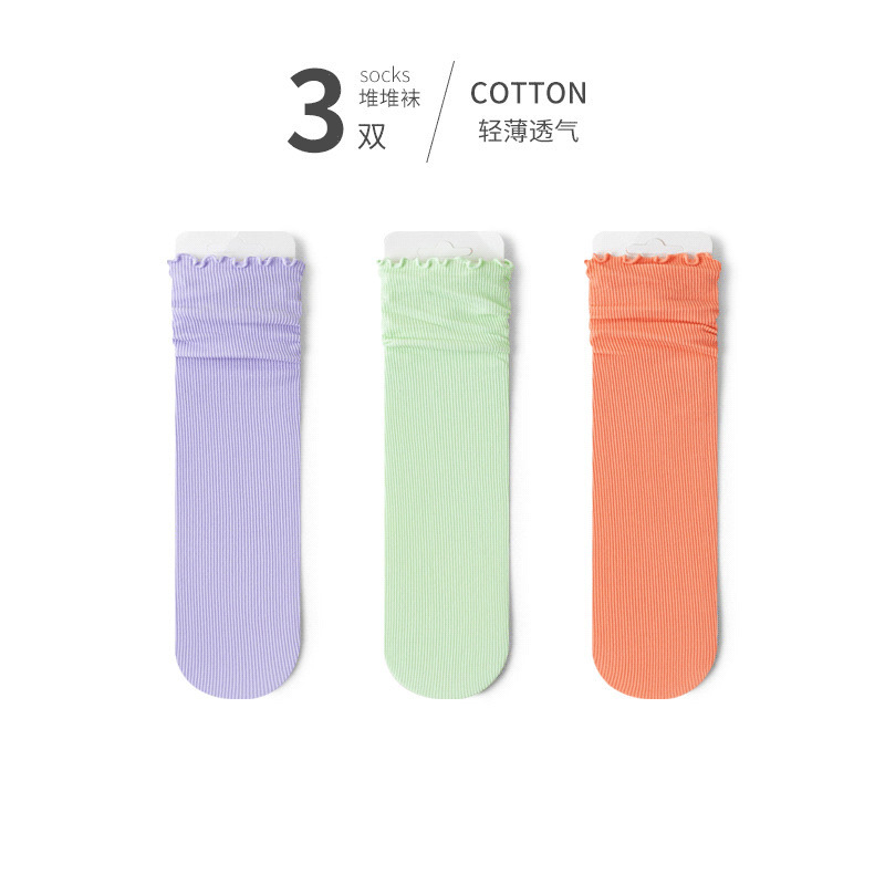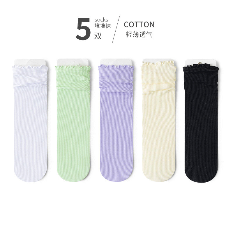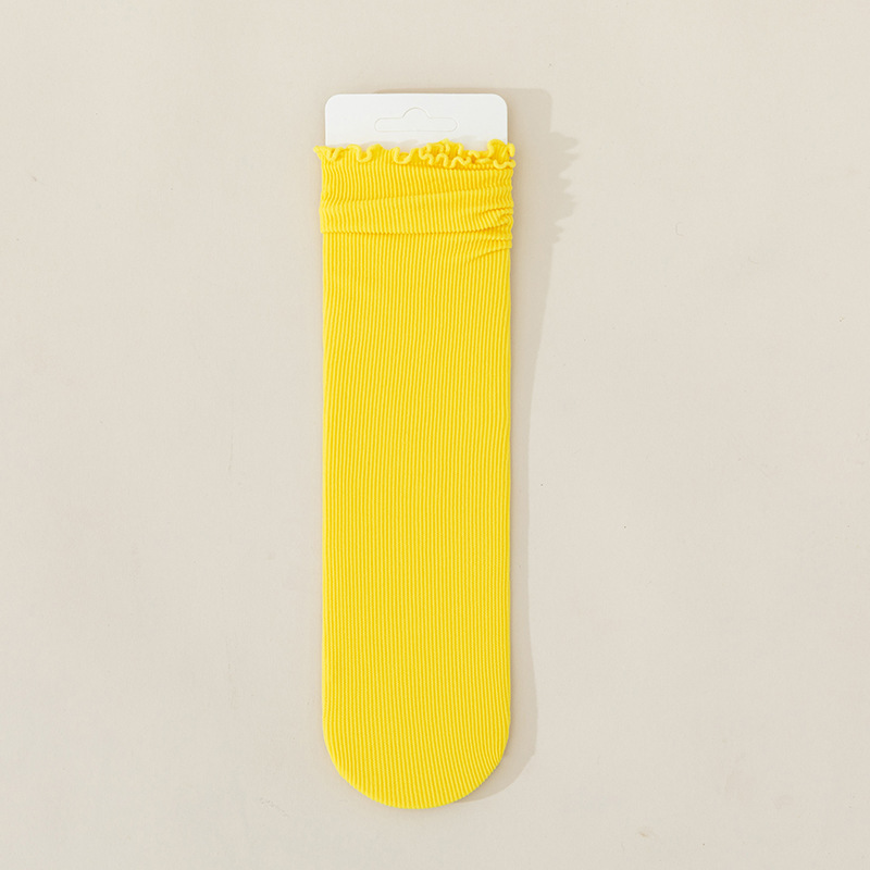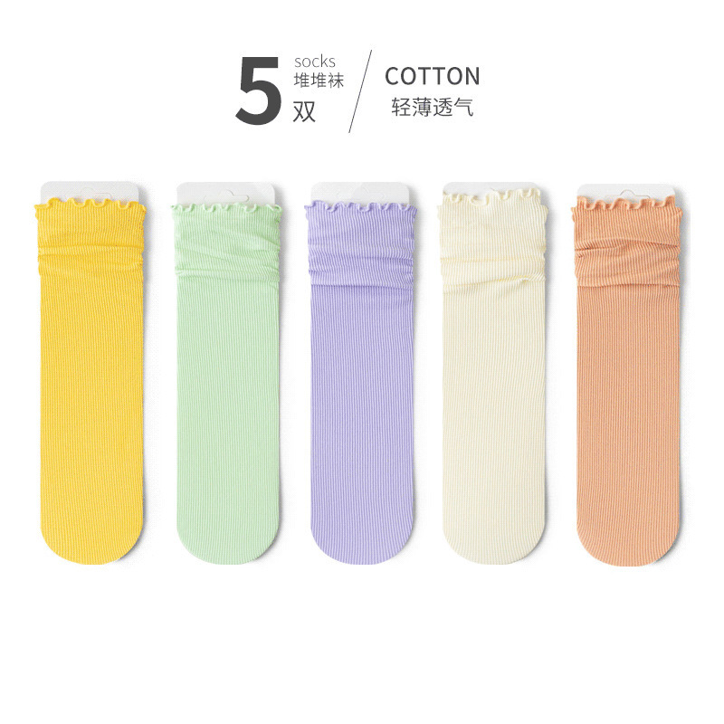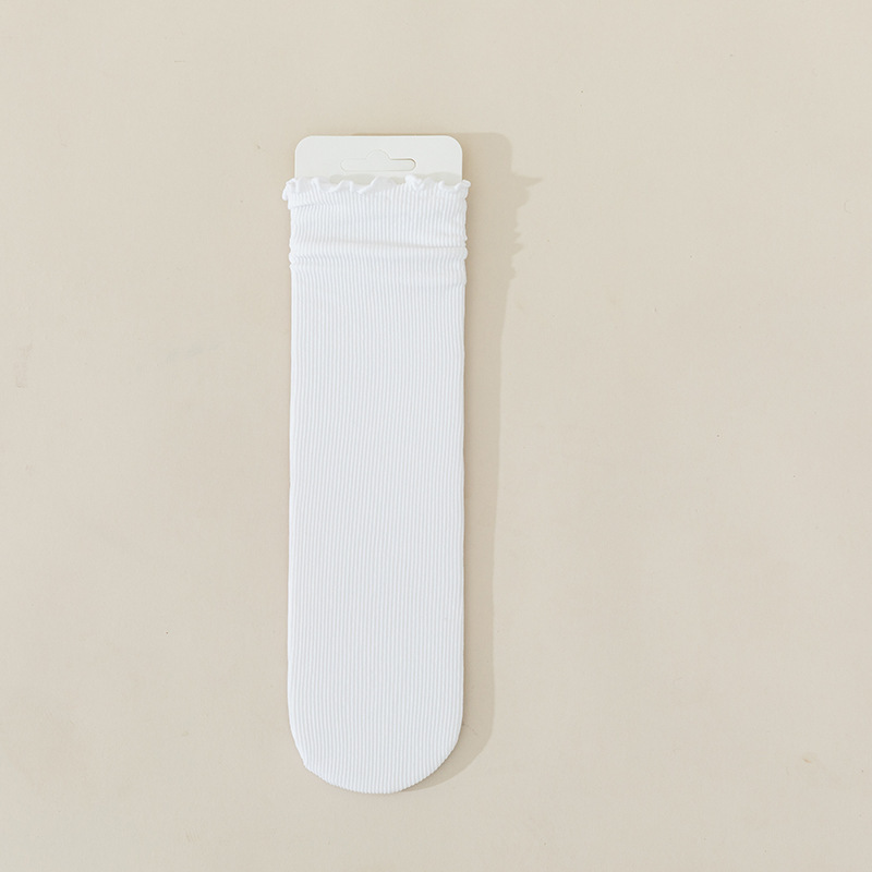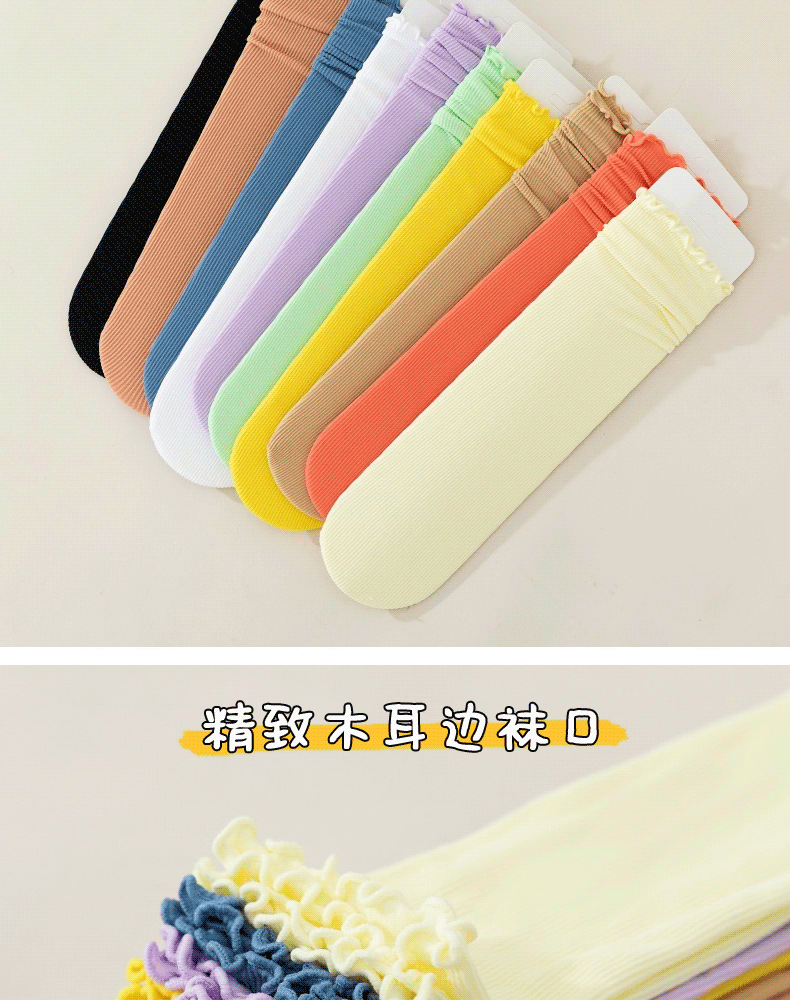 어린이 양말 얇은 여름 레이스 귀 가장자리 스태킹 양말 소녀 중간 길이 양말 아기 캔디 컬러 스타킹
