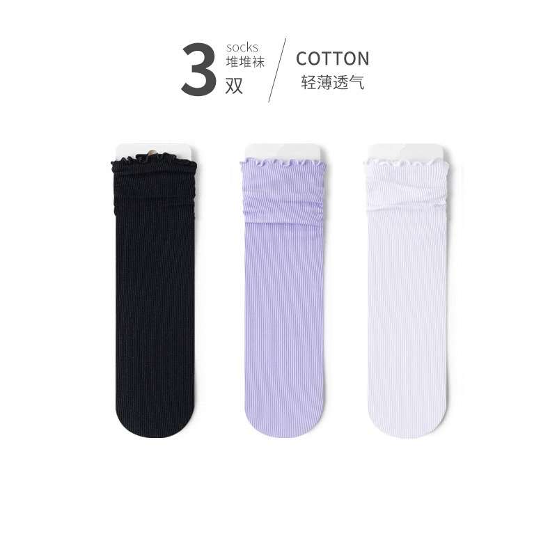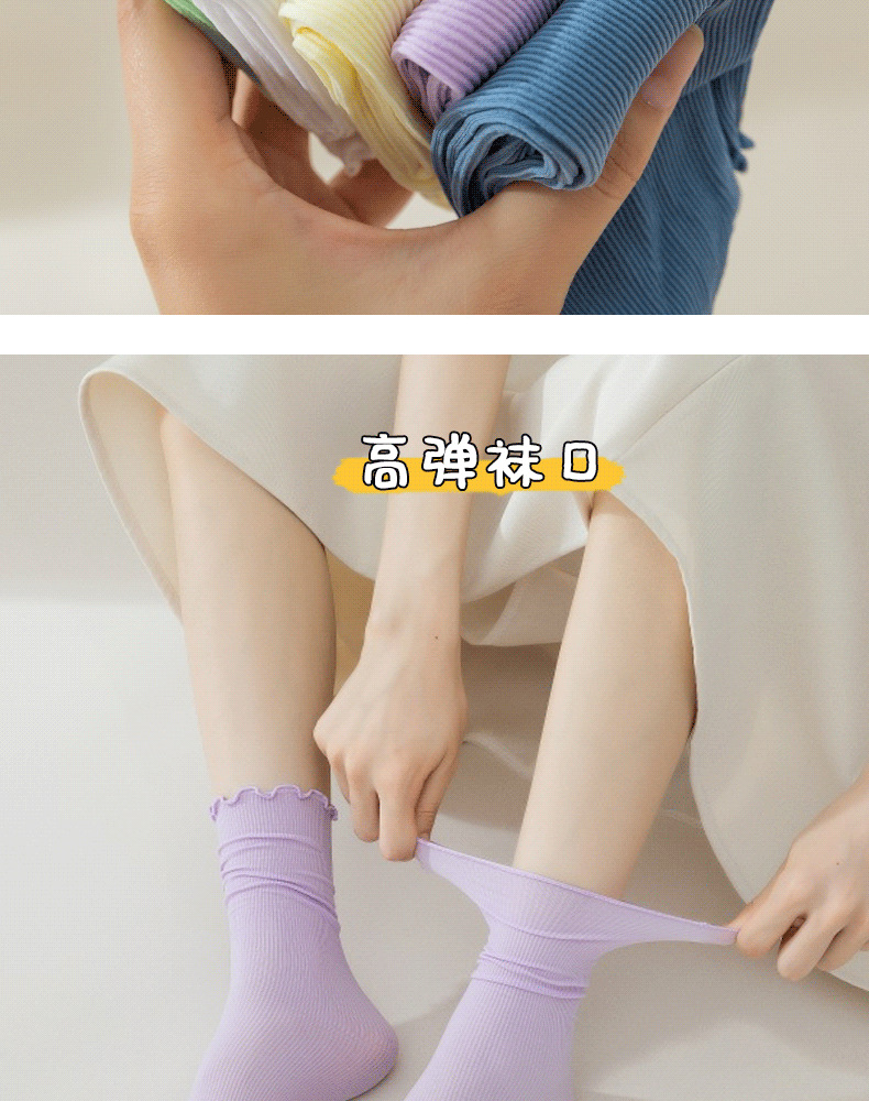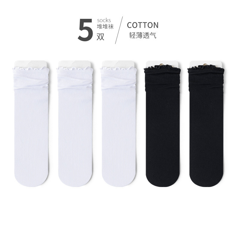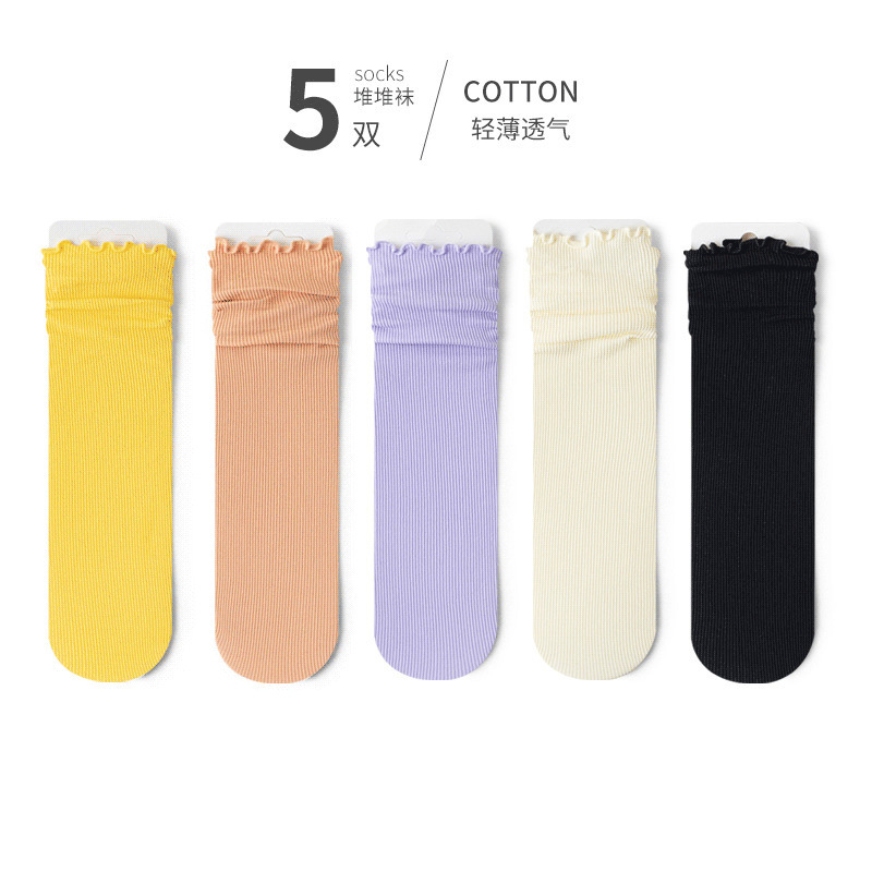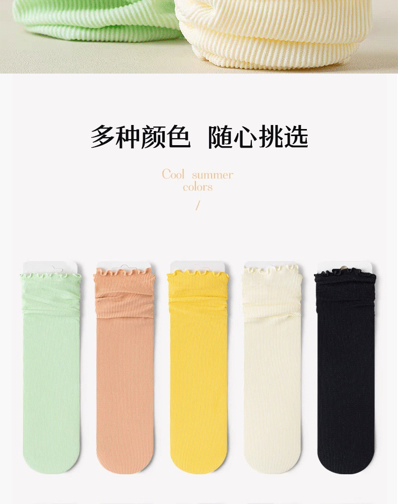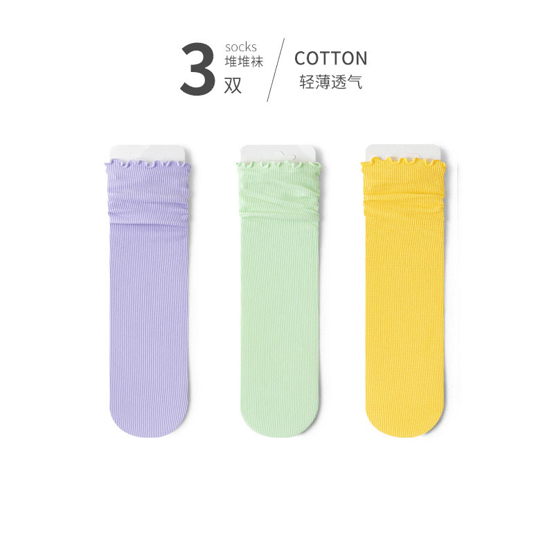 어린이 양말 얇은 여름 레이스 귀 가장자리 스태킹 양말 소녀 중간 길이 양말 아기 캔디 컬러 스타킹