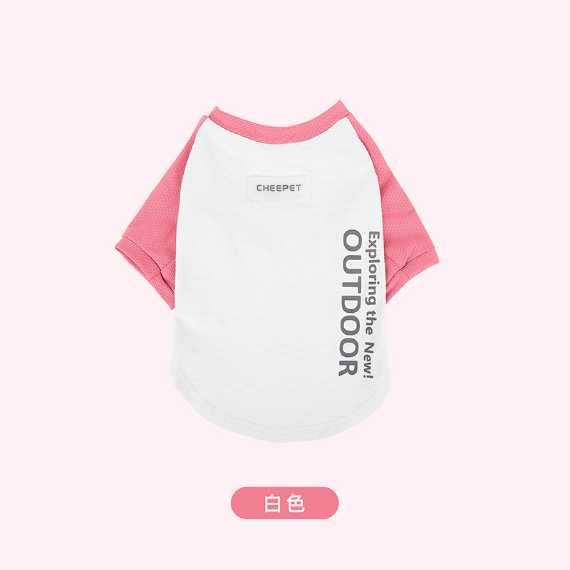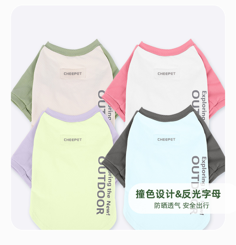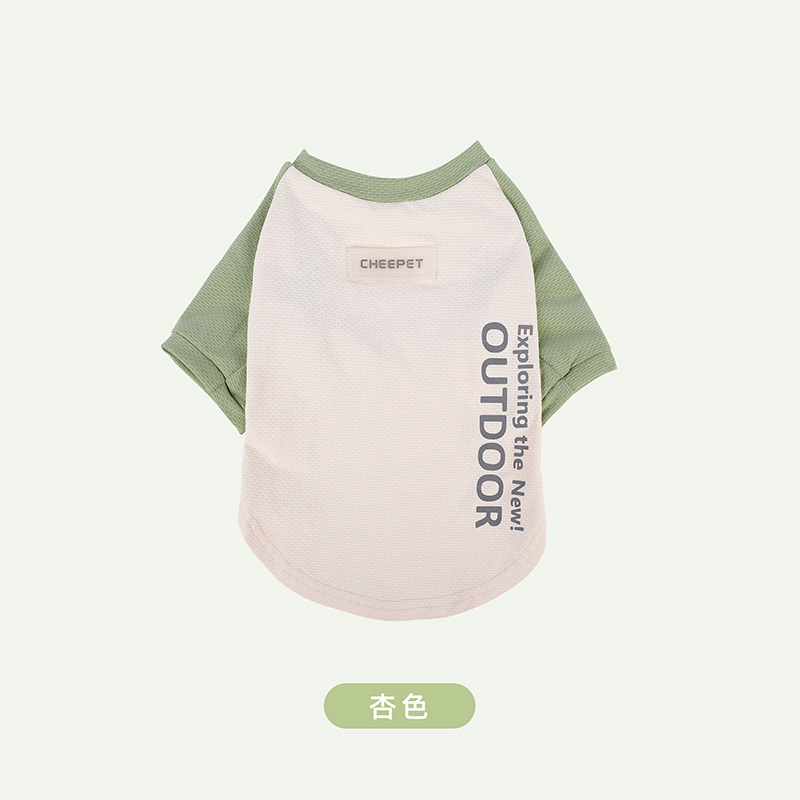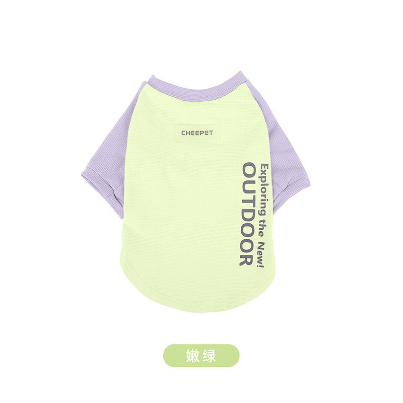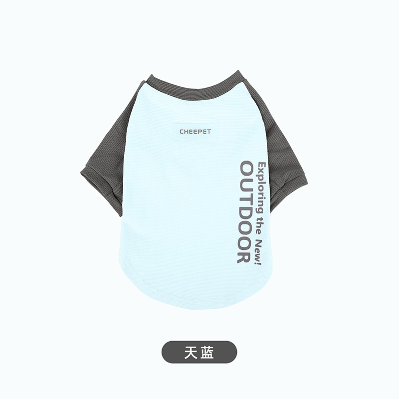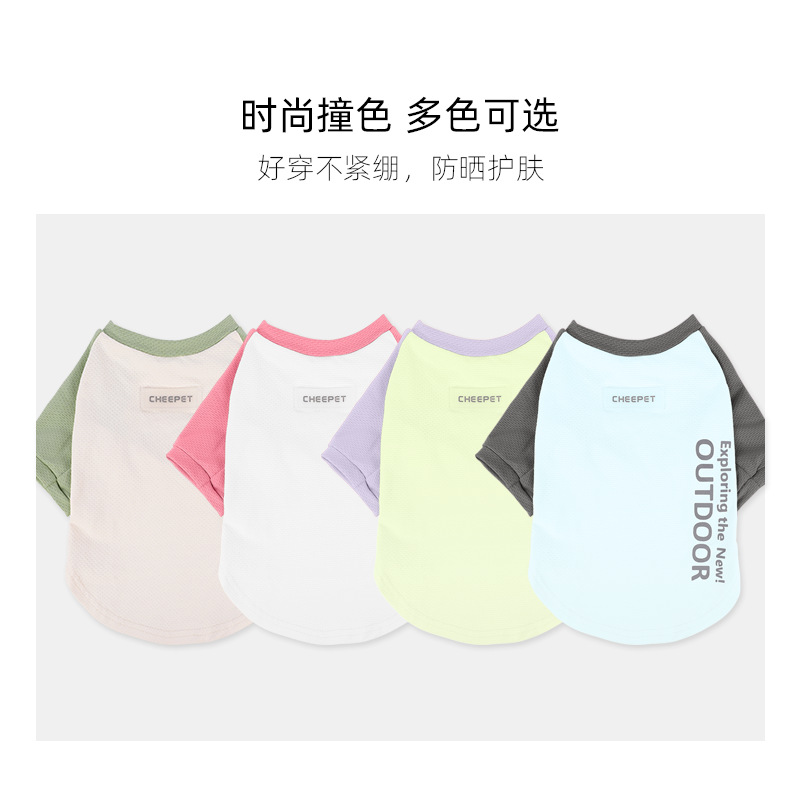 새로운 강아지 티셔츠 여름 대비 컬러 스티칭 두 다리 선 스크린 주년 테디 겉옷 개 보행 의류스토어 가기