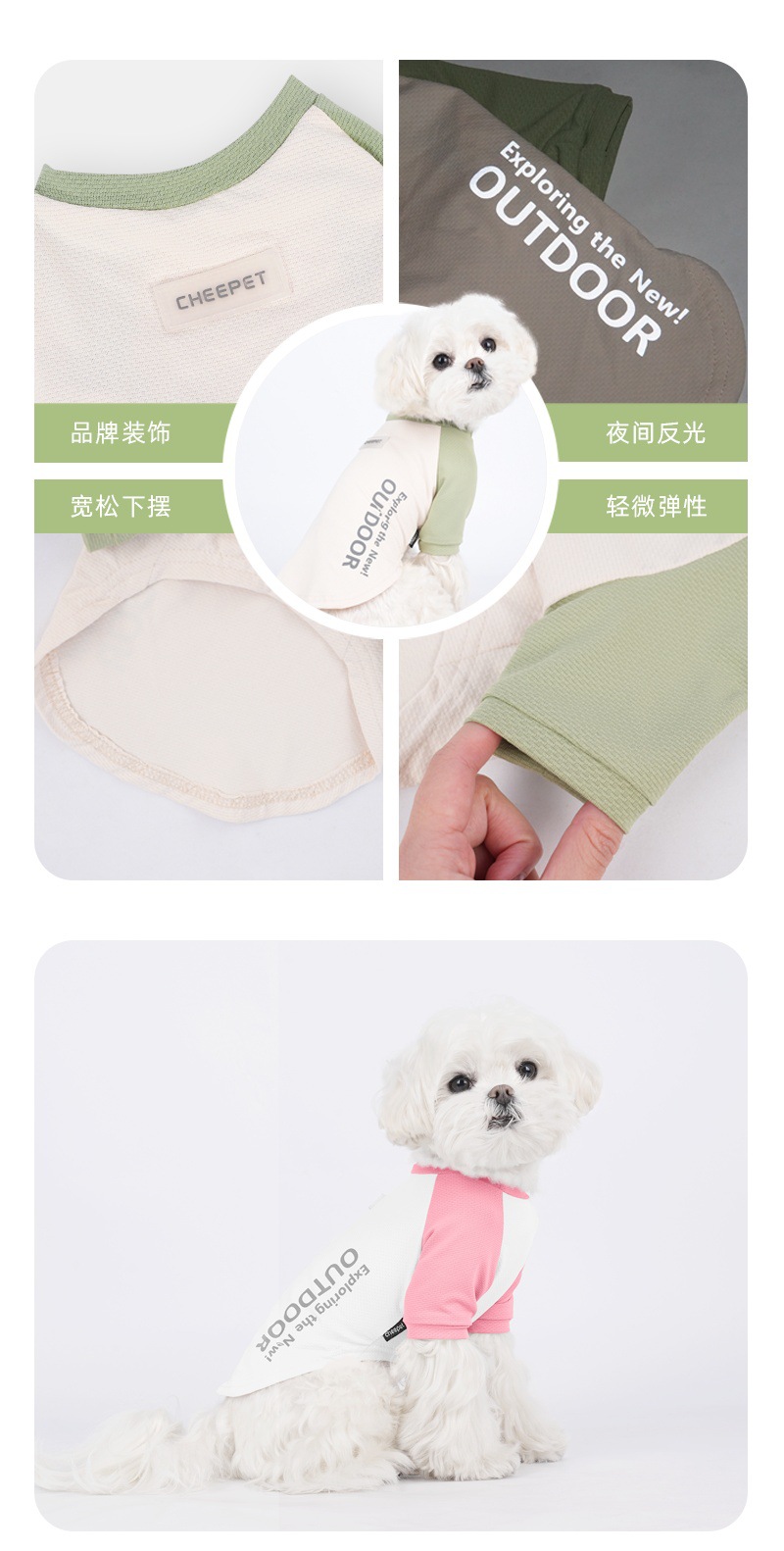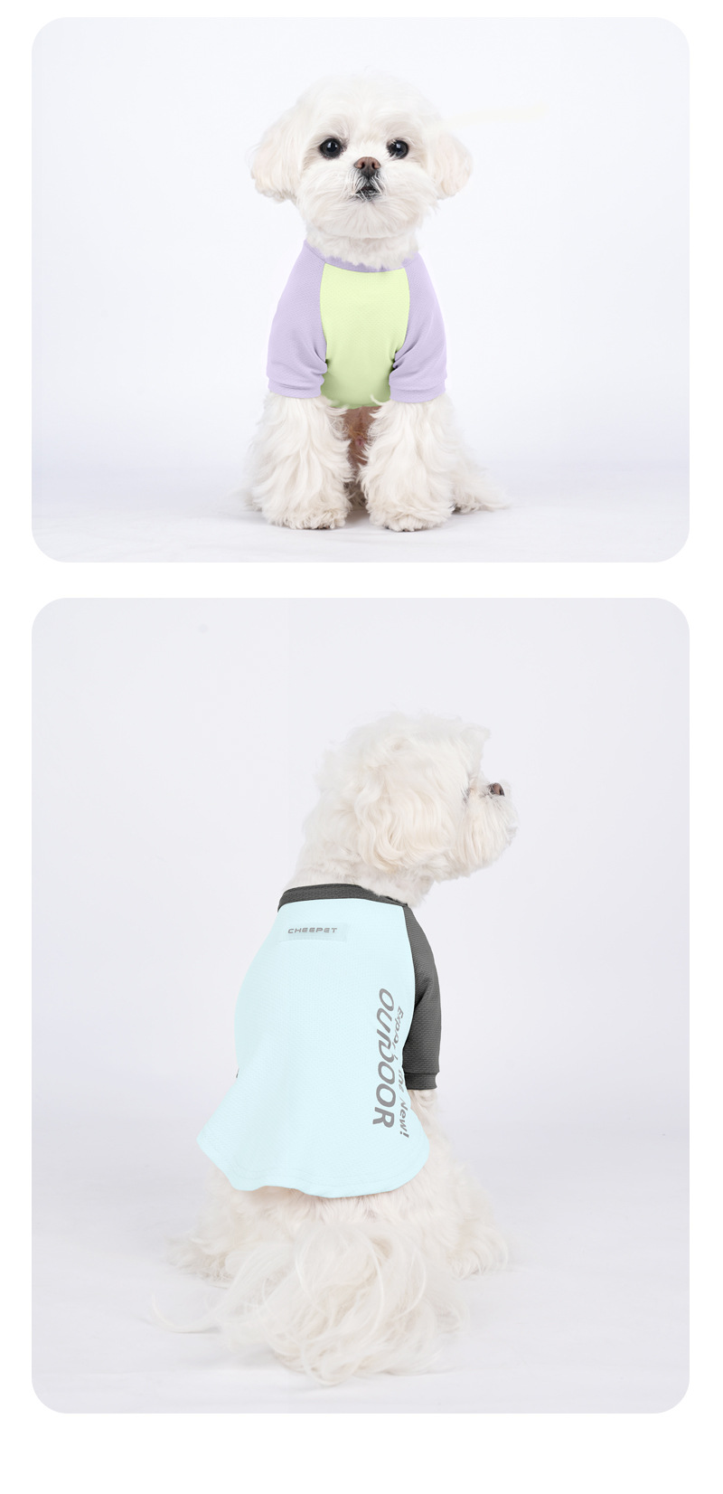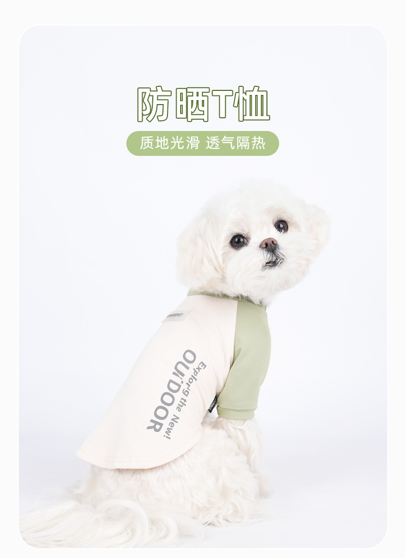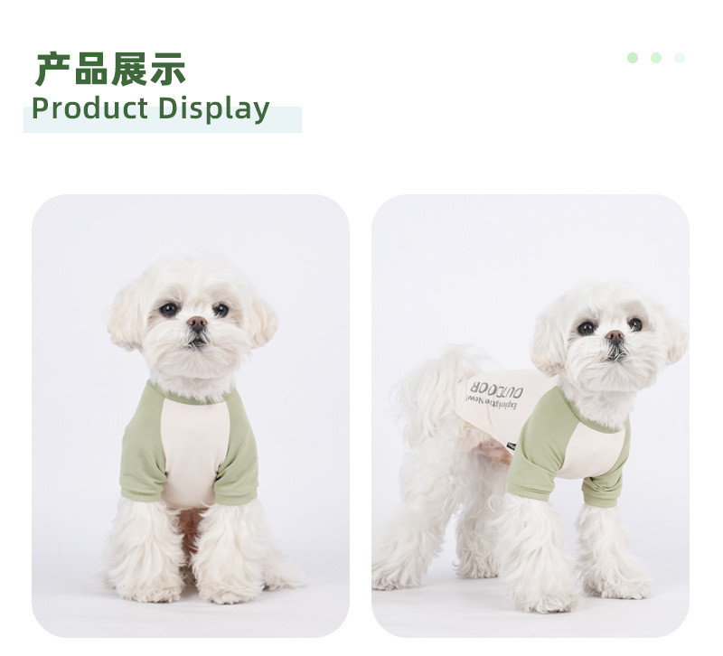 새로운 강아지 티셔츠 여름 대비 컬러 스티칭 두 다리 선 스크린 주년 테디 겉옷 개 보행 의류스토어 가기