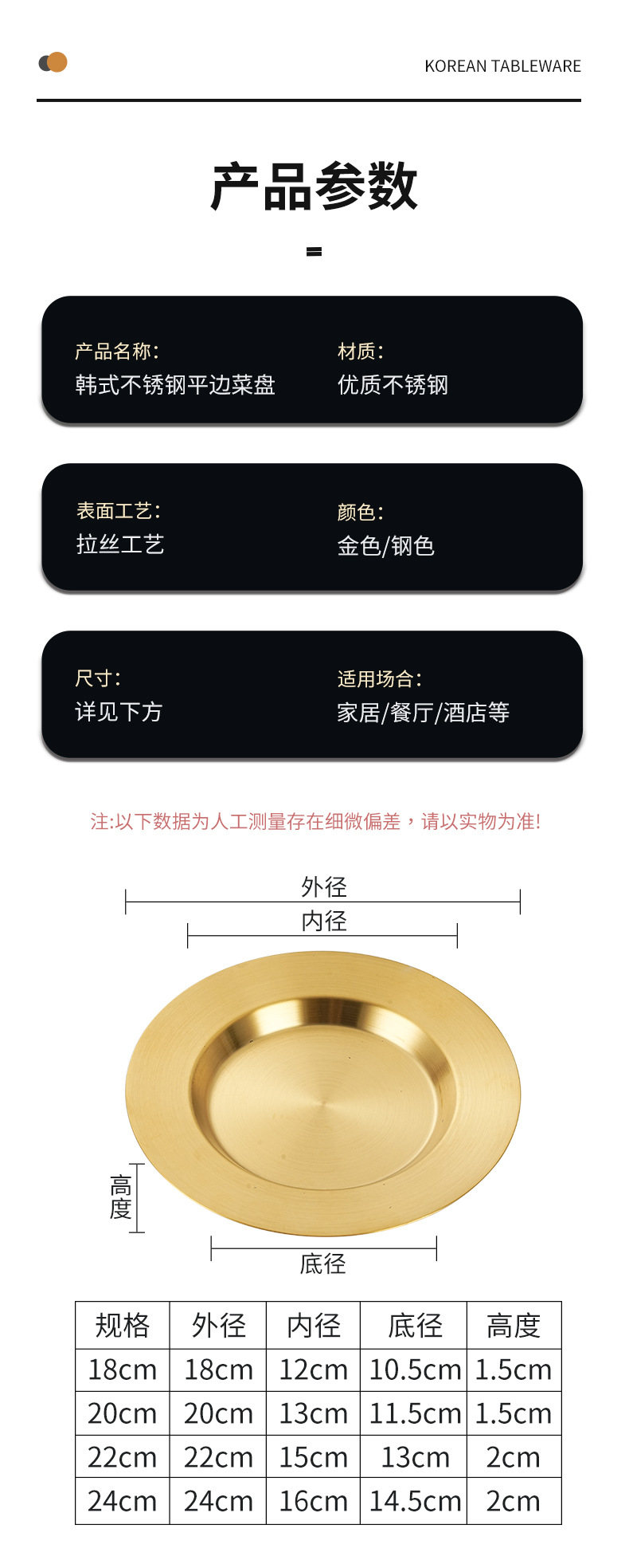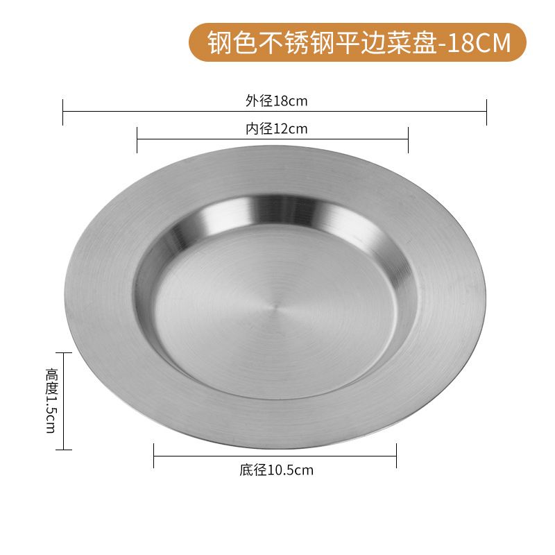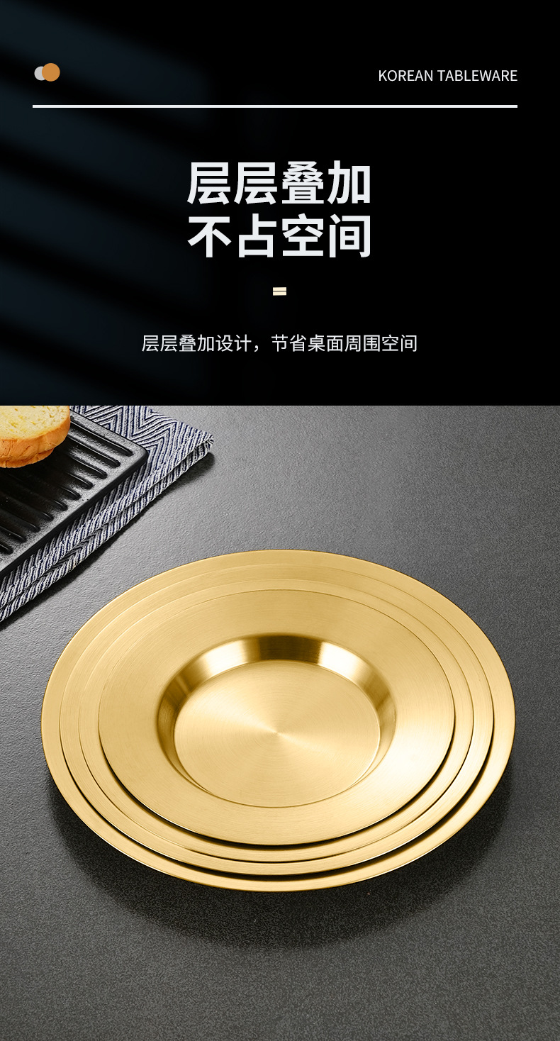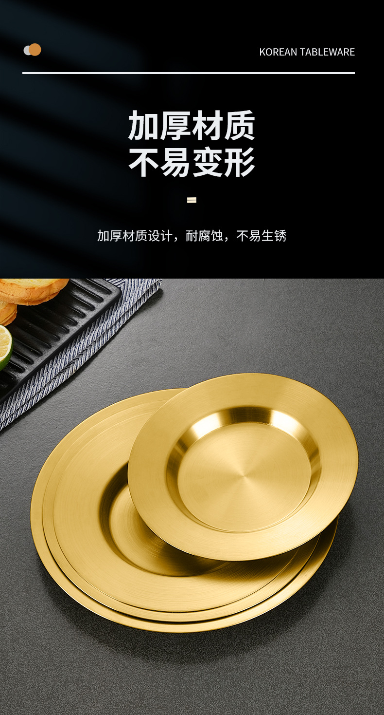 일본식 스테인레스 스틸 디스크 가정용 평평한 바닥 얕은 접시 샐러드 스낵 플레이트 골든 한국식 바베큐 플레이트 서양식 요리스토어 가기