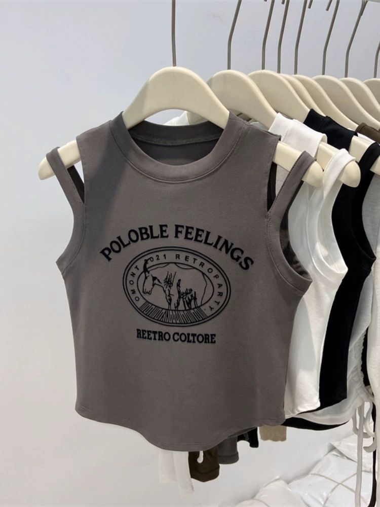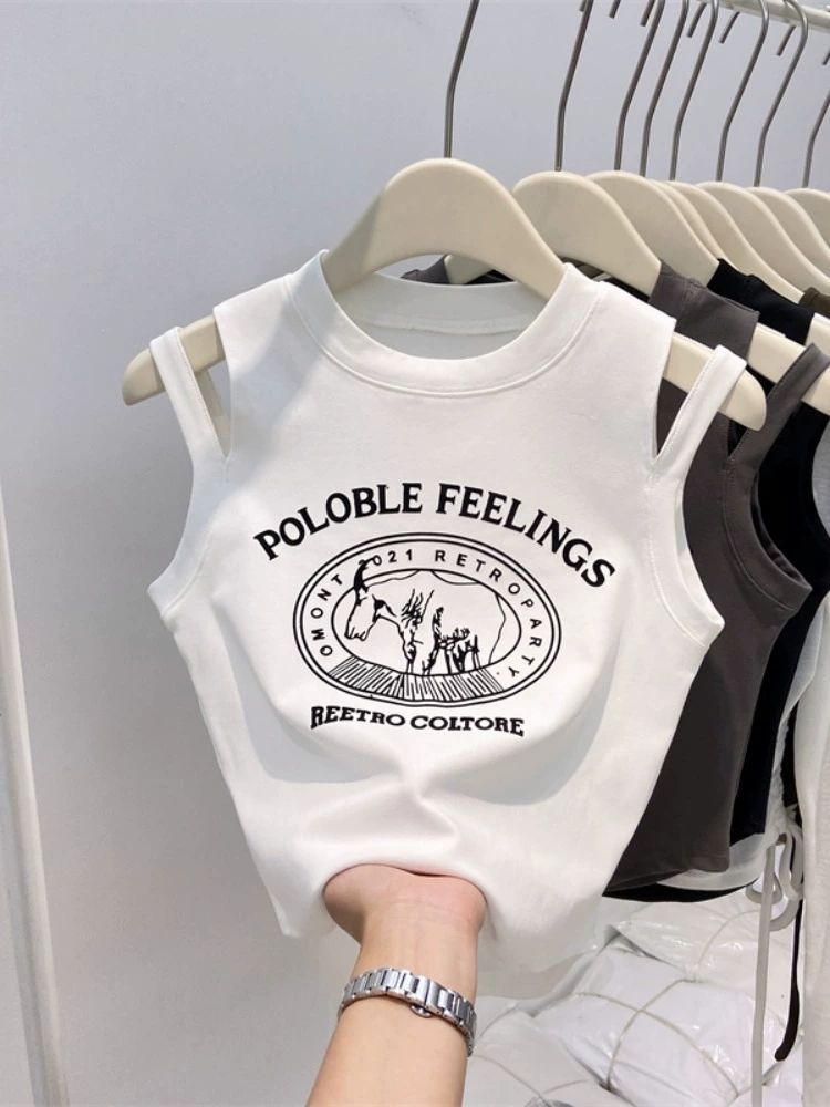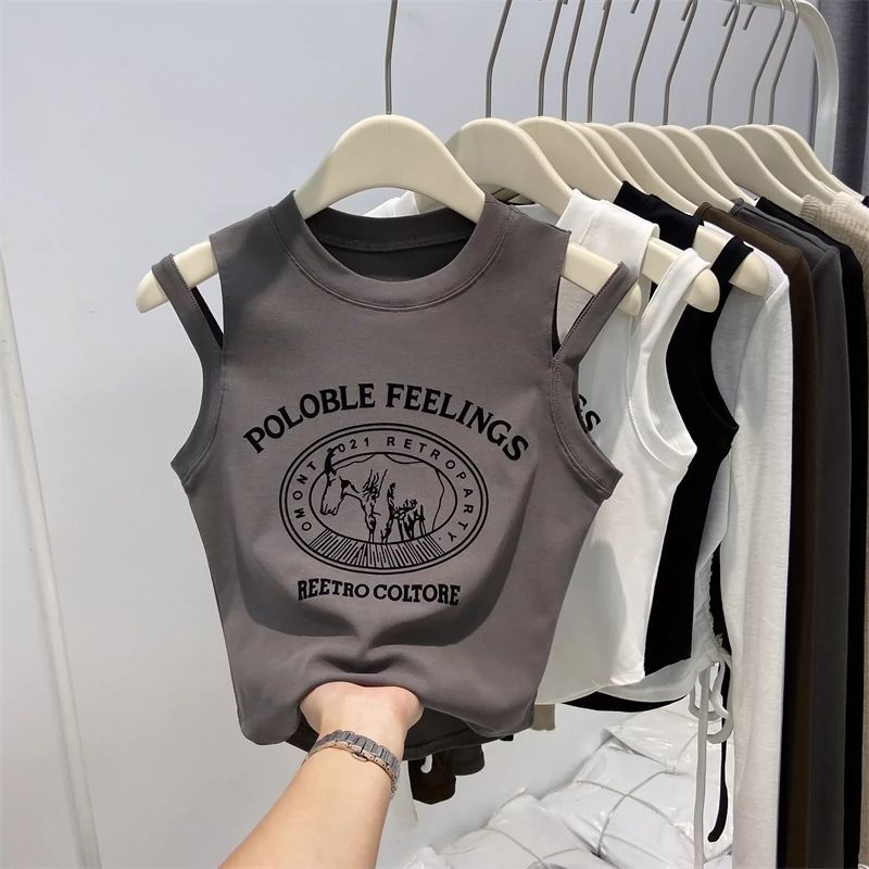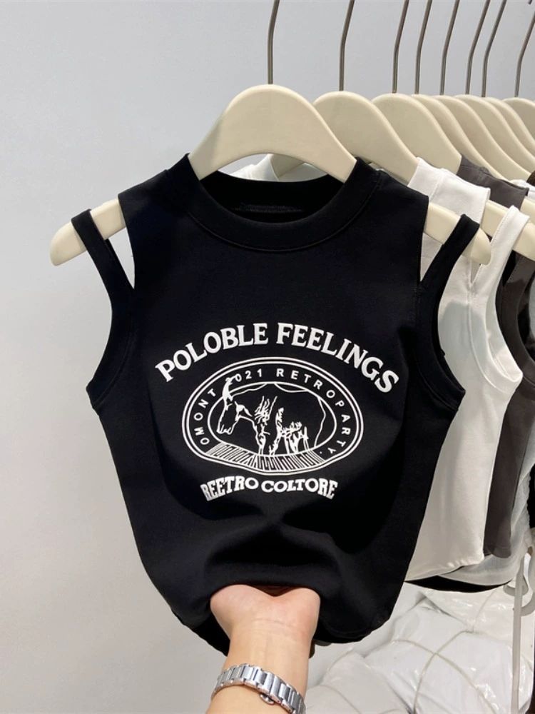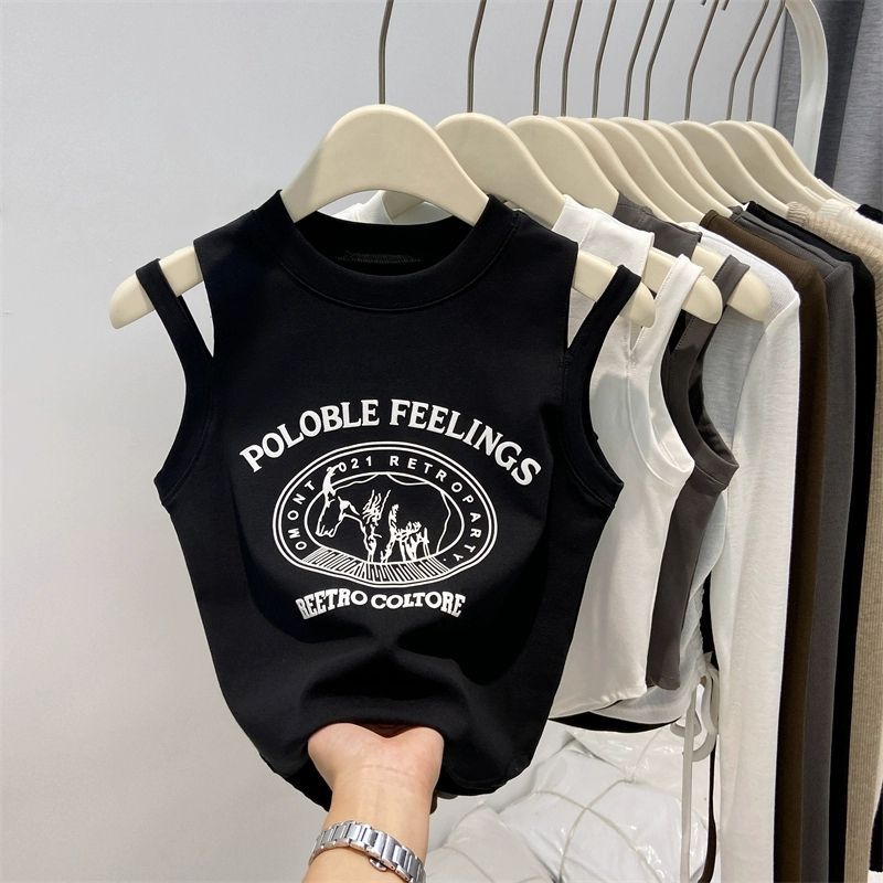 소녀 짧은 조끼 여름 새로운 서양식 외부 착용 어린이 만화 인쇄 아기 민소매 최고 0096A006스토어 가기