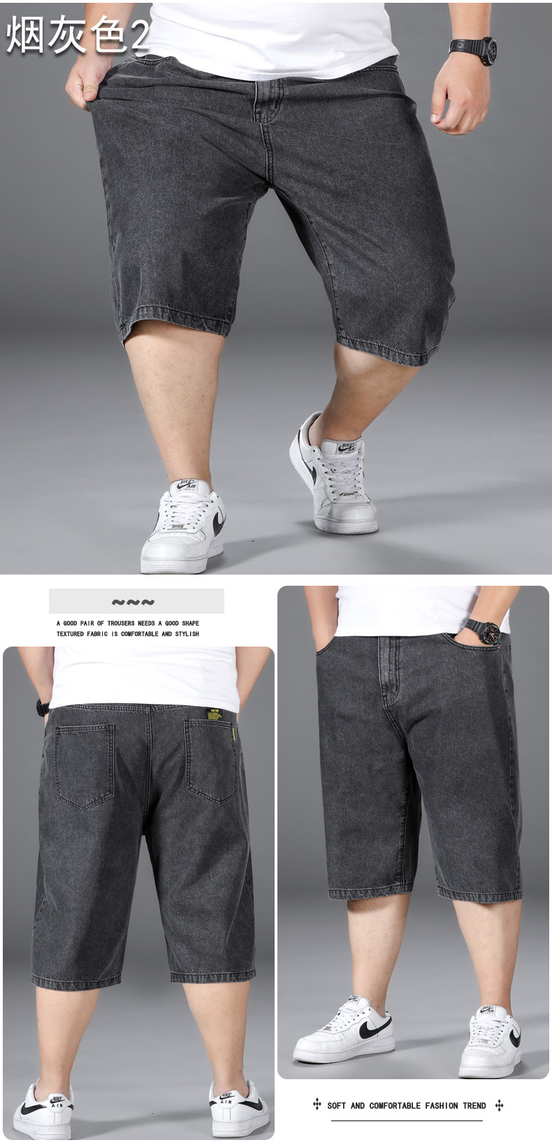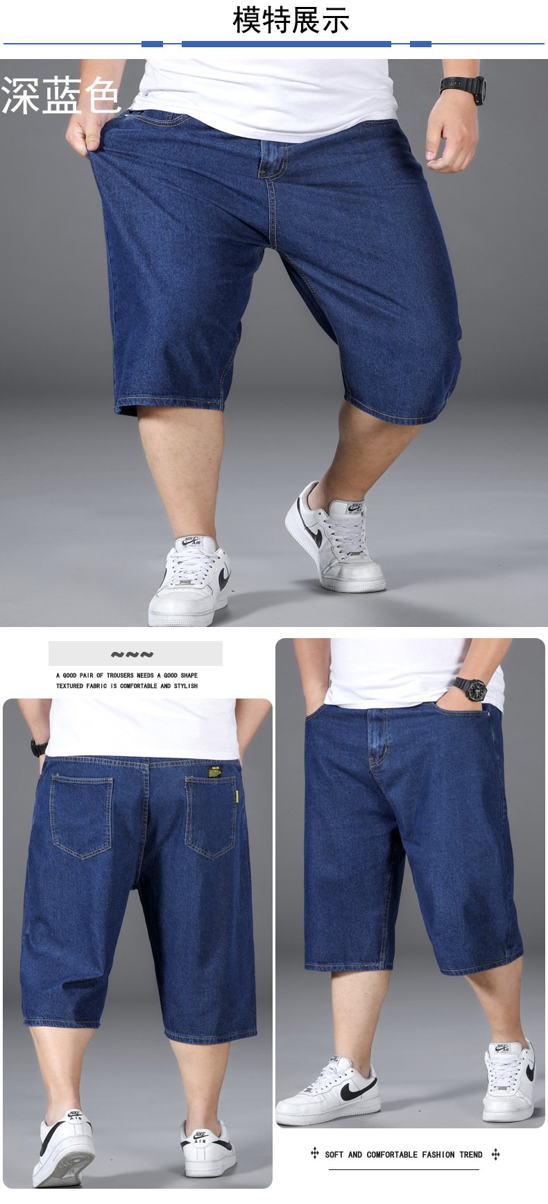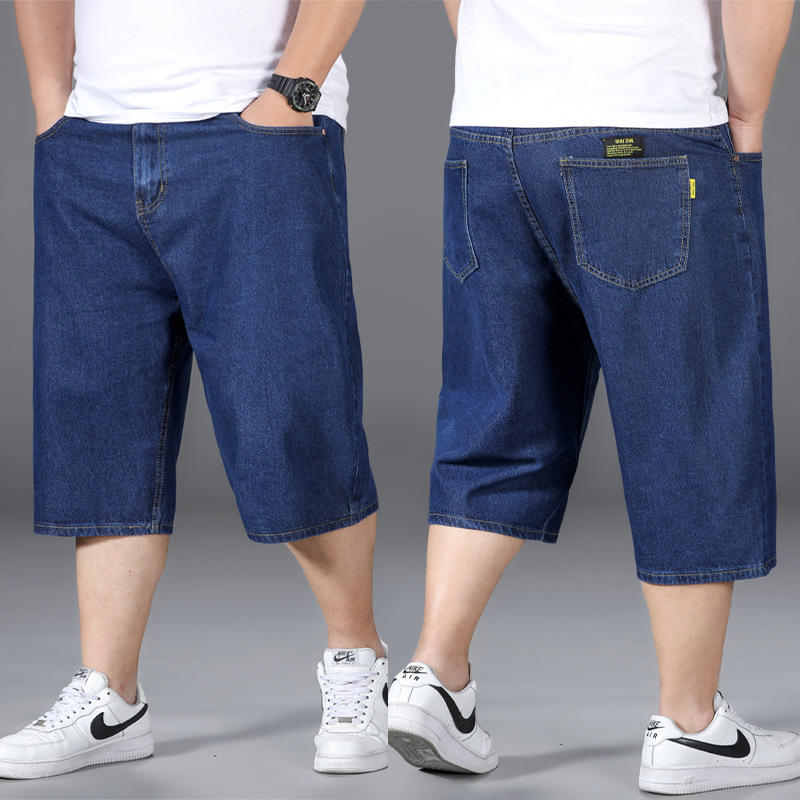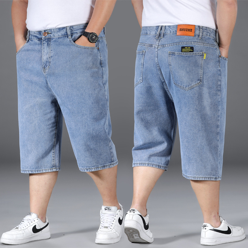 플러스 사이즈 데님 반바지 남성용 얇은 느슨한 스트레이트 캐주얼 파이트 맨 파이브 포인트 플러스 사이즈 팬츠스토어 가기