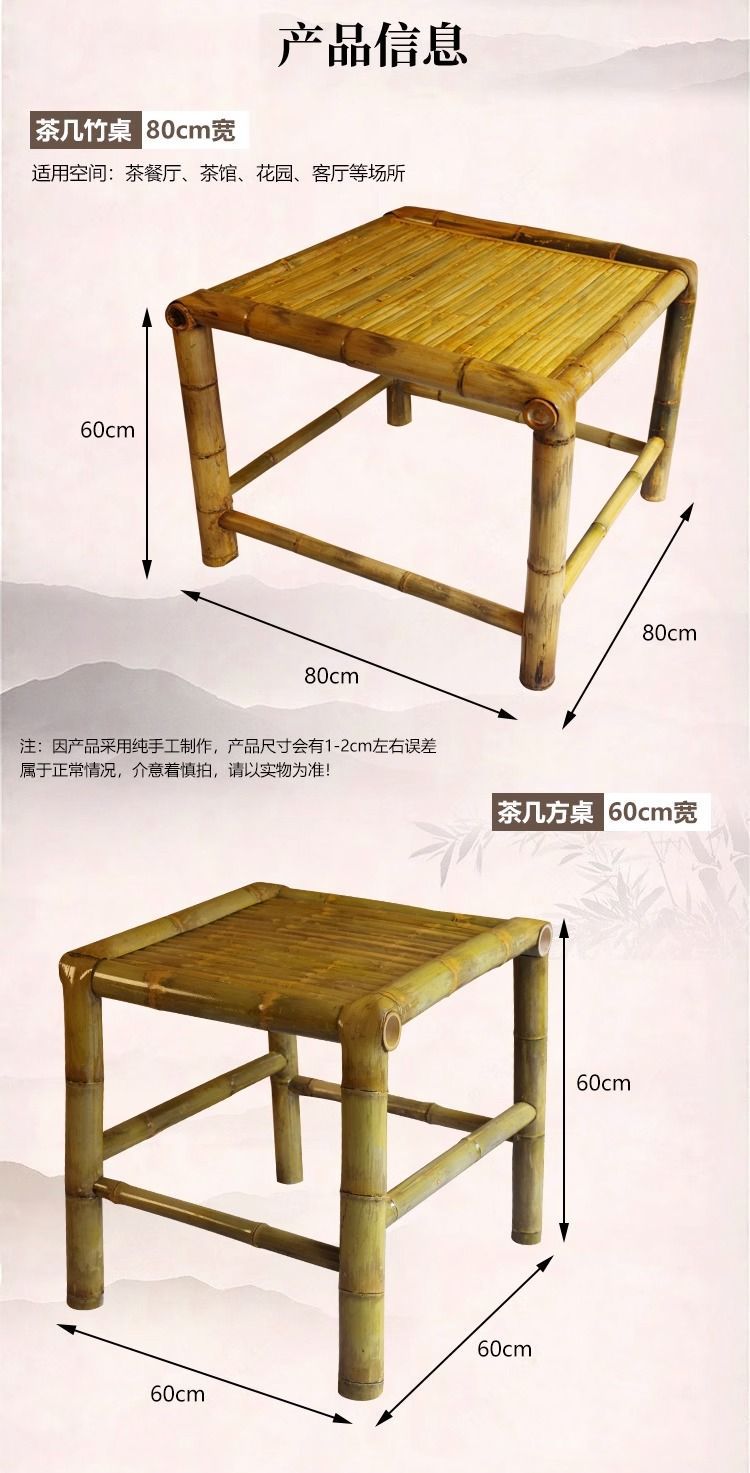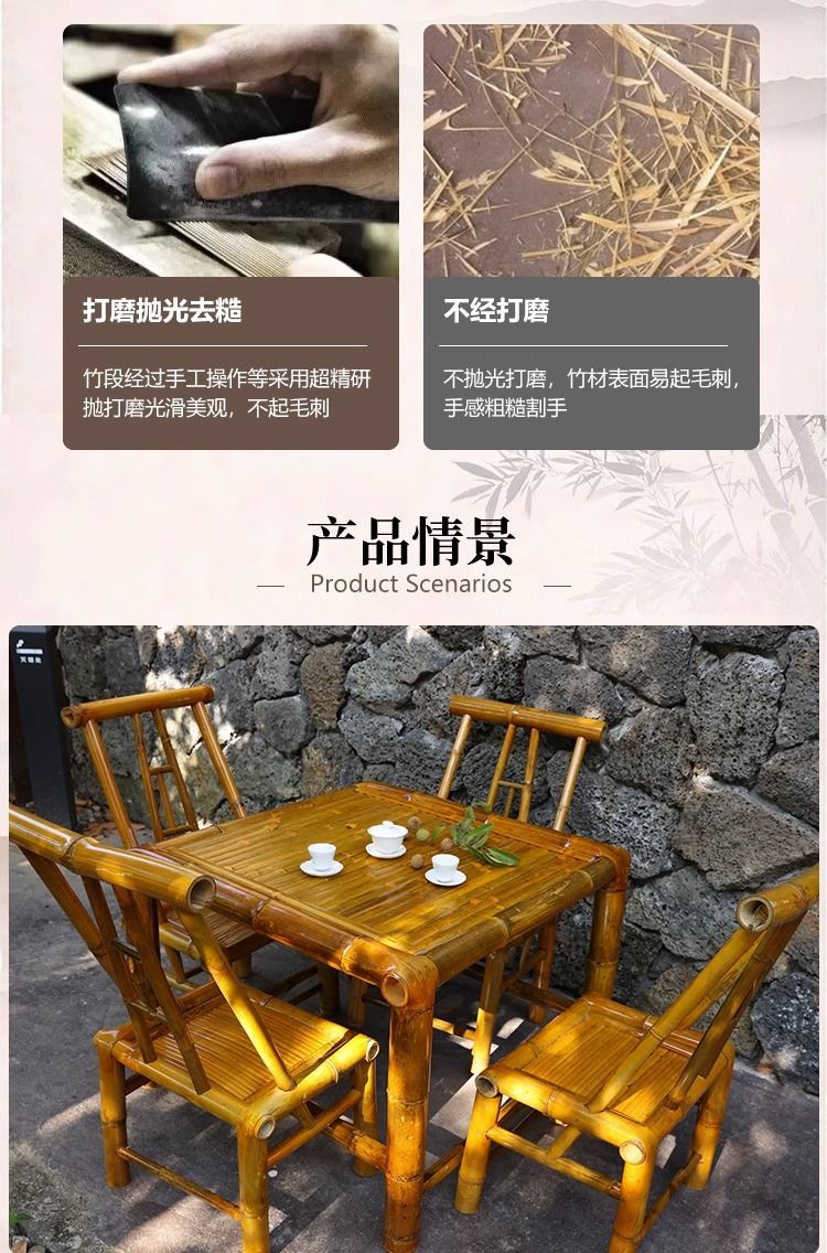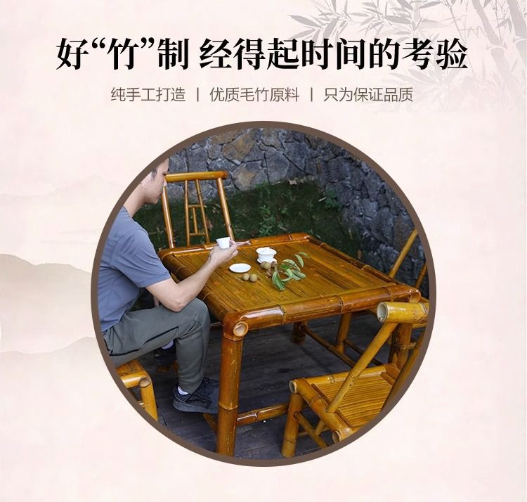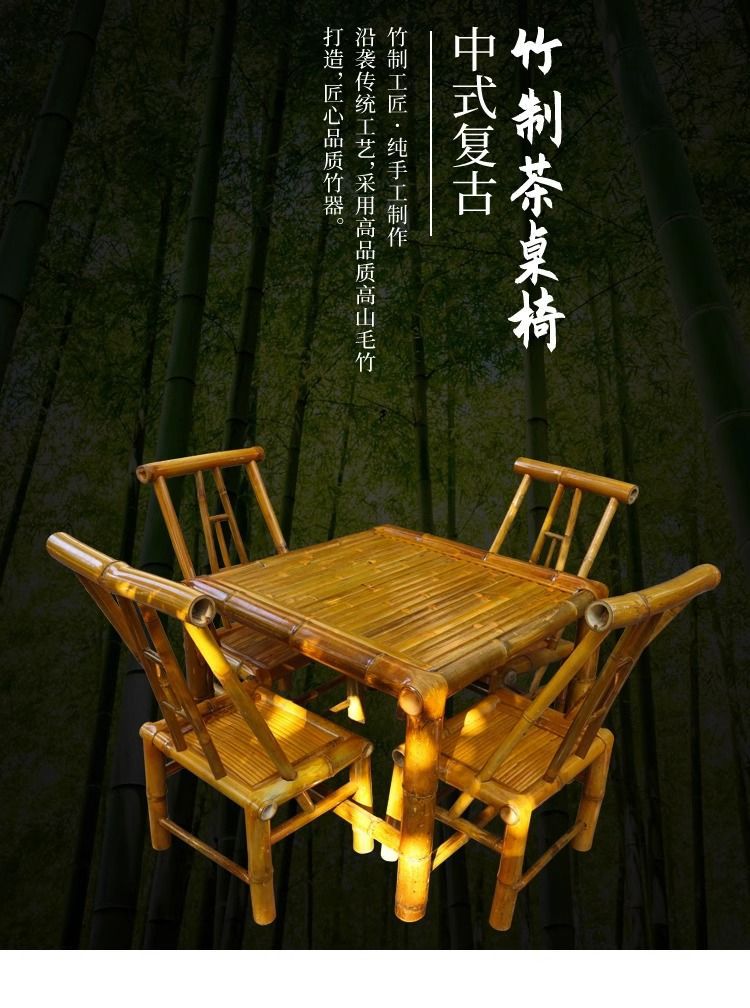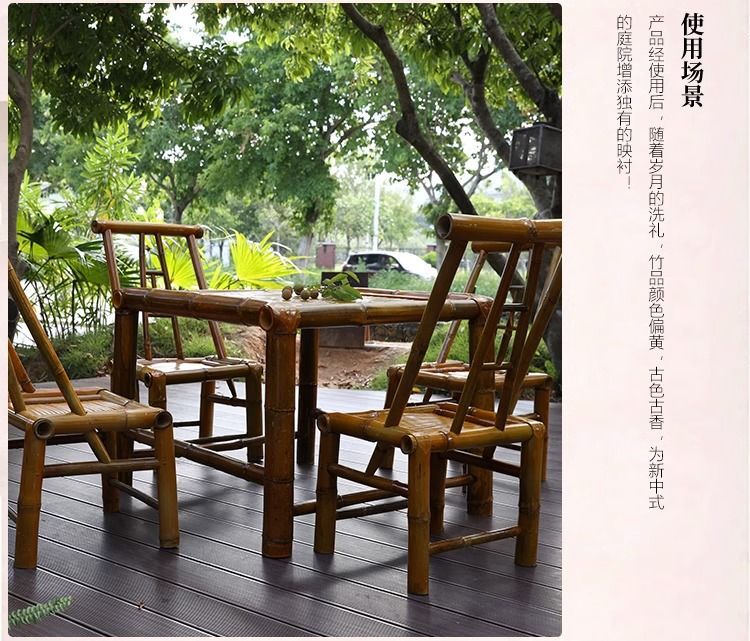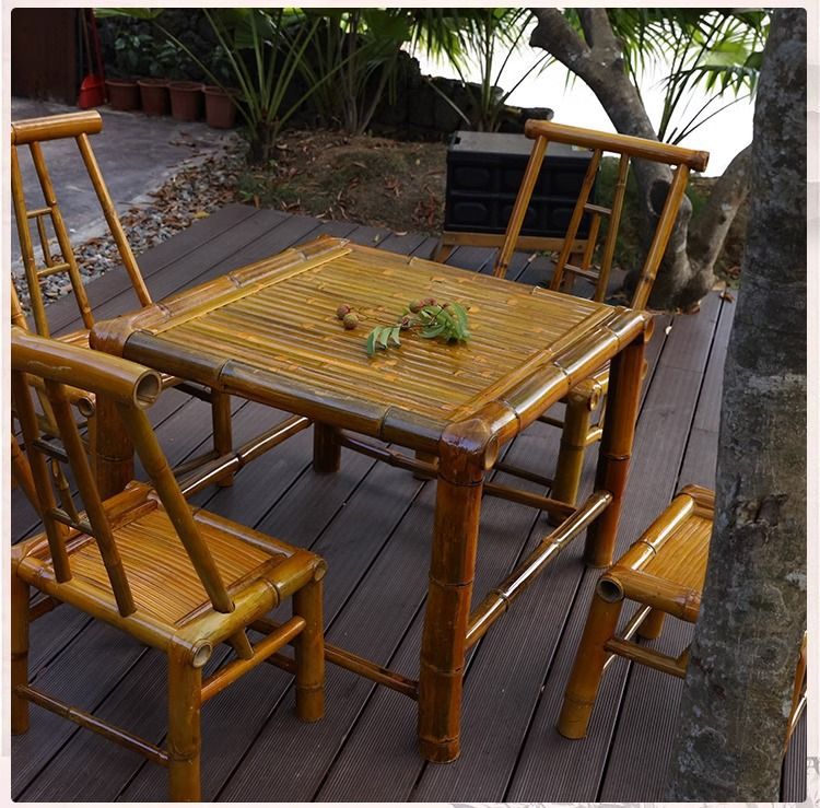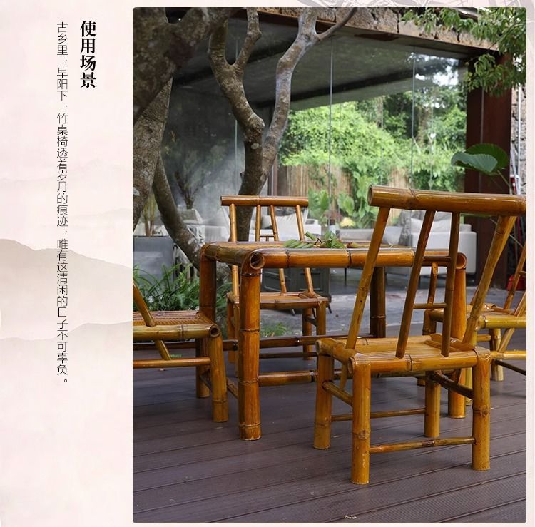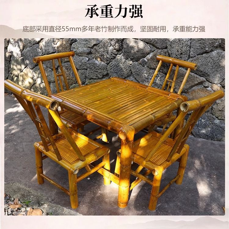 야외 테이블과 의자 안뜰 대나무 테이블 대나무 의자 레저 캠프장 식사 테이블 식당 의자 발코니 대나무 차 테이블스토어 가기