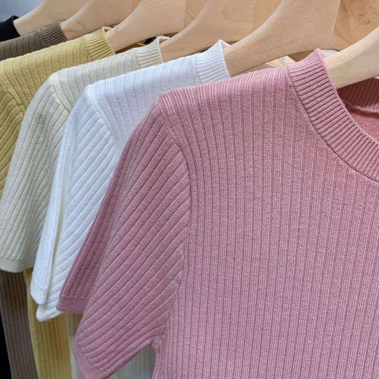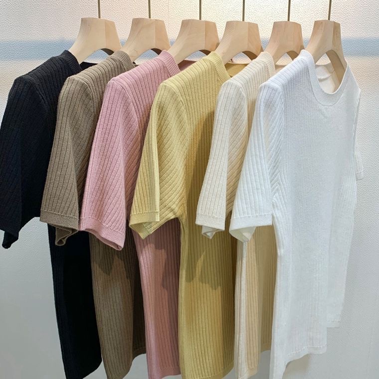 2024 여름 새로운 슬림 핏 니트웨어 반팔 여성 풀오버 스웨터 내부 짧은 라운드 넥베이스 셔츠스토어 가기
