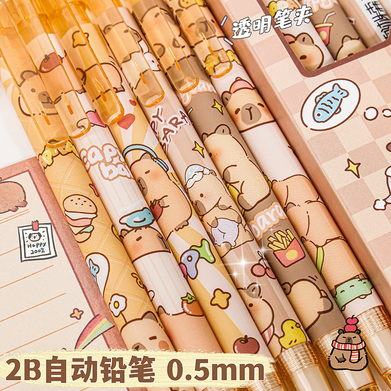 카피발라 자동 연필, 연속 필기 가능, 어린이 그림 그리기 및 글쓰기용, 학생 전용, 지우개 내장, 푸시형 연필