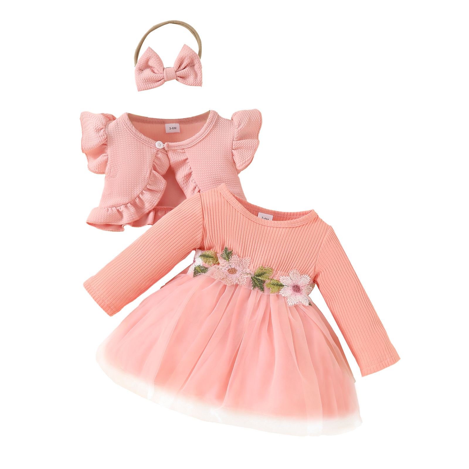 2024 가을과 겨울 유아 소녀 세트 스커트 민소매 주름 짧은 코트 긴 소매 메쉬 아플리케 원피스스토어 가기