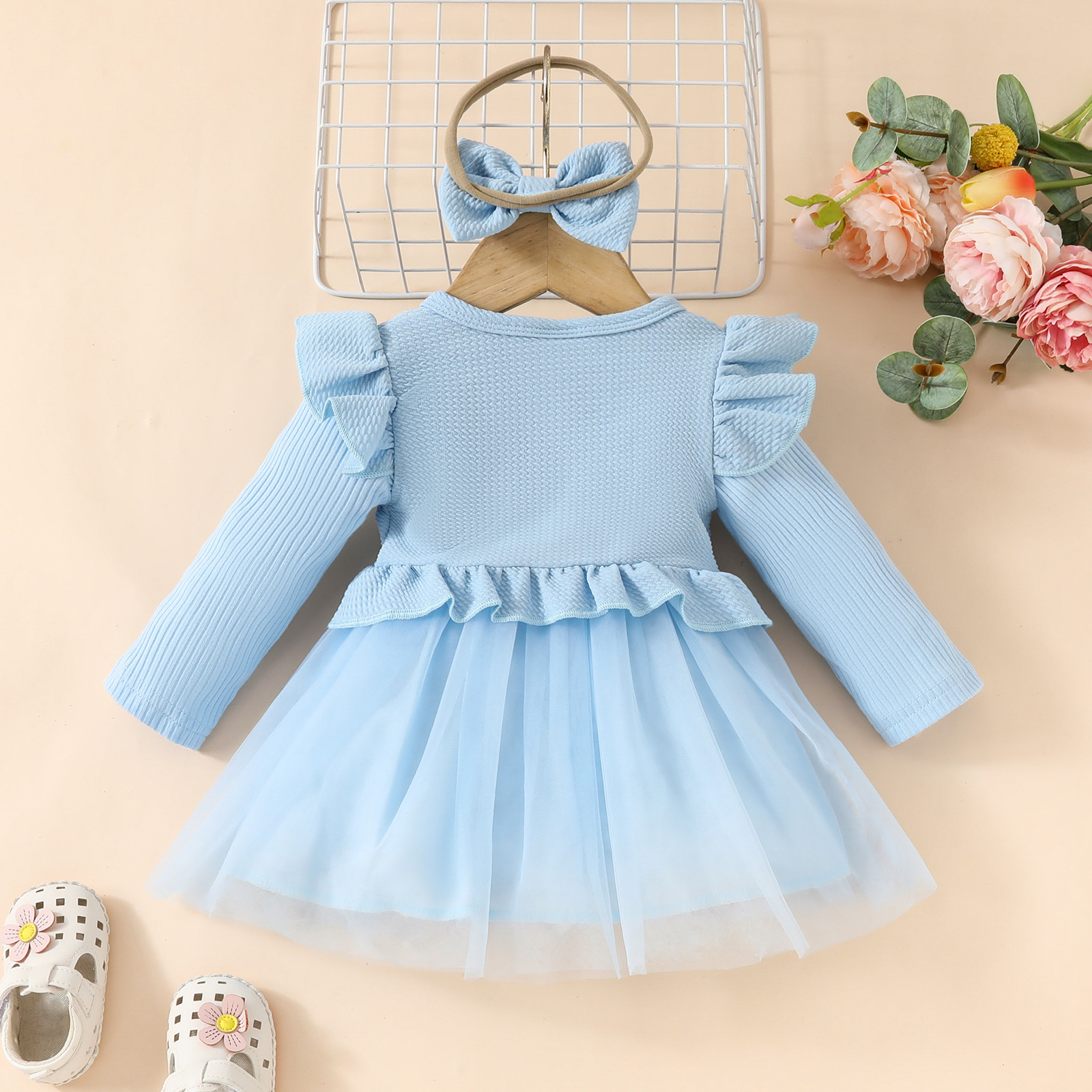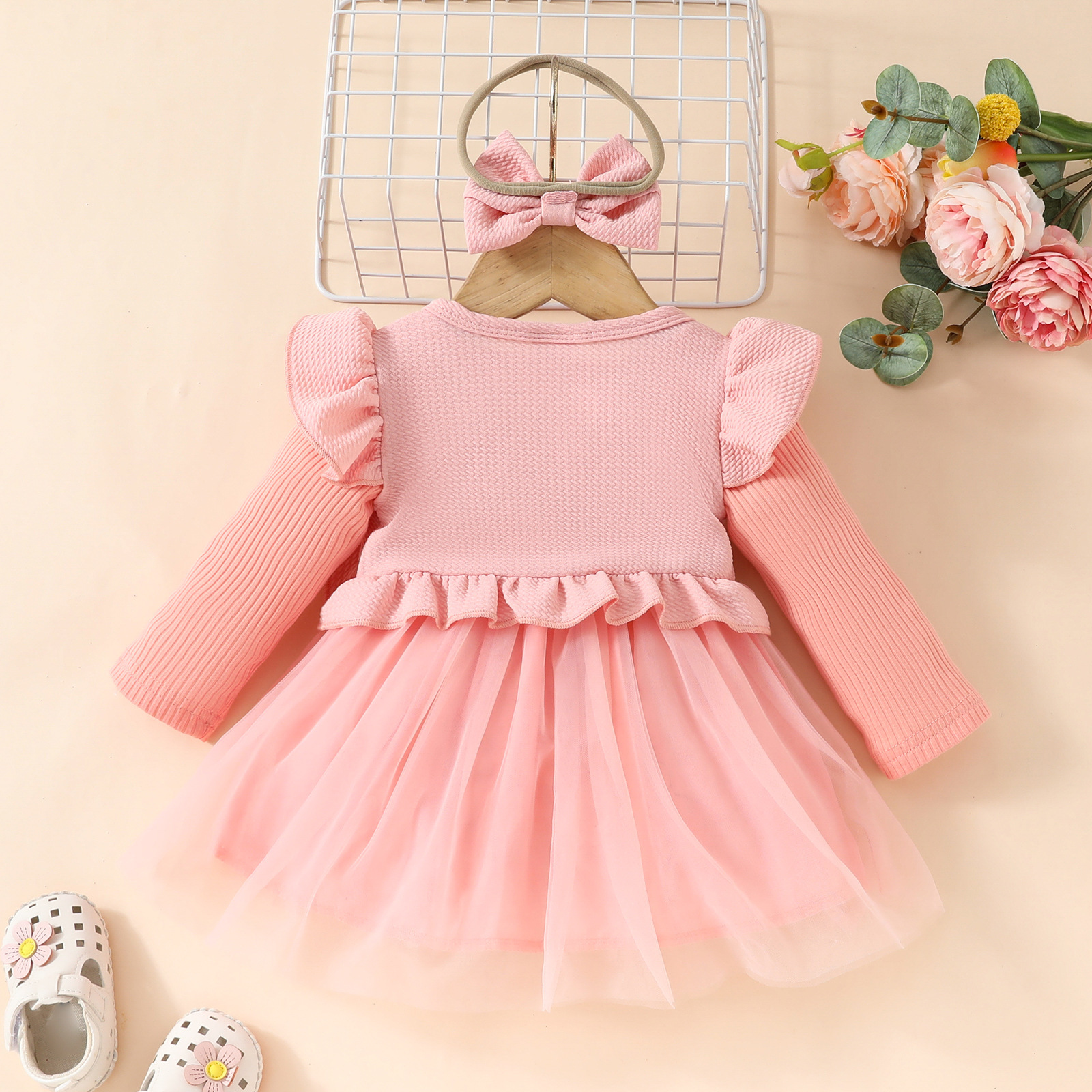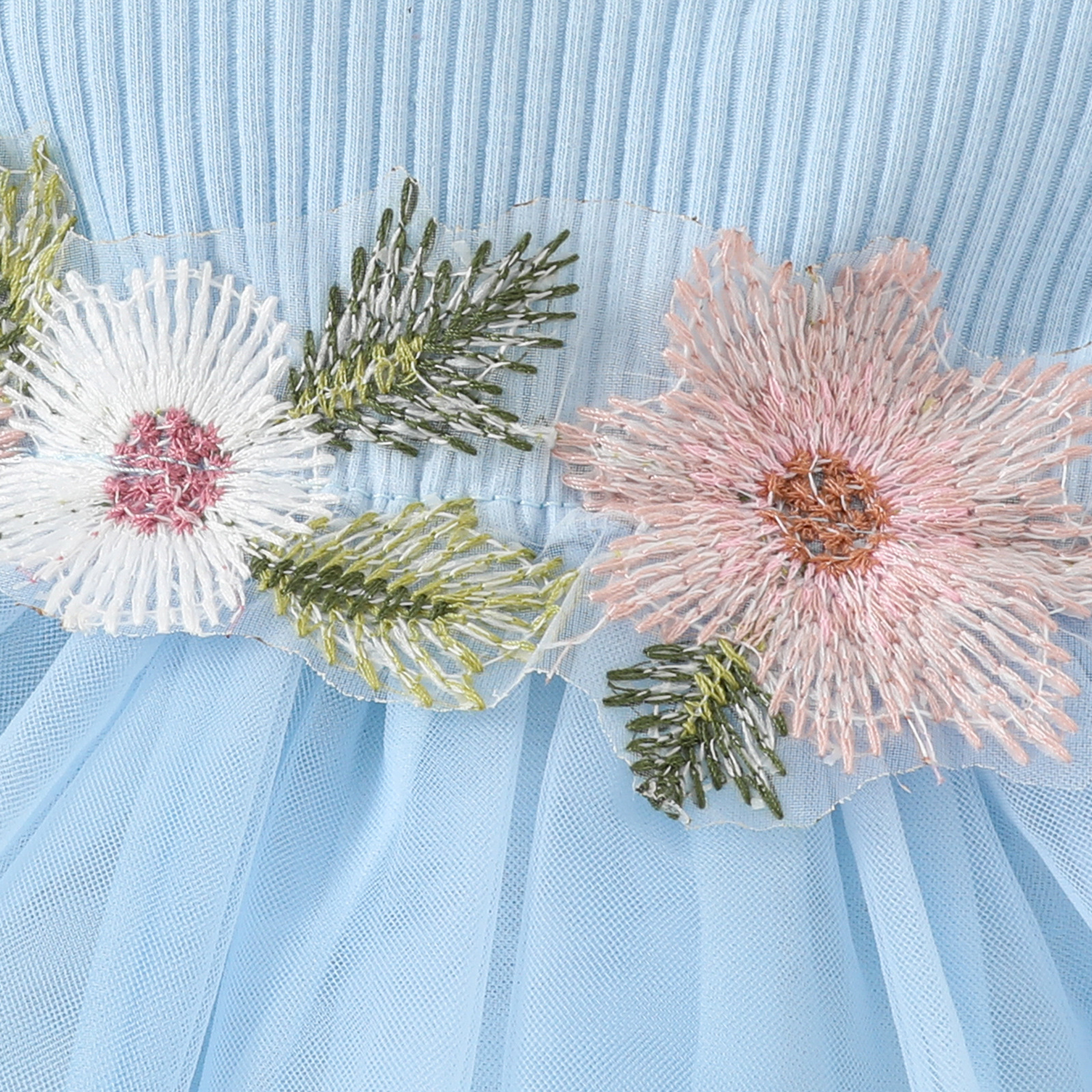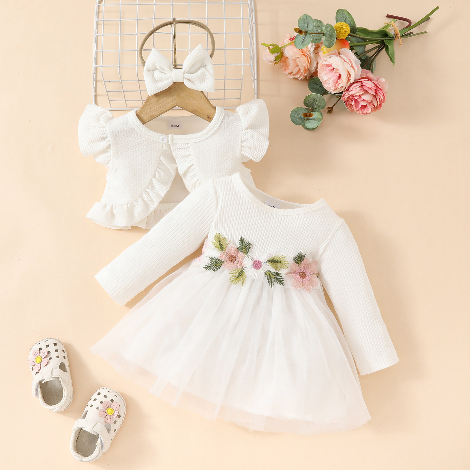 2024 가을과 겨울 유아 소녀 세트 스커트 민소매 주름 짧은 코트 긴 소매 메쉬 아플리케 원피스