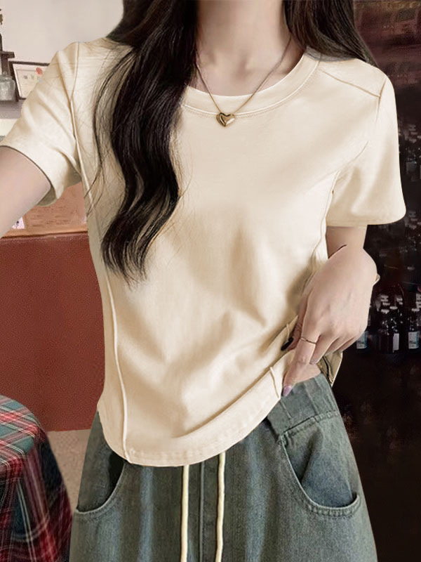 한국식 플러스 사이즈 반팔 슬림 핏 티셔츠 여성용 여름 새로운 슬림핏 피스본 쇼트 디자인 센스 작은 어깨 탑
